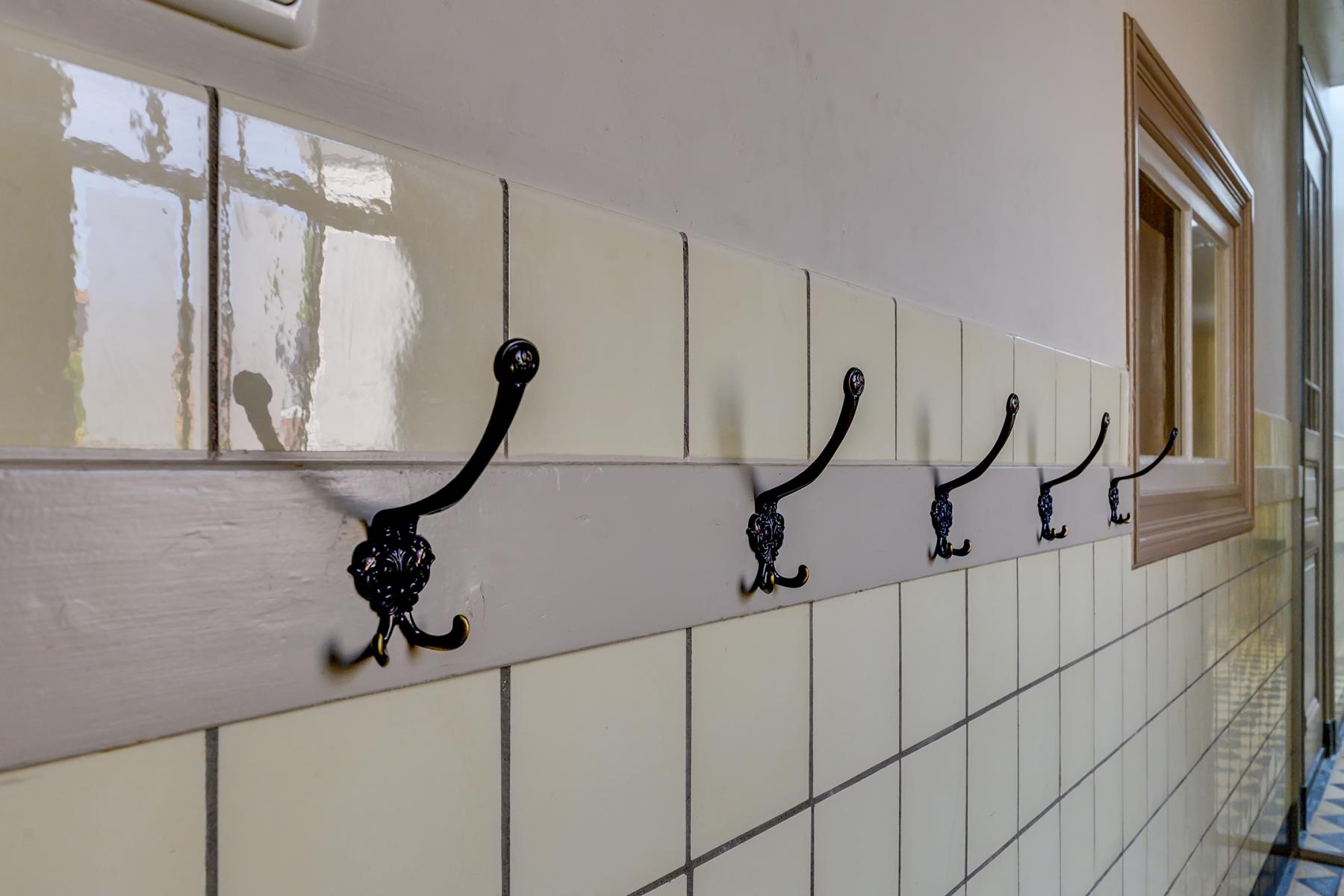 Zodra je het pand binnenstapt, stap je eigenlijk een stukje geschiedenis binnen. Authentieke details, zoals de nostalgische kapstokhaken, herinneren aan de tijd dat hier nog les werd gegeven – een charmant vleugje verleden dat direct opvalt.
