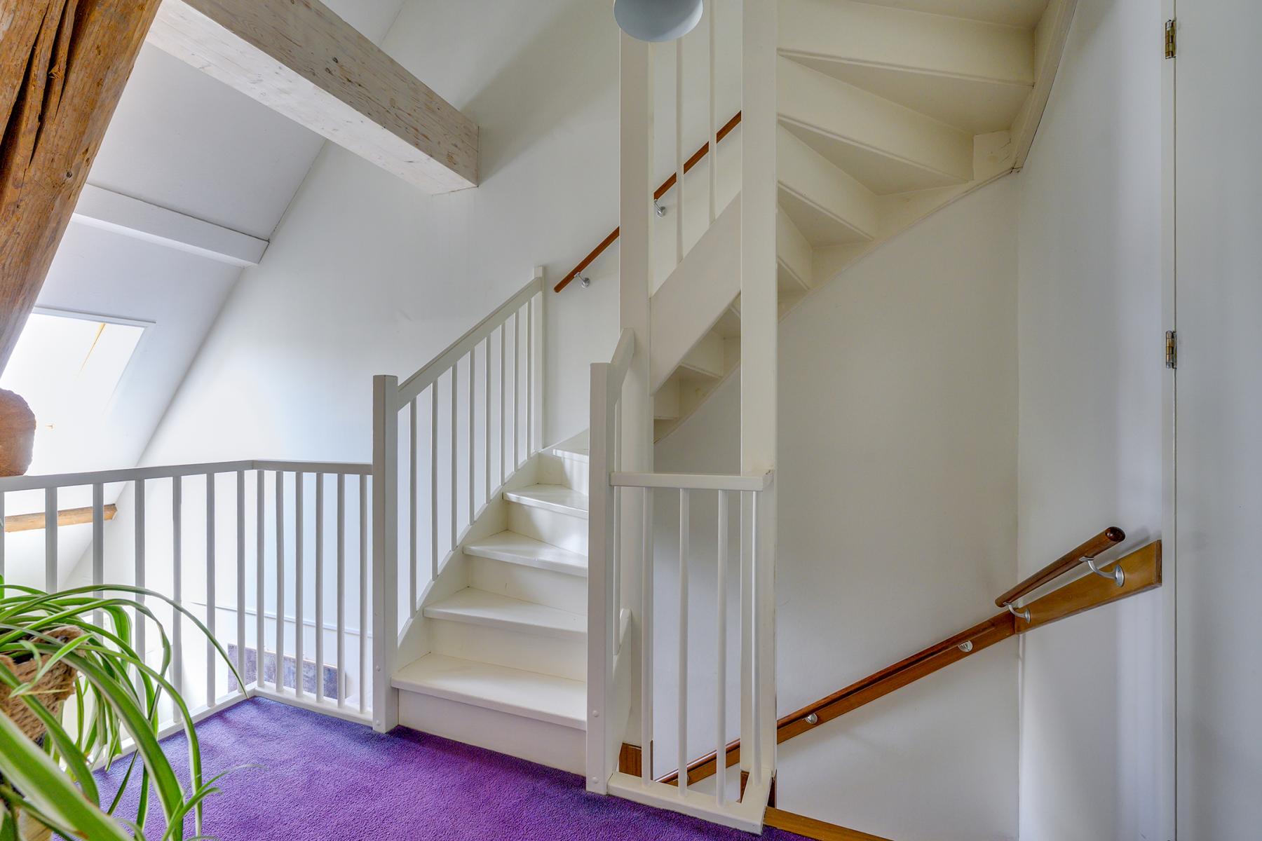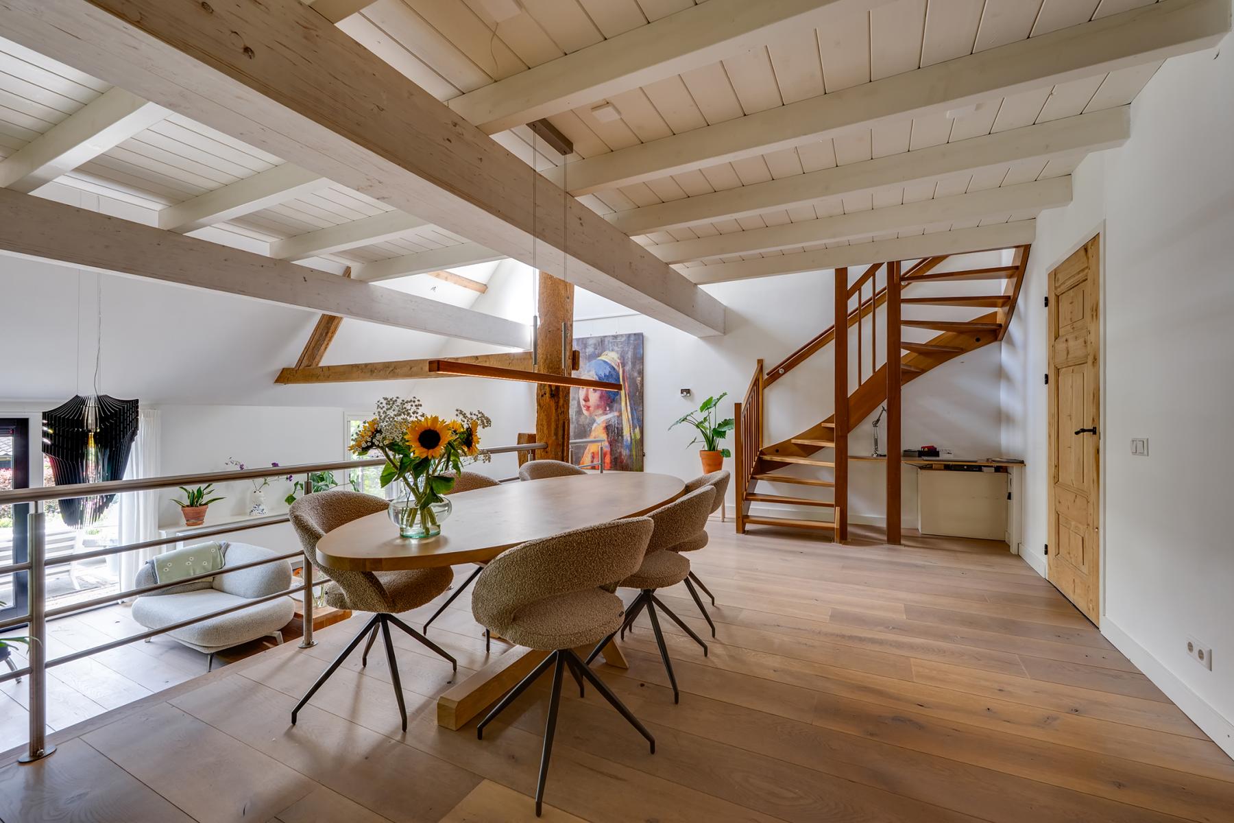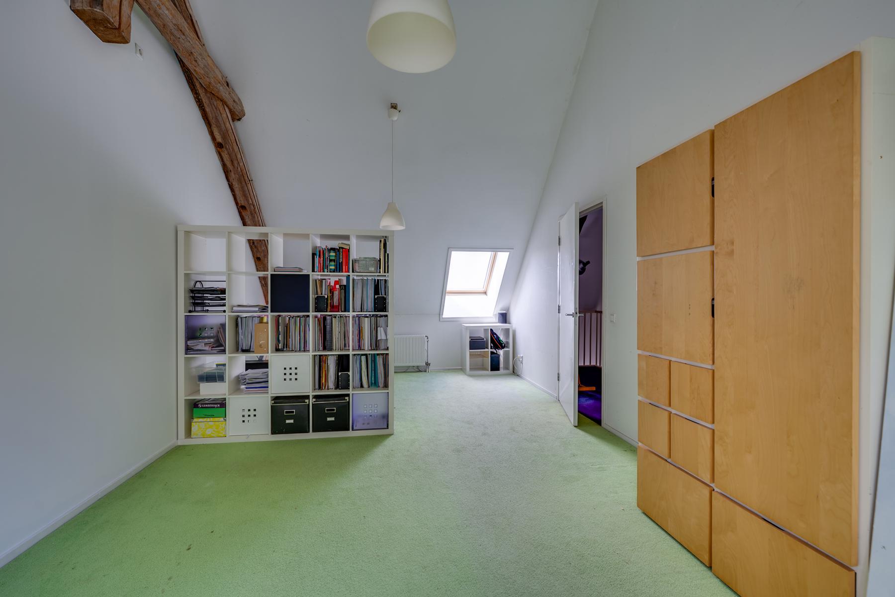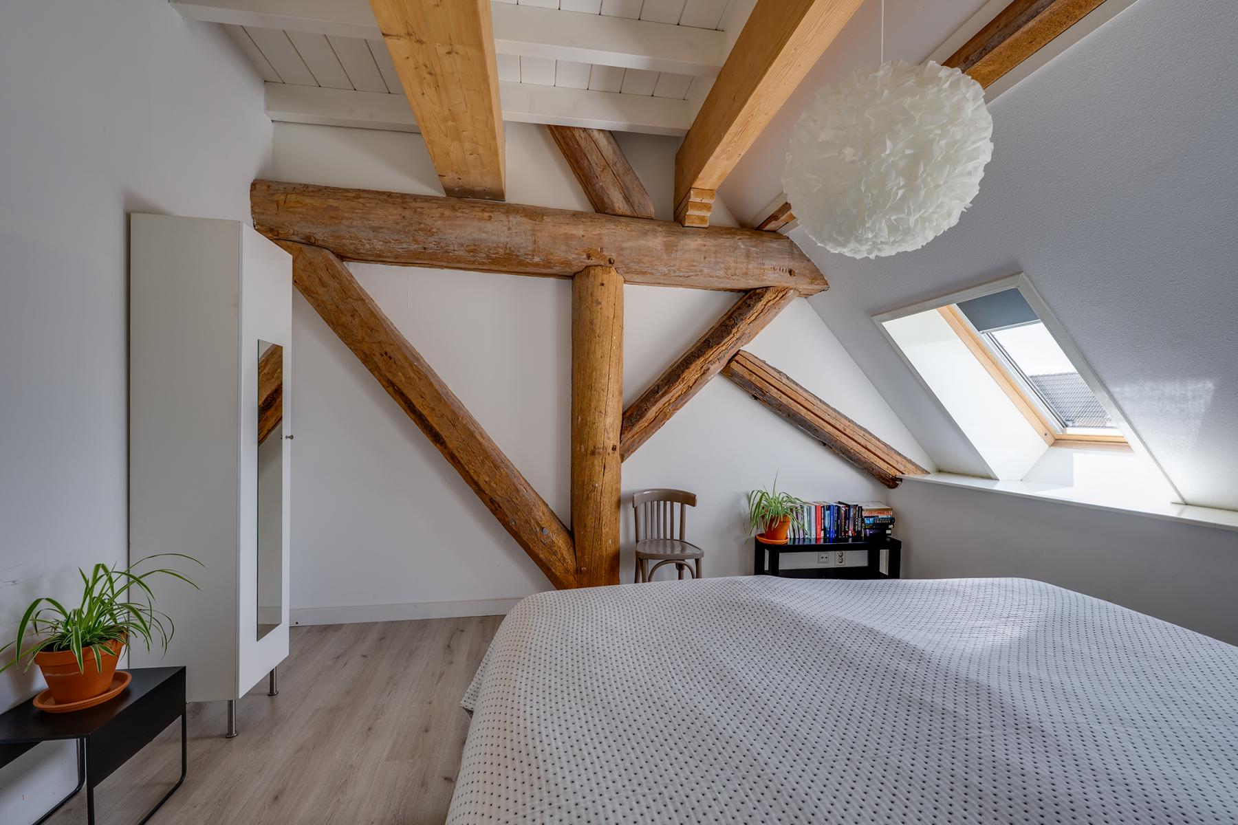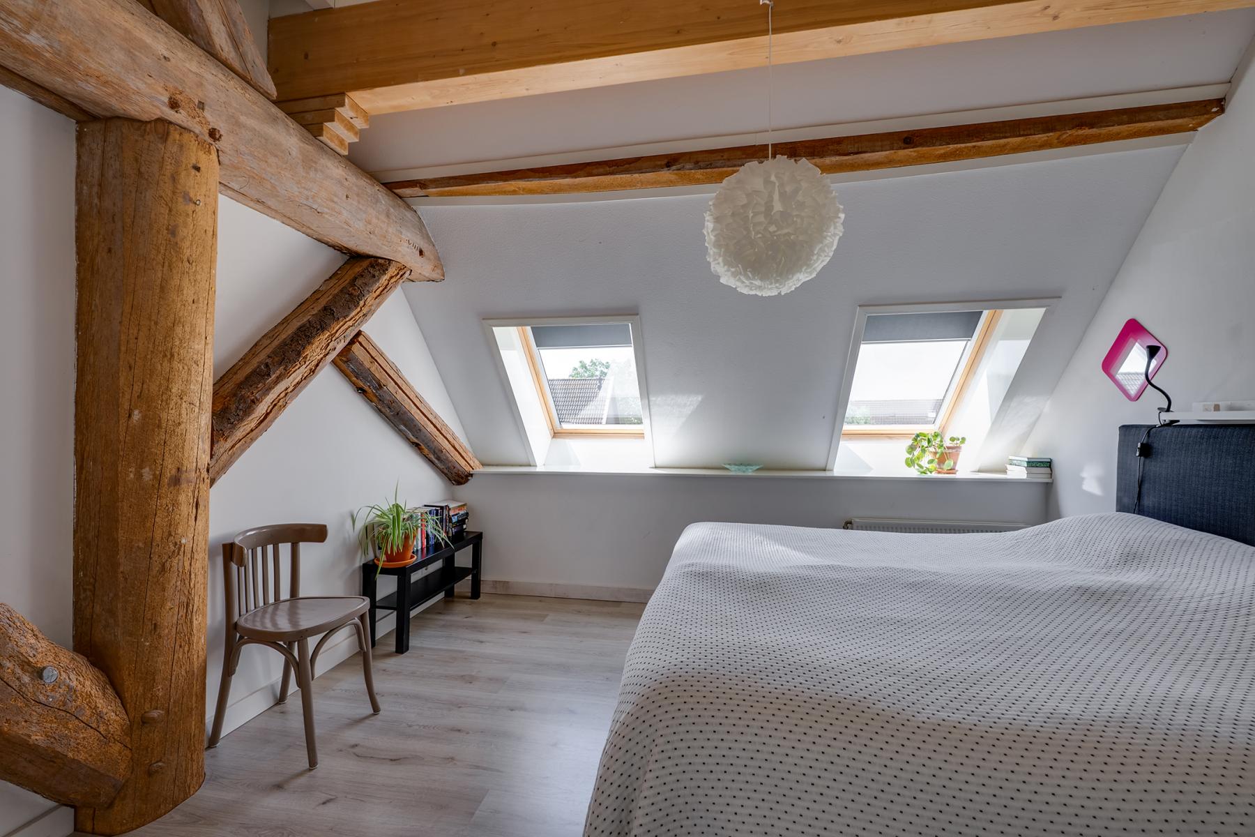 De vide geeft toegang tot de twee slaapkamers en de badkamer. De ouderslaapkamer is voorzien van twee dakramen, welke zorgen voor een mooie lichtinval. Daarnaast zijn ook hier de originele spanten goed zichtbaar. De volledig betegelde badkamer is ruim van opzet en beschikt over een wastafelmeubel met dubbele wasbak, toilet, ligbad, douche, handdoekradiator en wasmachine-aansluiting. De vloer is voorzien van vloerverwarming.