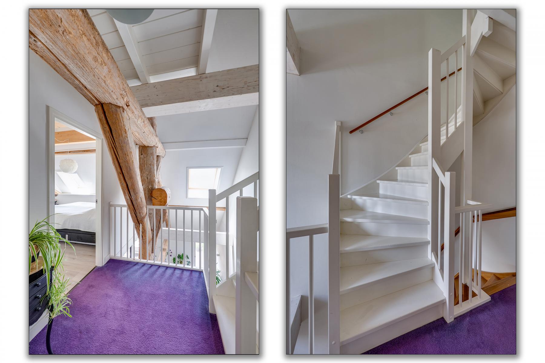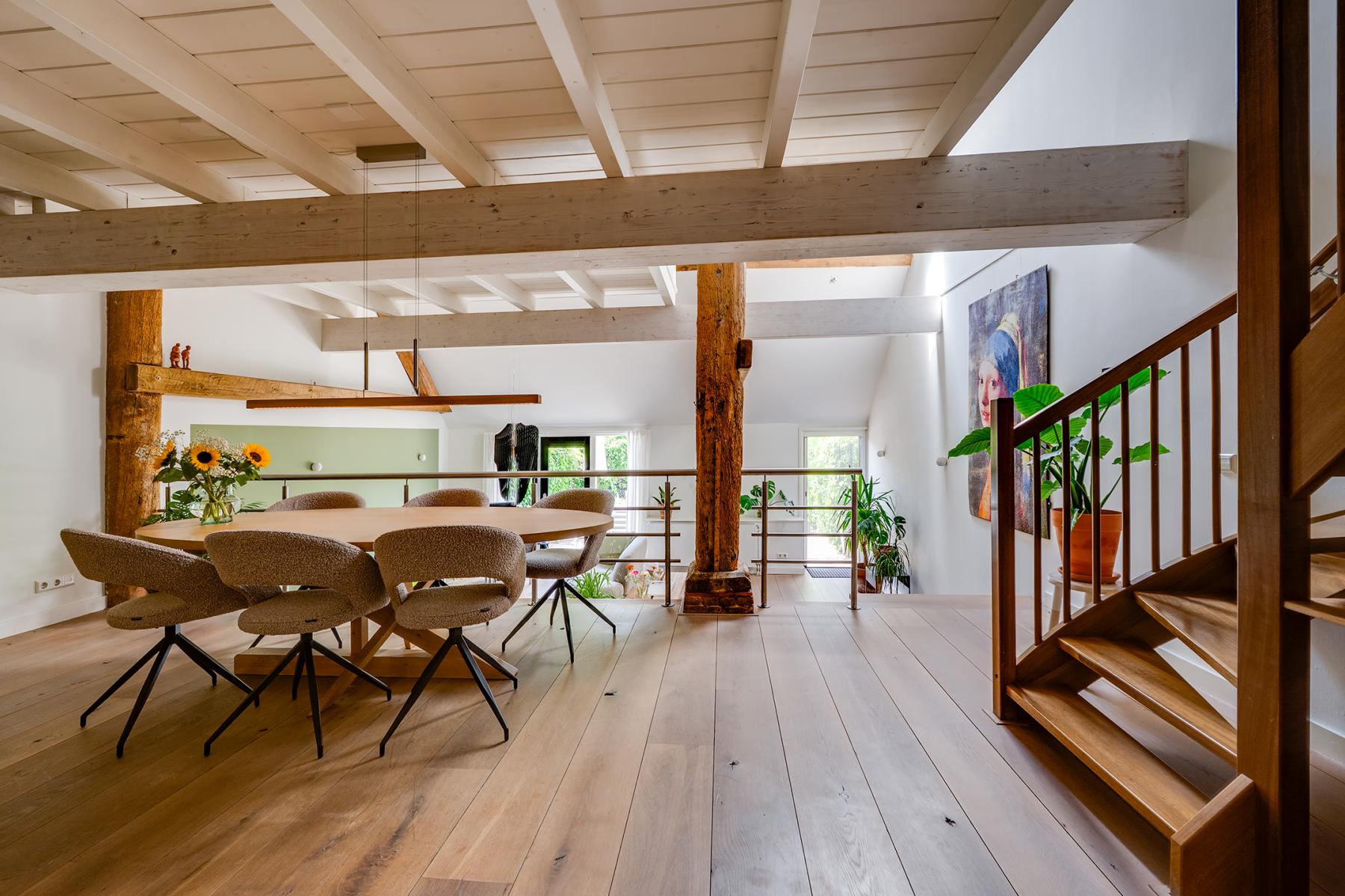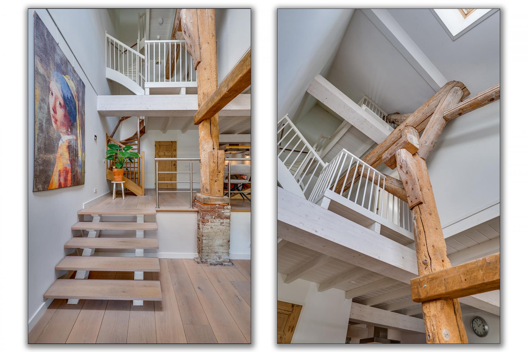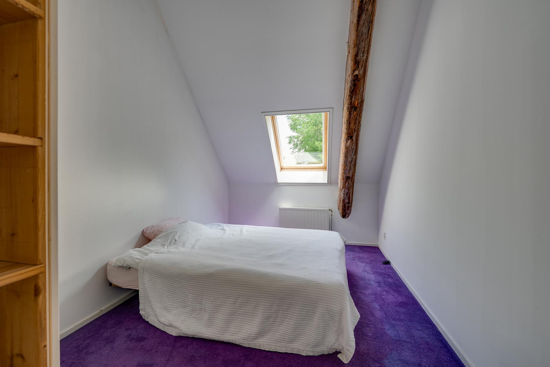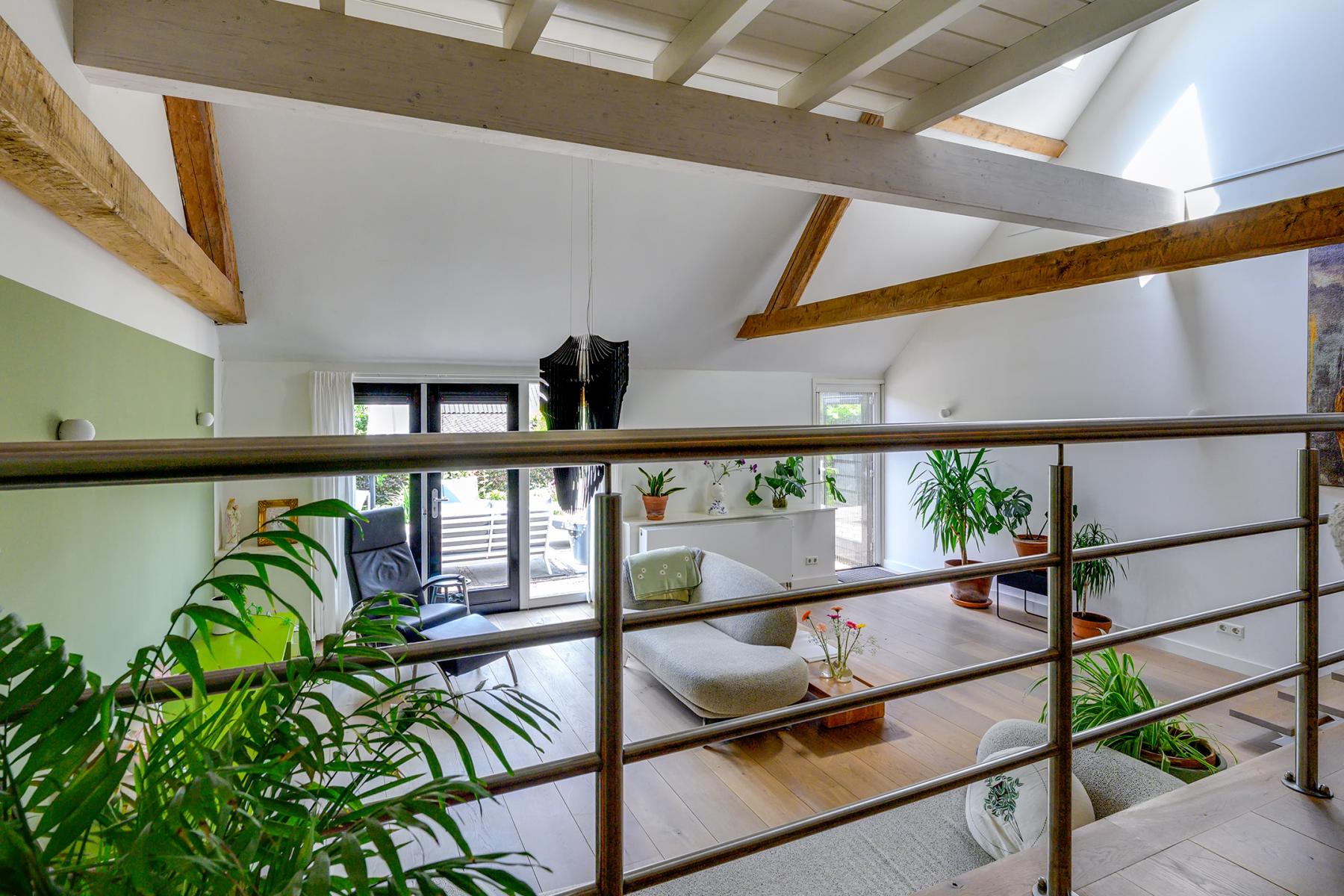 De vide geeft toegang tot de twee slaapkamers en de badkamer. De ouderslaapkamer is voorzien van twee dakramen, welke zorgen voor een mooie lichtinval. Daarnaast zijn ook hier de originele spanten goed zichtbaar. De volledig betegelde badkamer is ruim van opzet en beschikt over een wastafelmeubel met dubbele wasbak, toilet, ligbad, douche, handdoekradiator en wasmachine-aansluiting. De vloer is voorzien van vloerverwarming.