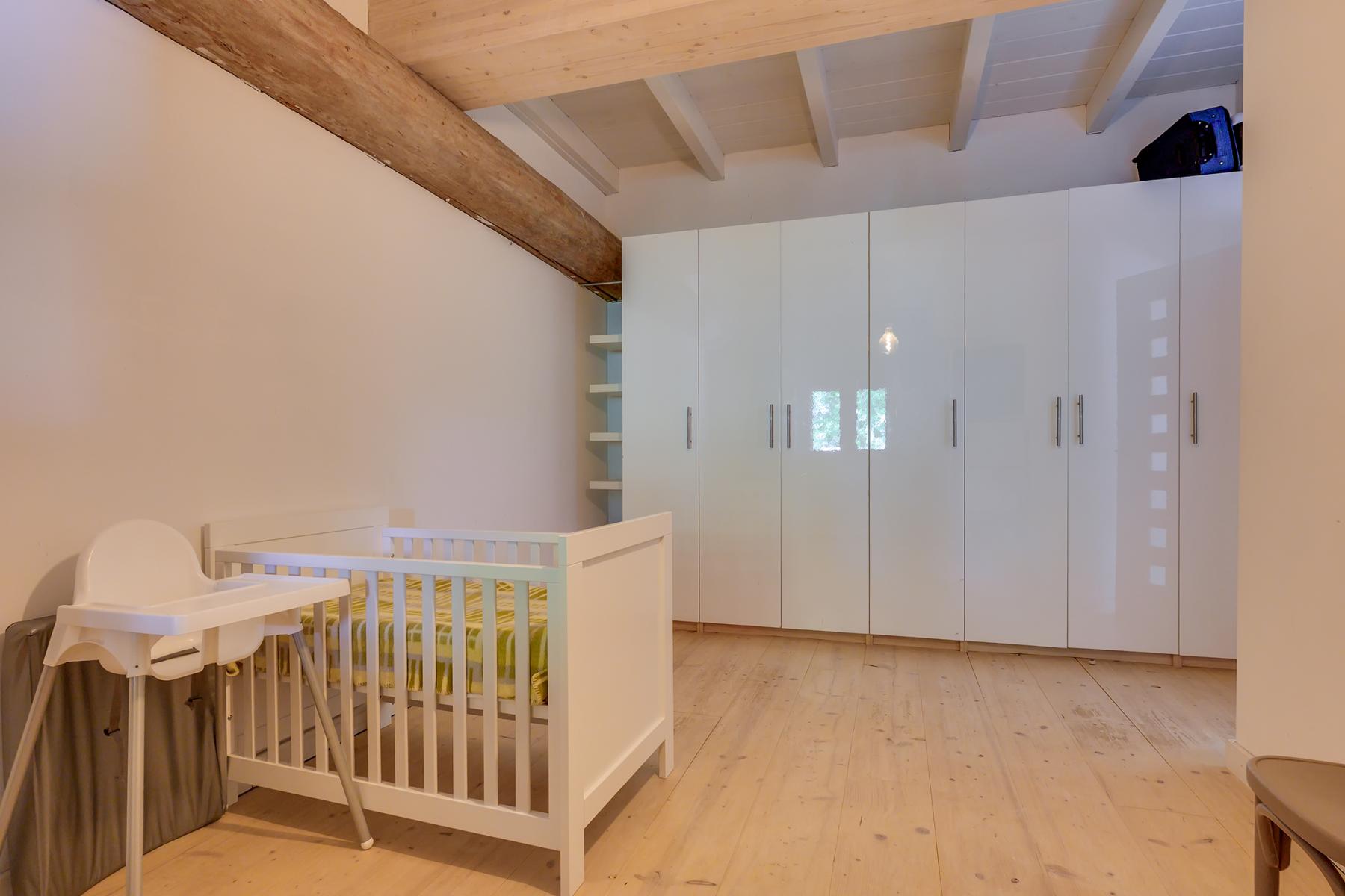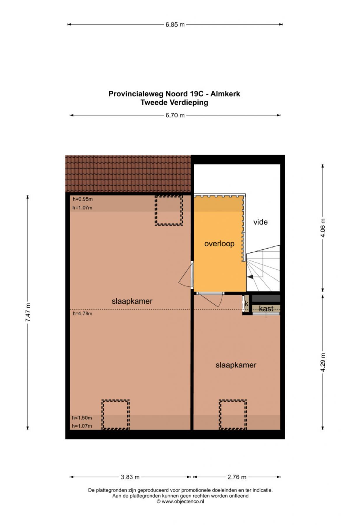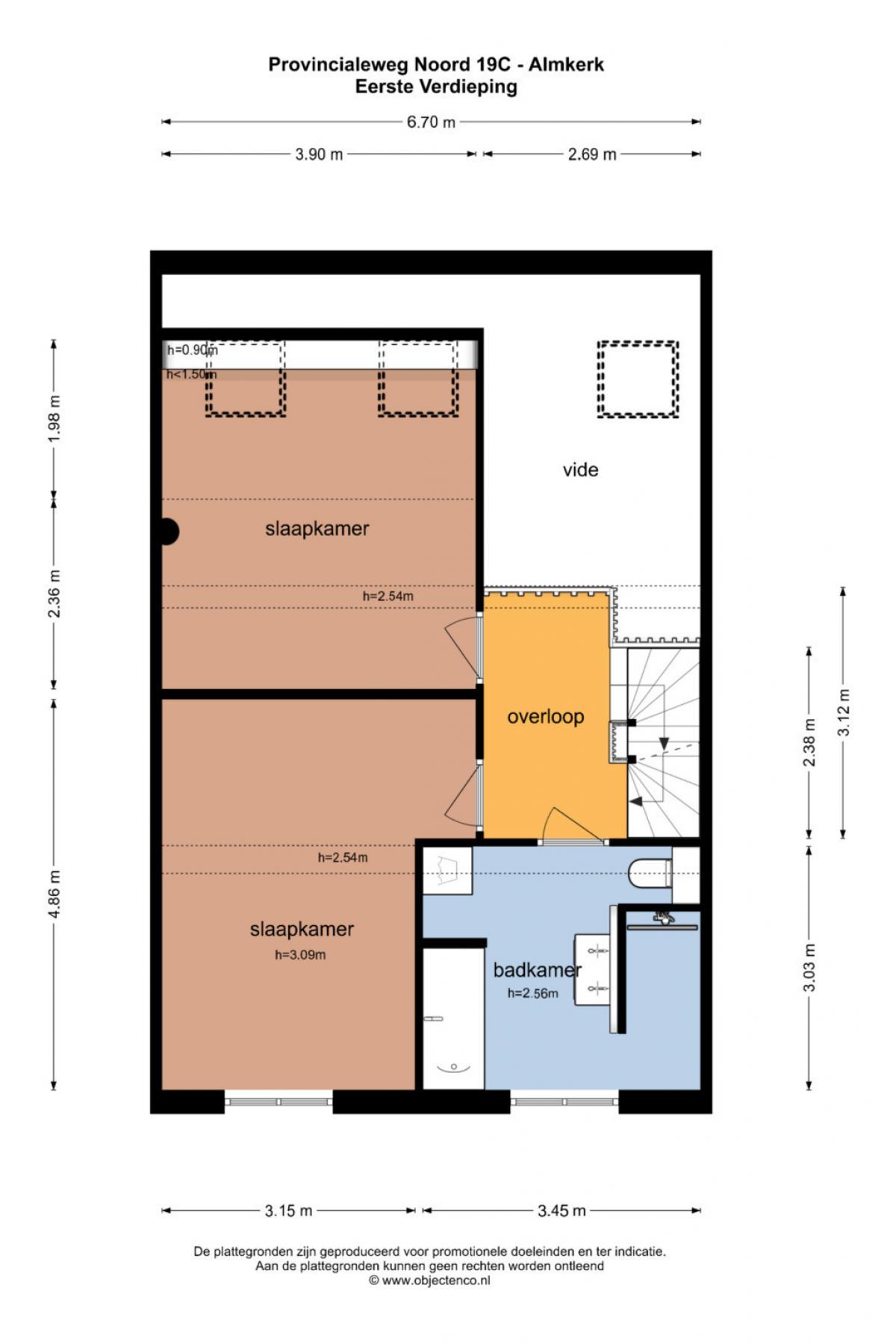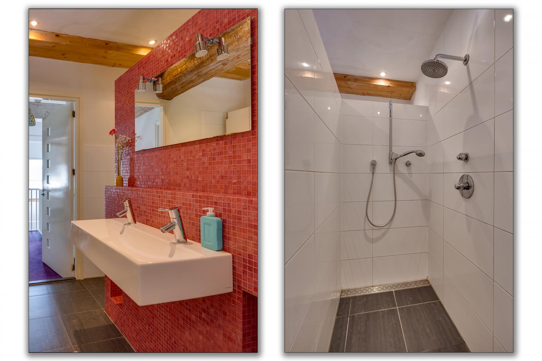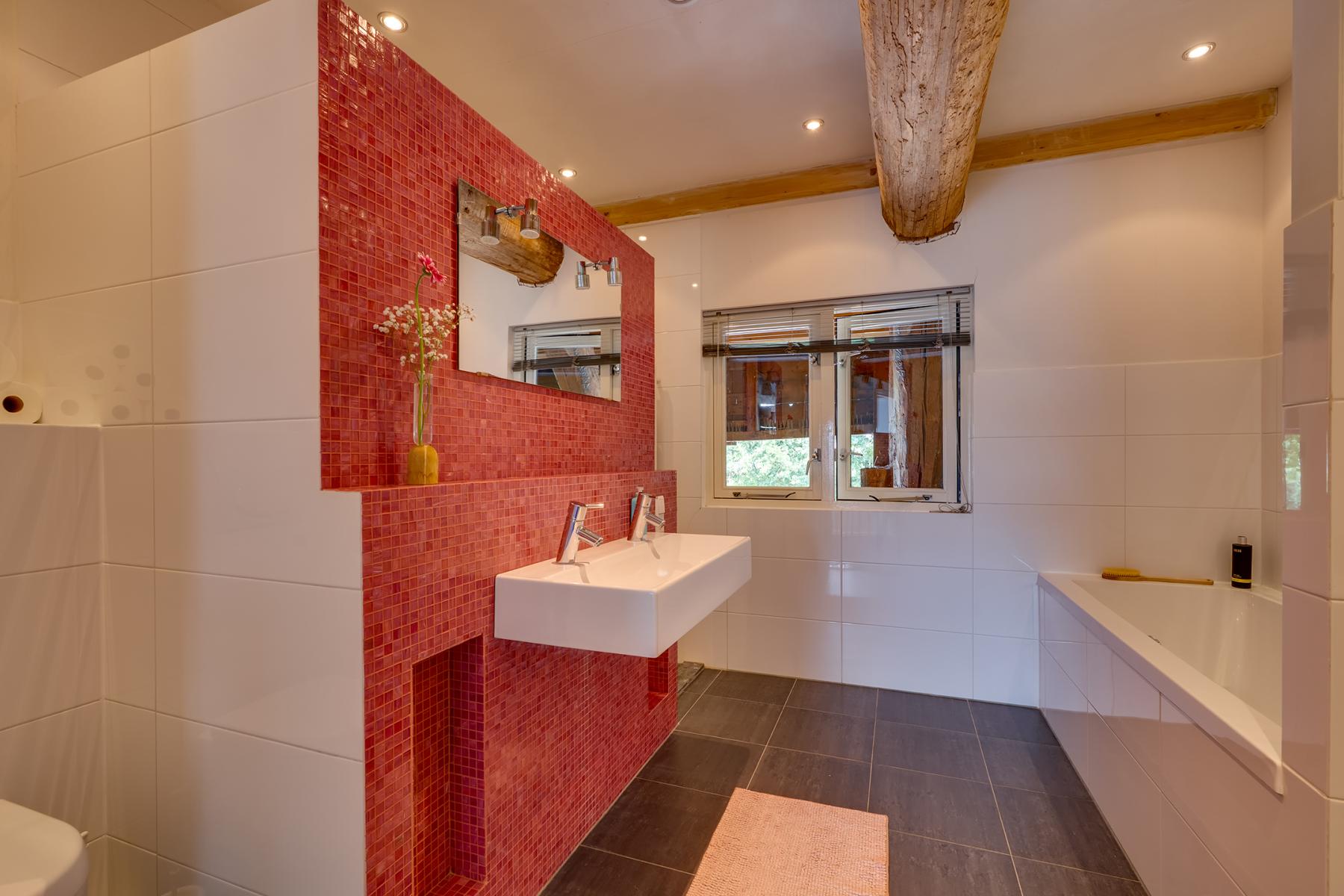 De vide geeft toegang tot de twee slaapkamers en de badkamer. De ouderslaapkamer is voorzien van twee dakramen, welke zorgen voor een mooie lichtinval. Daarnaast zijn ook hier de originele spanten goed zichtbaar. De volledig betegelde badkamer is ruim van opzet en beschikt over een wastafelmeubel met dubbele wasbak, toilet, ligbad, douche, handdoekradiator en wasmachine-aansluiting. De vloer is voorzien van vloerverwarming.