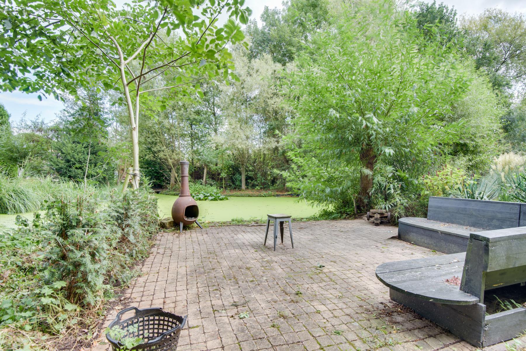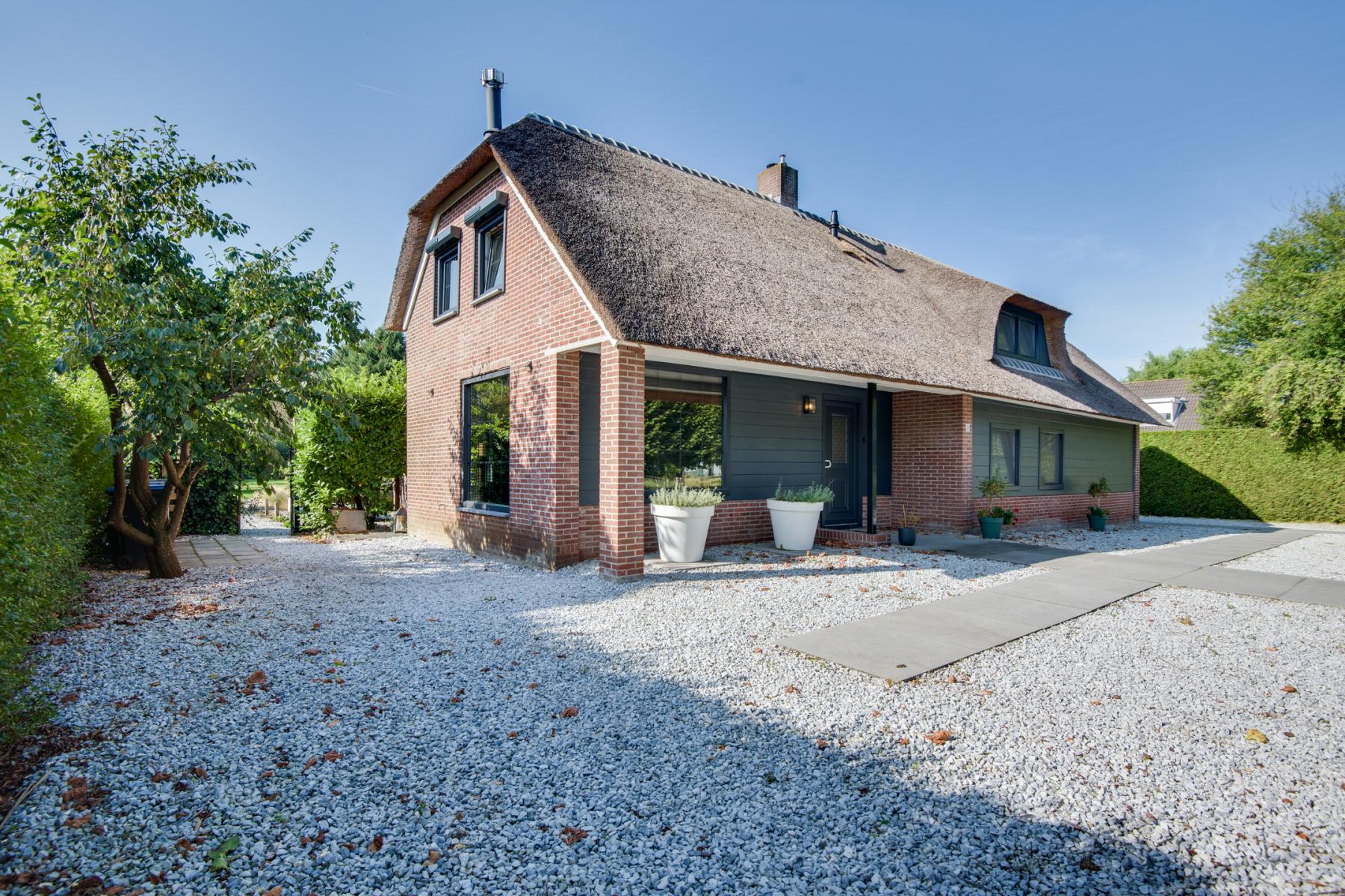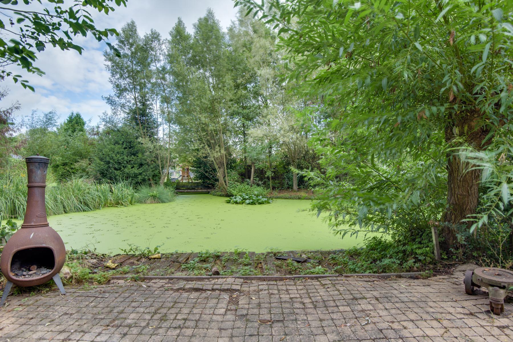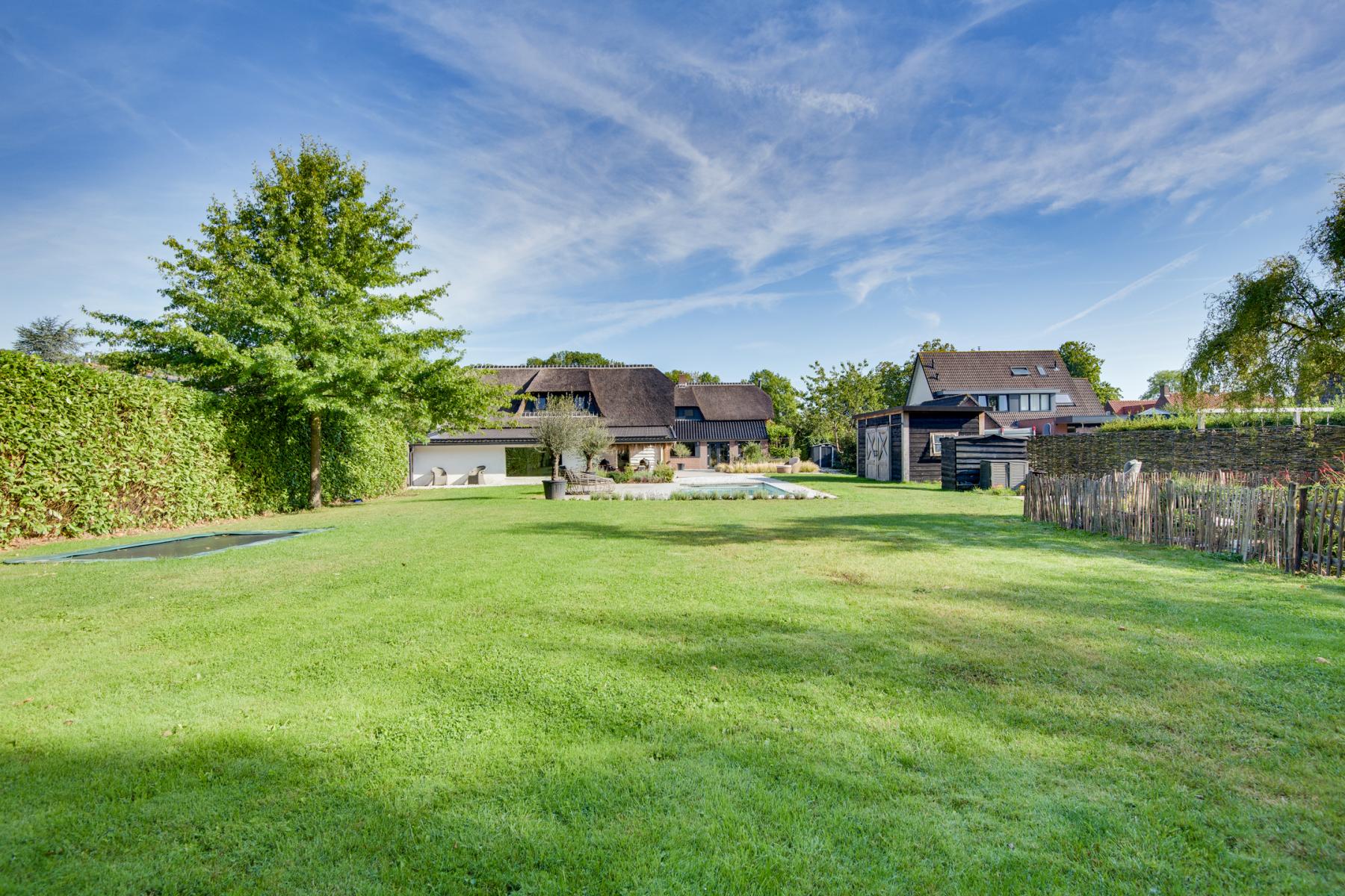 De tuin rondom het huis is werkelijk een oase van rust. Goed onderhouden, voorzien van grote vrijstaande bijpassende berging, speels aangelegd en vol verrassende plekjes om te zitten, spelen of wandelen. Er zijn terrassen bij het huis, een overkapping, een verwarmd zwembad met warmtepomp, maar ook een natuurvijver met diverse wandelpaadjes; perfect voor zonnige dagen. U kunt zelfs een wandeling in uw eigen bos maken! Ook paarden (of andere dieren) liefhebbers kunnen hier terecht. De paarden kun je ruimschoots van een eigen plek voorzien. Vanuit het achterste stuk tuin heeft u in het voorjaar en in de zomer zicht op broedende ooievaars.