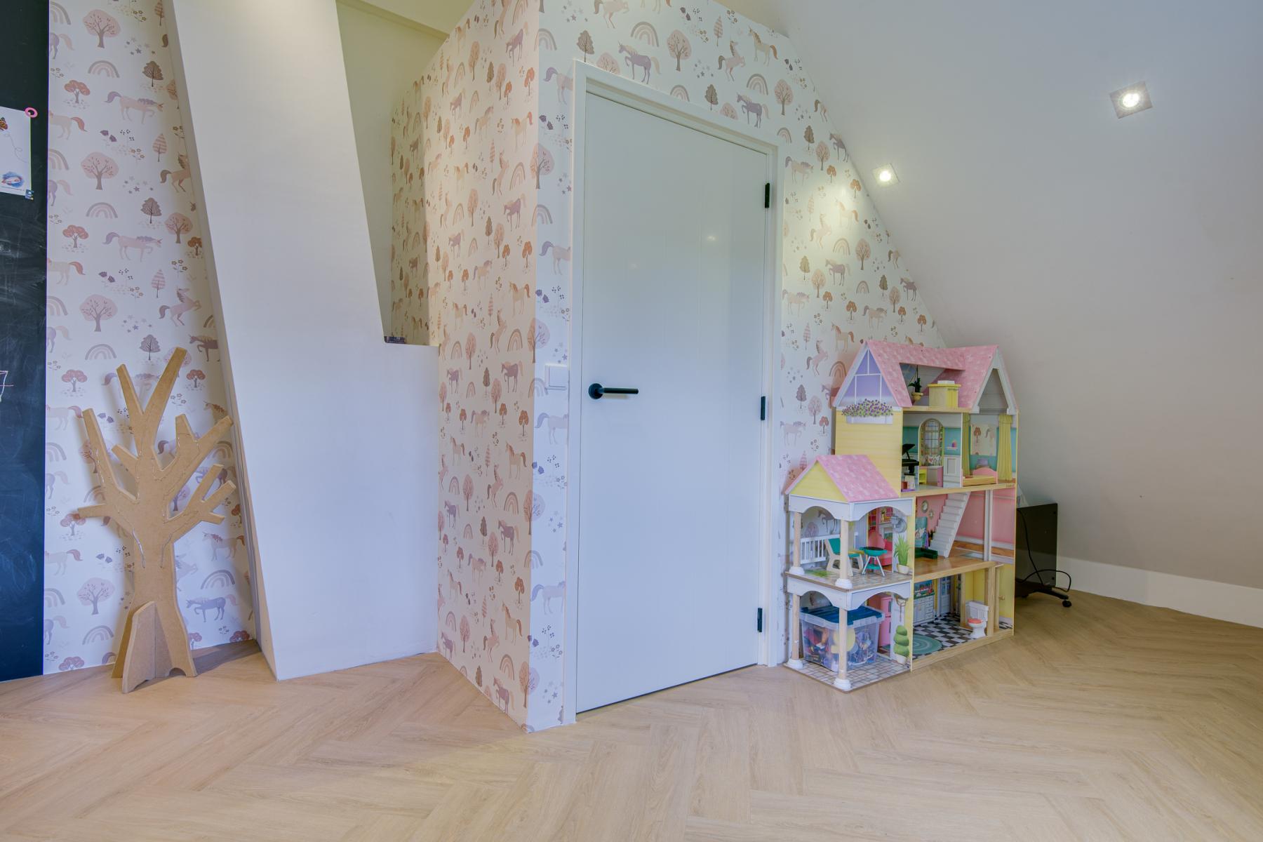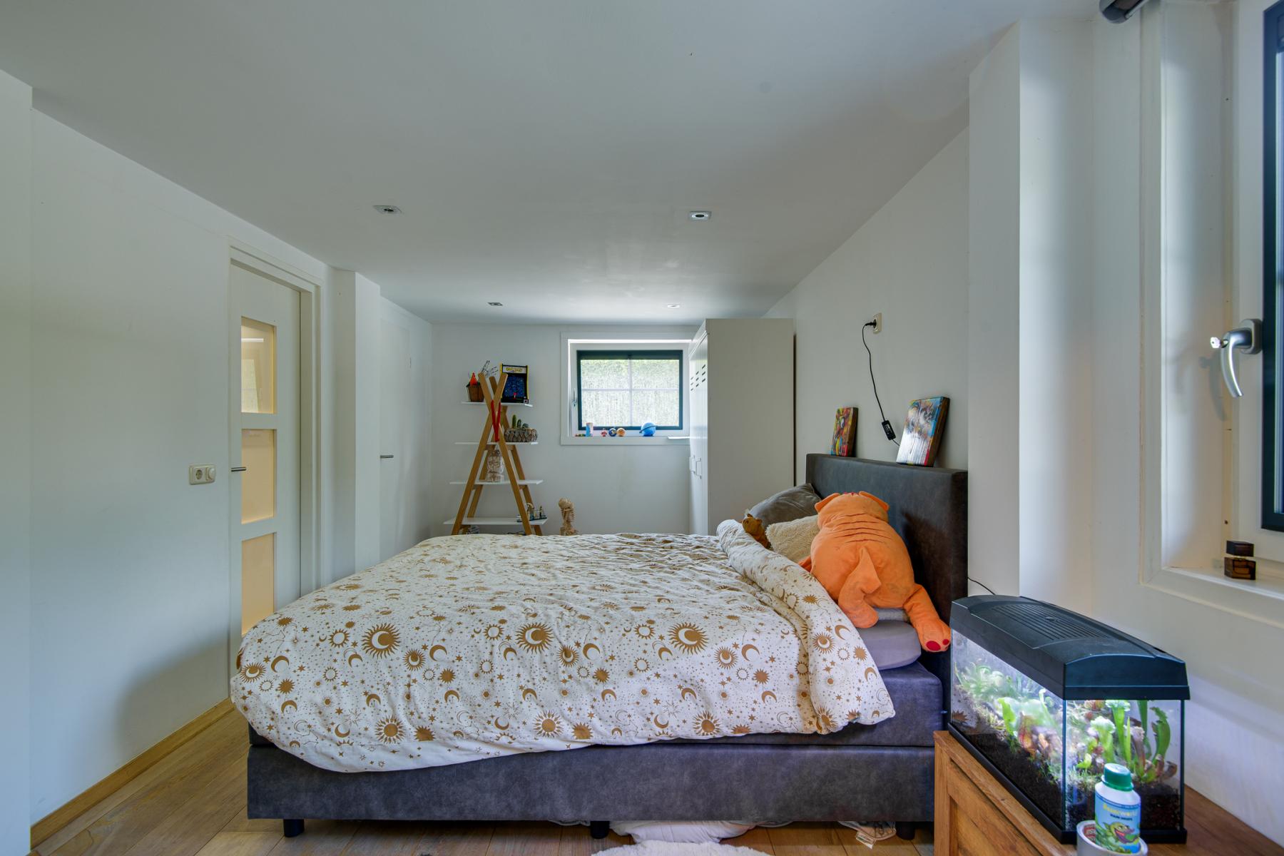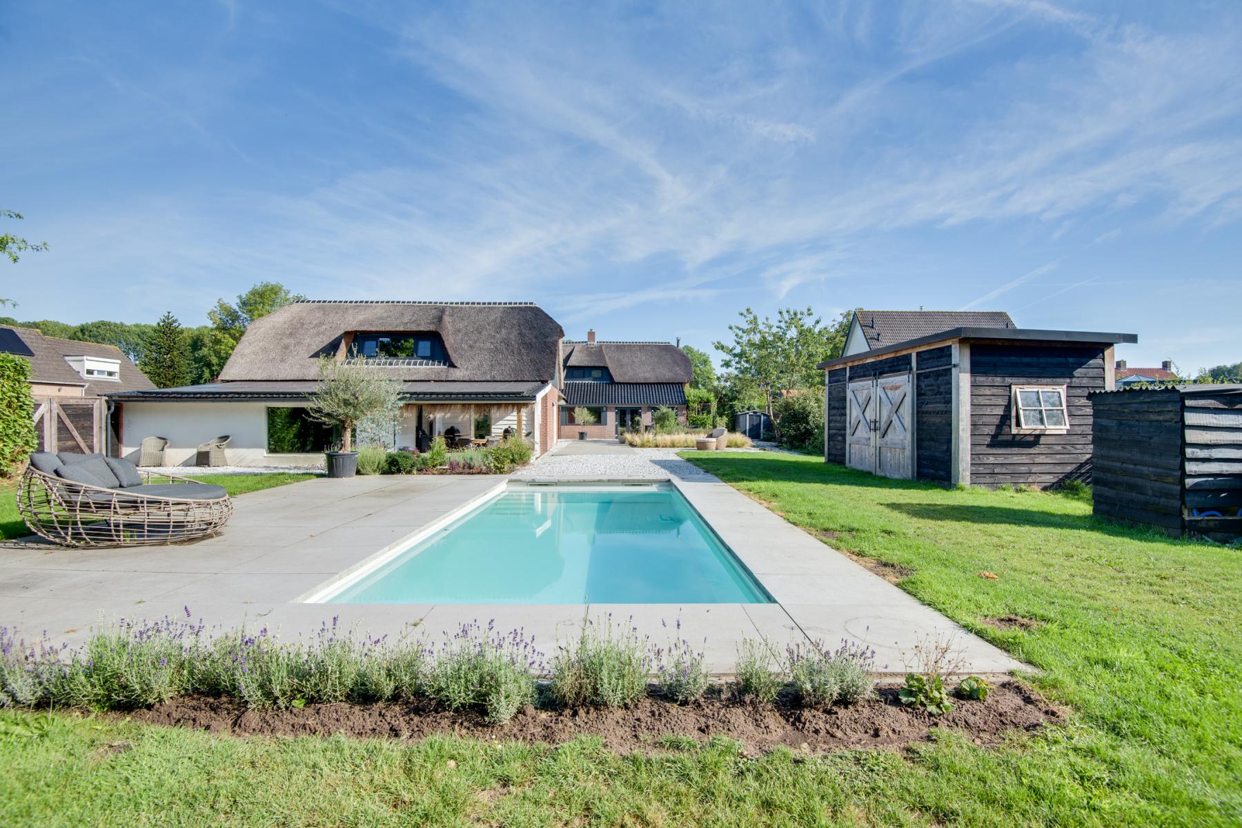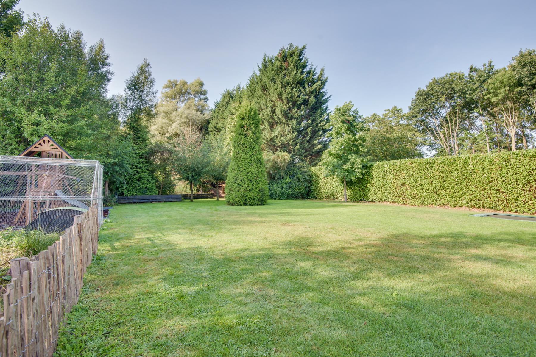 De tuin rondom het huis is werkelijk een oase van rust. Goed onderhouden, voorzien van grote vrijstaande bijpassende berging, speels aangelegd en vol verrassende plekjes om te zitten, spelen of wandelen. Er zijn terrassen bij het huis, een overkapping, een verwarmd zwembad met warmtepomp, maar ook een natuurvijver met diverse wandelpaadjes; perfect voor zonnige dagen. U kunt zelfs een wandeling in uw eigen bos maken! Ook paarden (of andere dieren) liefhebbers kunnen hier terecht. De paarden kun je ruimschoots van een eigen plek voorzien. Vanuit het achterste stuk tuin heeft u in het voorjaar en in de zomer zicht op broedende ooievaars.