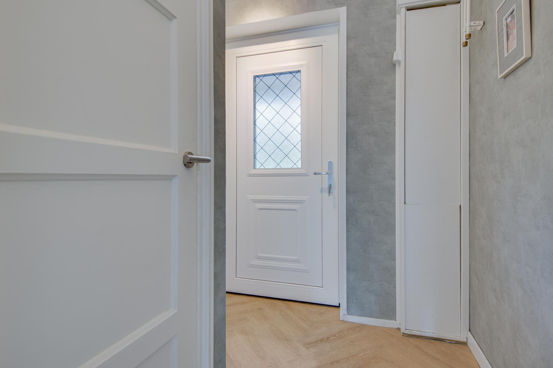 U komt binnen in de ruime entree/hal met PVC-vloer, meterkast (nieuwe groepenkast) en kelderruimte. In deze hal is ook een vaste trap waarmee u de boven verdieping kunt bereiken.