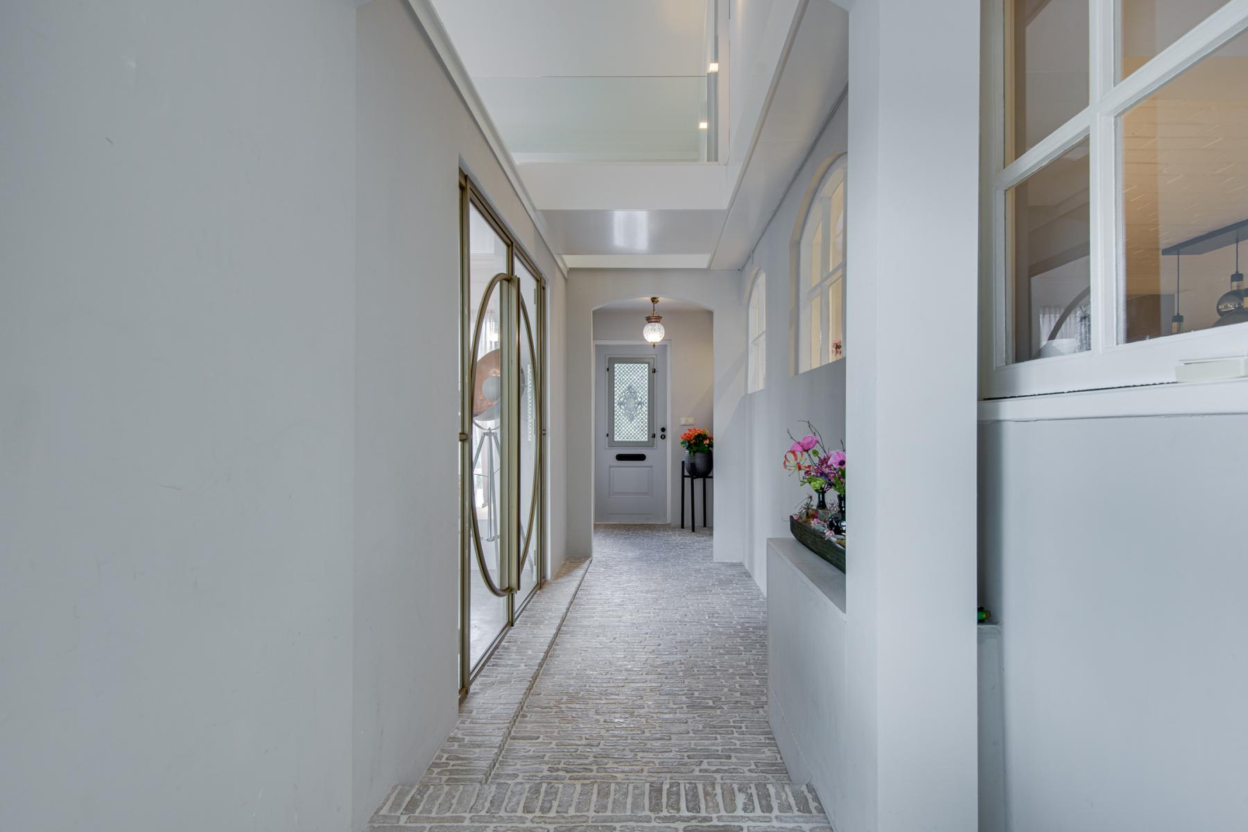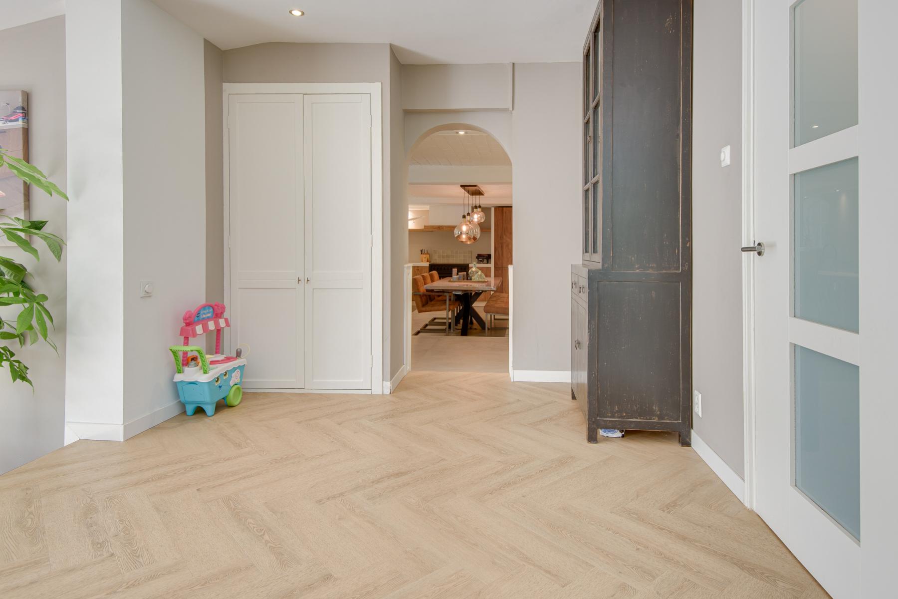 Via de keukendeur stapt u de hal in, die voorzien is van een prachtige waaltjes vloer en welke toegang geeft tot het 2e deel van het huis.