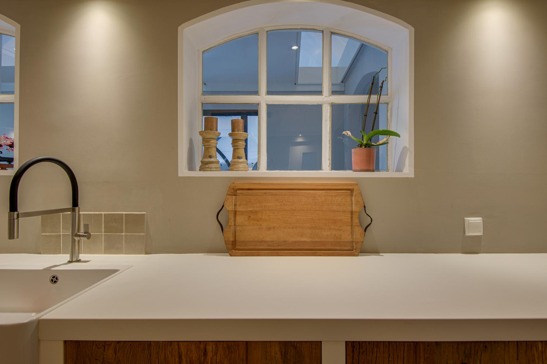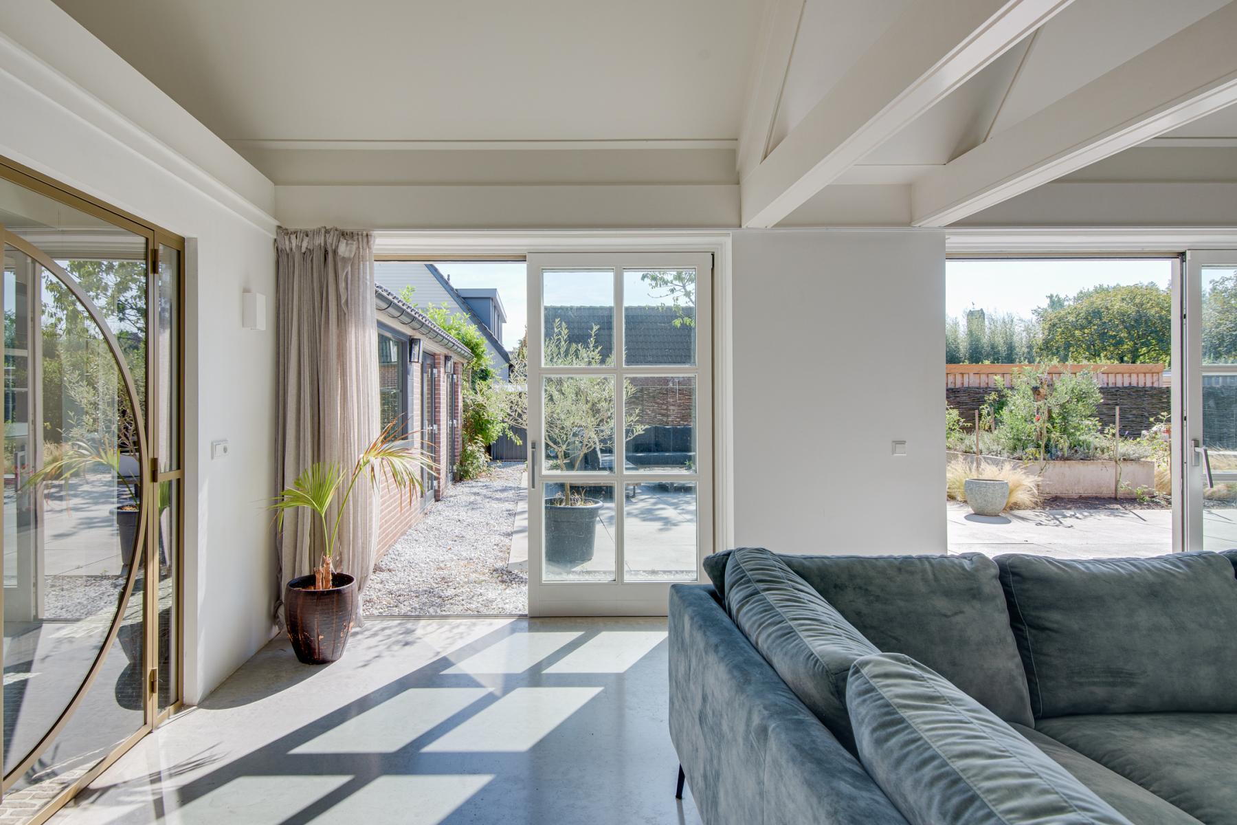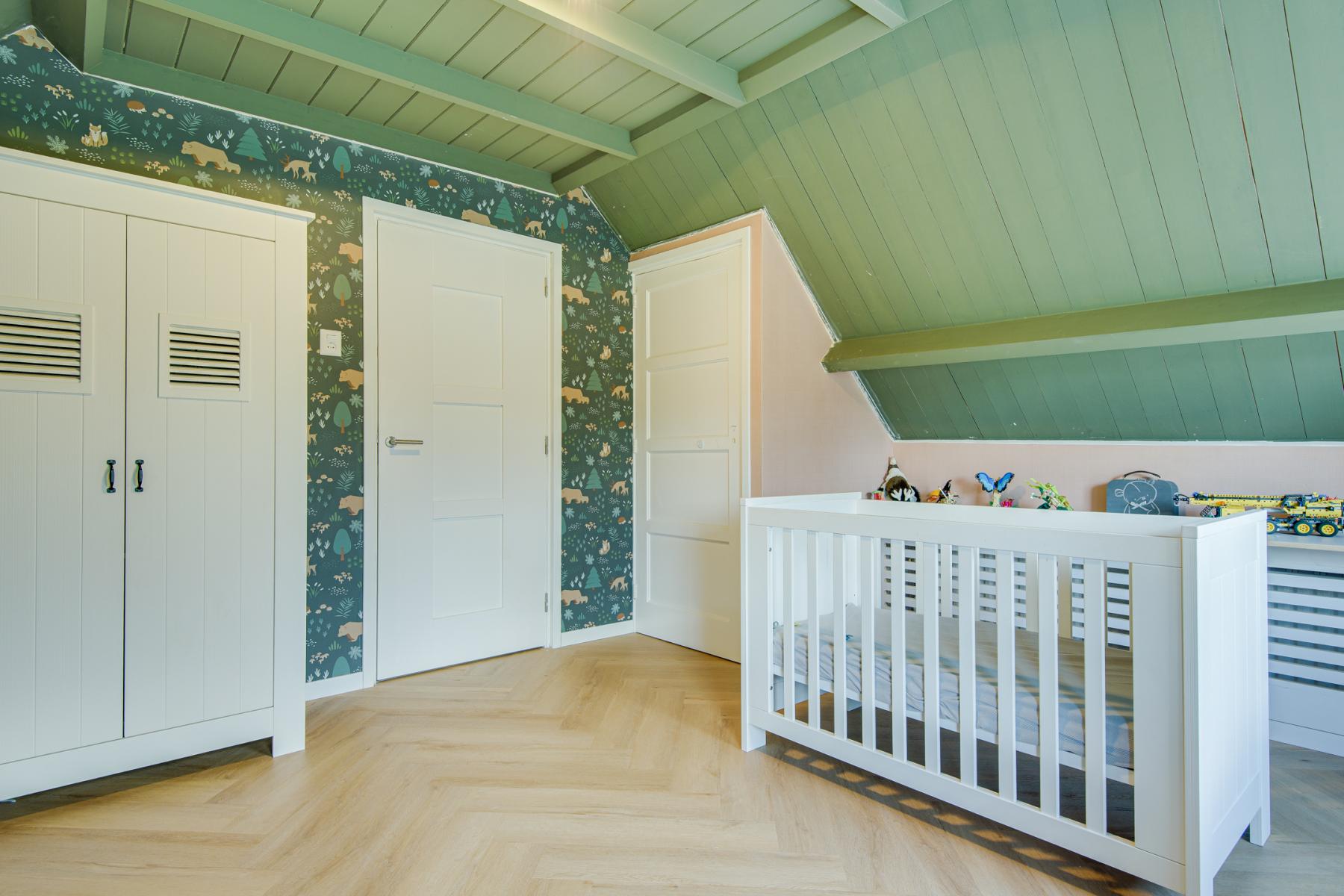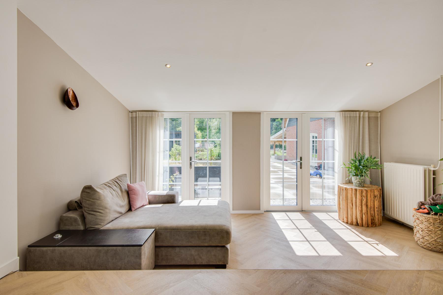 Aansluitend gaat u naar de sfeervolle woonkeuken met authentieke boerderijraampjes. De ruimte is voorzien van PVC-vloer met vloerverwarming, vaste kast en een luxe op maat gemaakt keukenblok met iepenhouten elementen. Verder is dit keukenblok voorzien van een inductie kookplaat, grote oven van het merk Steel, afzuigkap, ingebouwde koelkast met vriezer en een vaatwasser.