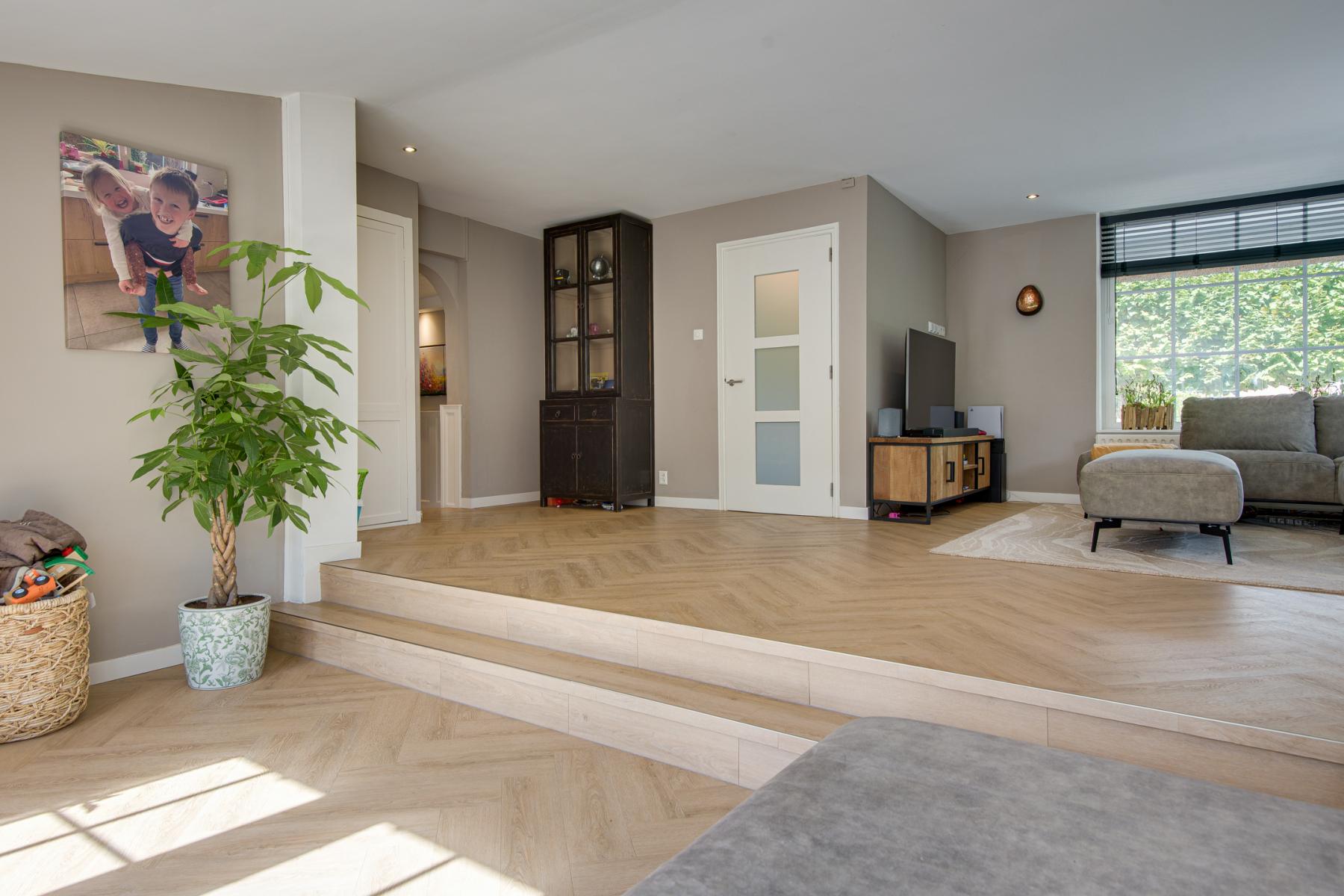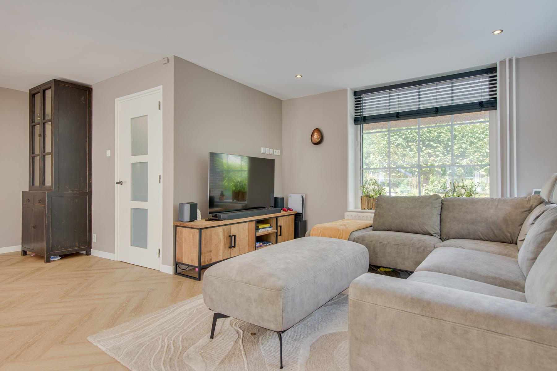 Vanuit de hal komt u in de woonkamer met PVC-vloer, sfeervolle houtkachel, gestuukte plafonds en wanden, vaste kast en 2 dubbel openslaande tuindeuren waardoor u altijd het ruimtelijke buitengevoel behoudt.