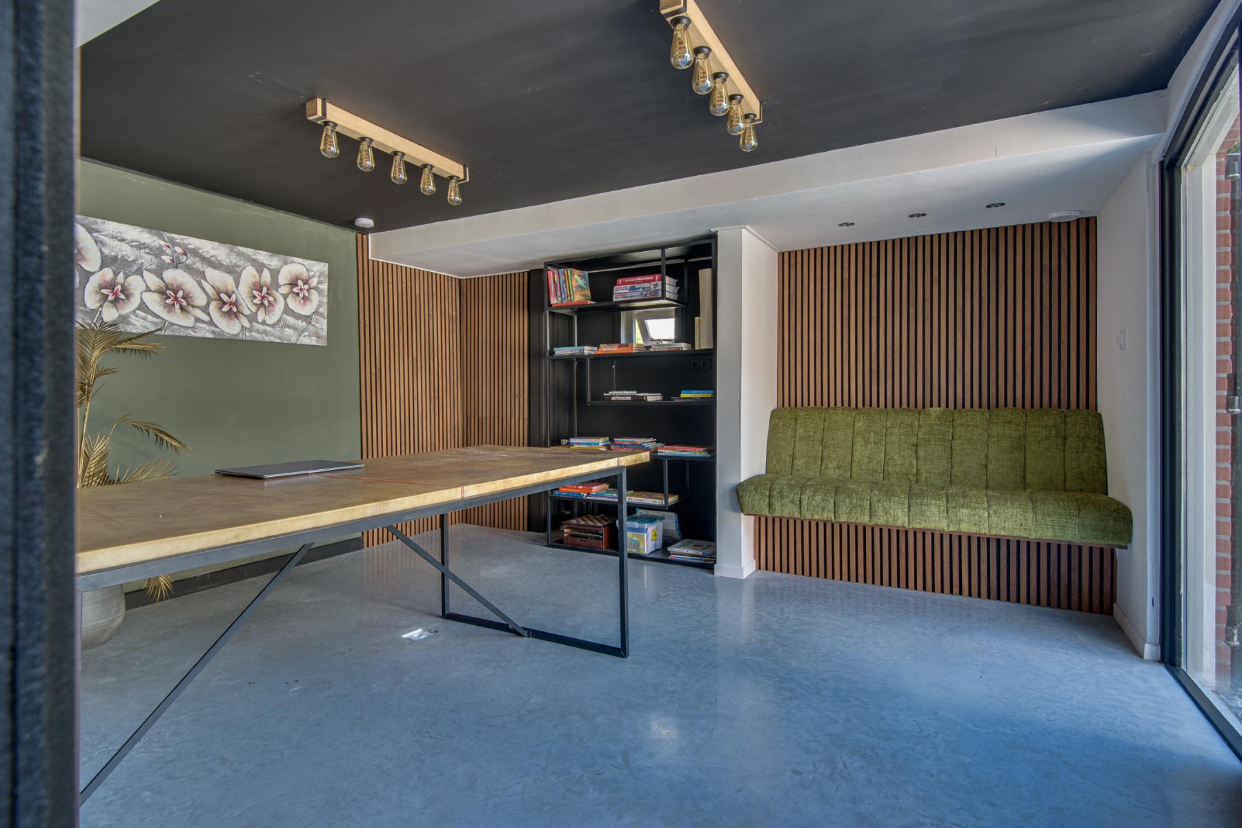 Via de keuken is er een kantoorruimte te bereiken. Het kantoor heeft ook een eigen entree vanaf de oprit. Tevens zijn de meterkast (nieuwe groepenkast) en CV-ruimte met opstelplaats CV-combiketel (Bosch uit 2013) hierin gesitueerd.