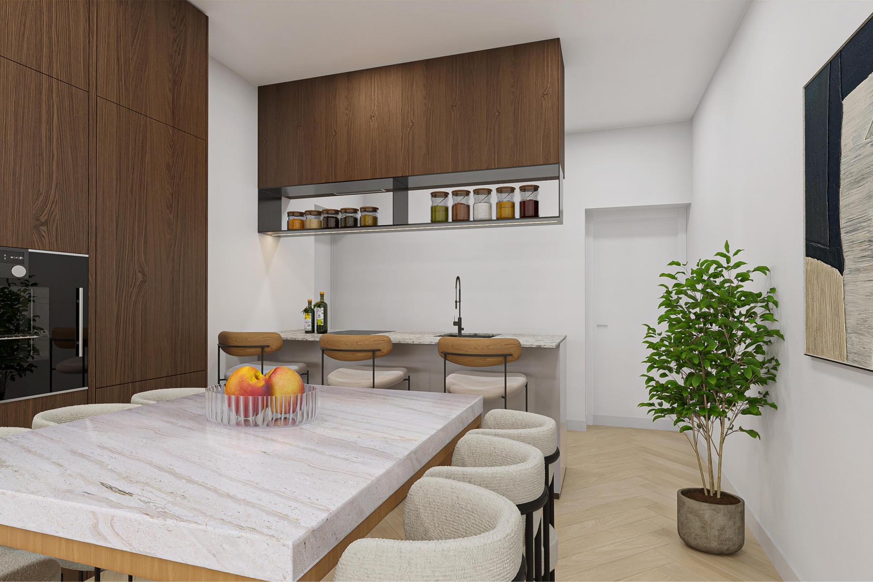 De basis is al aanwezig en met een relatief eenvoudige verbouwing kun je hier jouw droomappartement realiseren. Laat je alvast inspireren door de artist impressions — deze geven een mooi beeld van de mogelijkheden, maar natuurlijk kun je het helemaal naar eigen smaak inrichten.