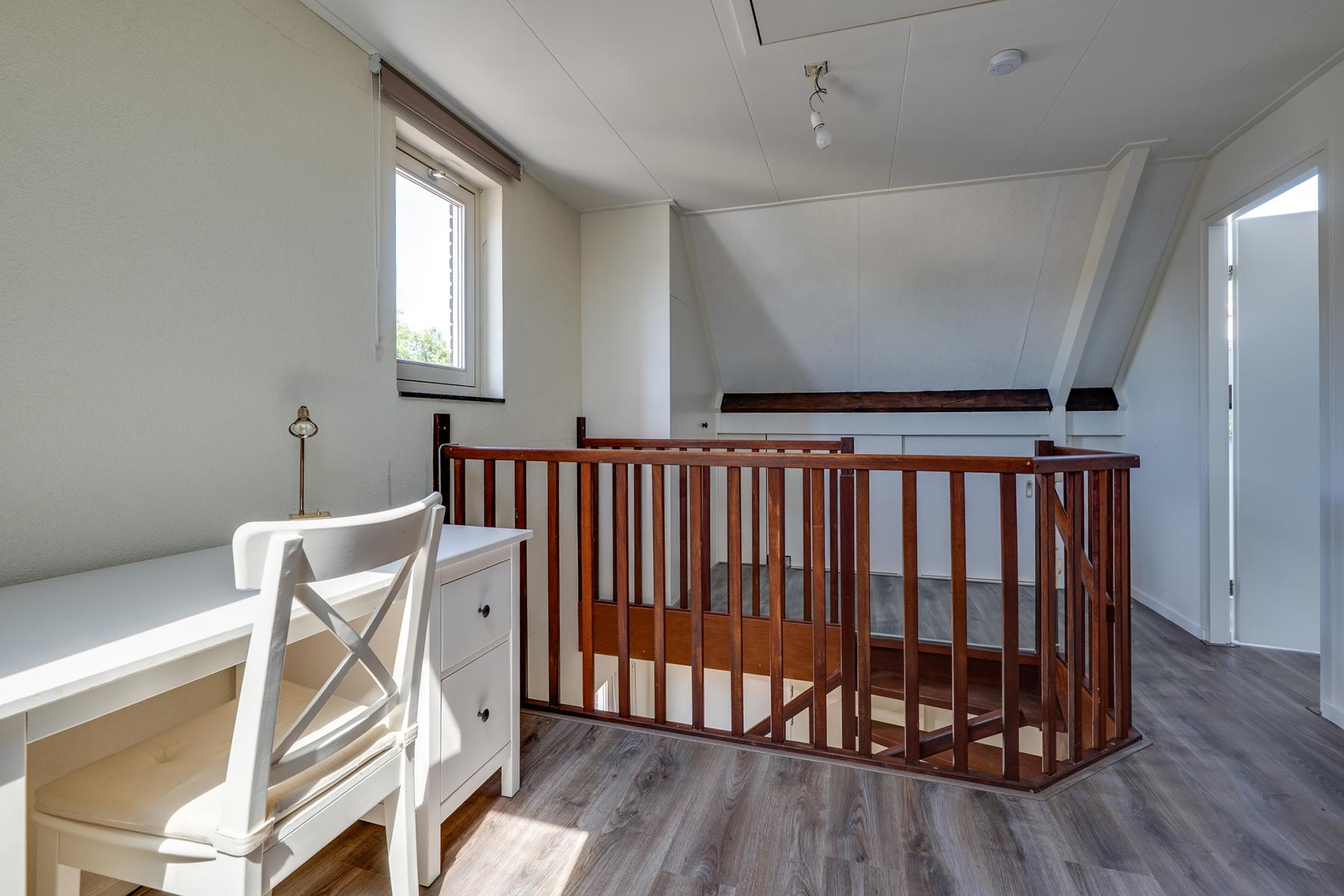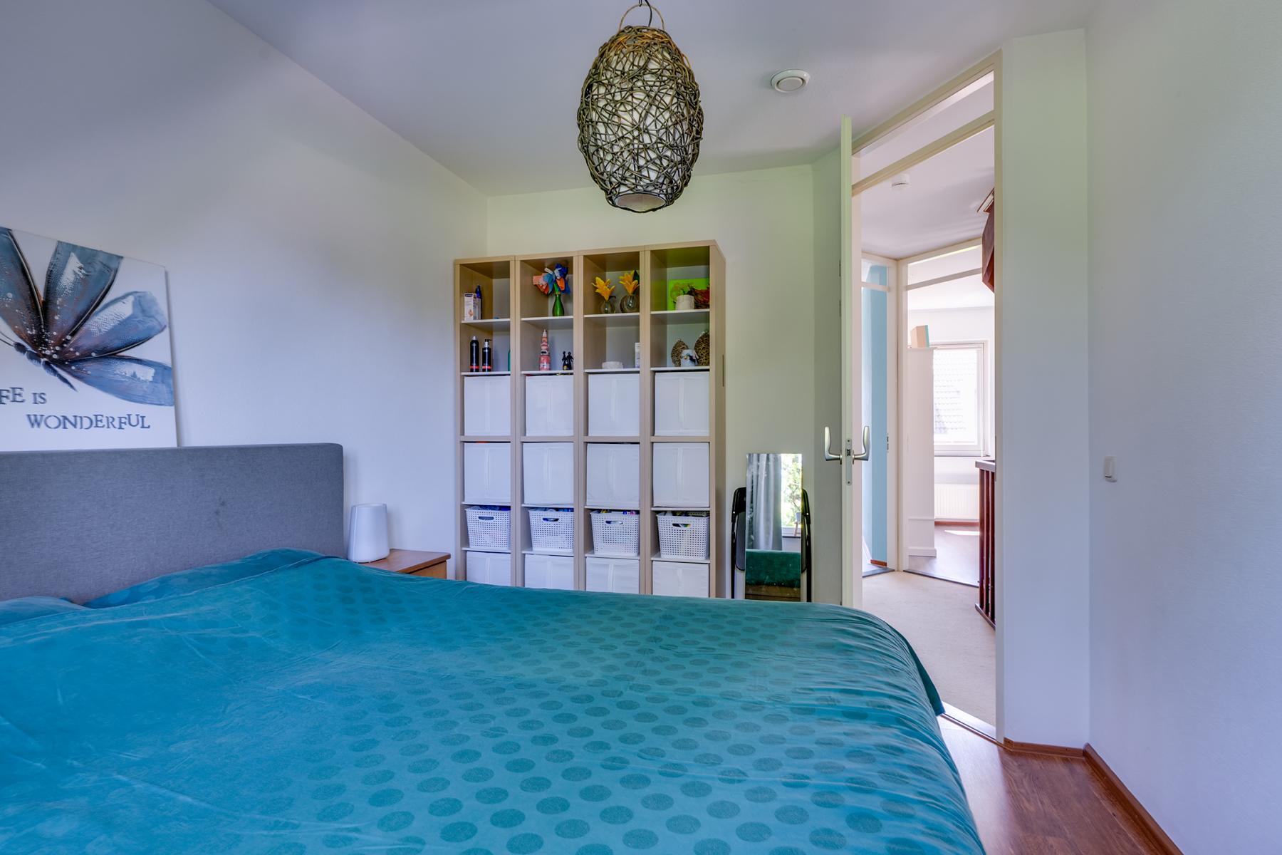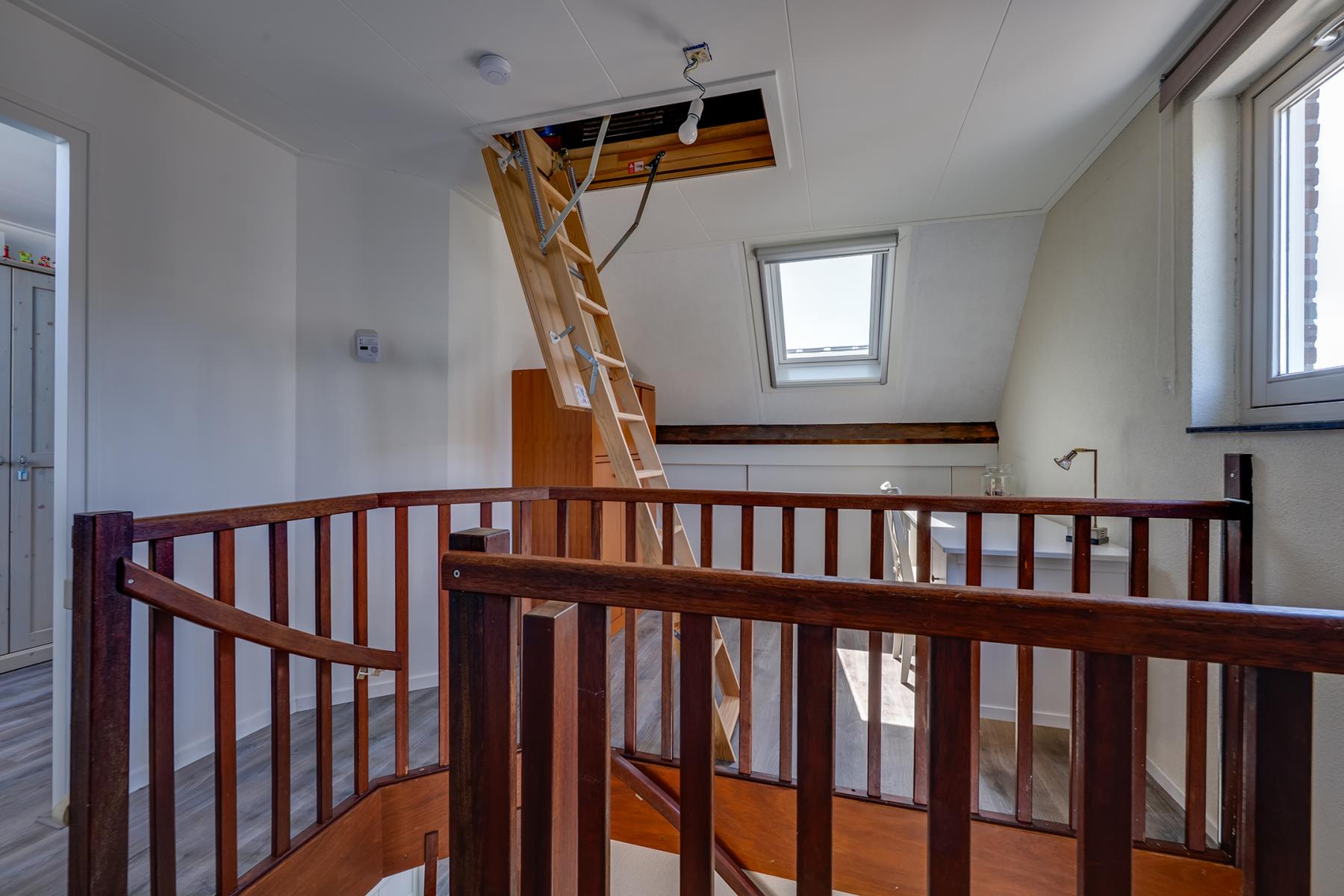 Op de eerste verdieping vind je drie comfortabele slaapkamers, een luxe badkamer en een ruime inloopkast. Deze is uitgerust met een ligbad, douche, dubbele wastafel, toilet en een handdoekradiator – alles wat je nodig hebt om heerlijk te ontspannen. Op de tweede verdieping is kom je eerst op de ruime voorzolder, deze ruimte is bijvoorbeeld te gebruiken als kantoor of als logeerkamer. Op deze verdieping is ook een vierde slaapkamer aanwezig. Via een vlizotrap heb je bovendien toegang tot een handige bergzolder.
