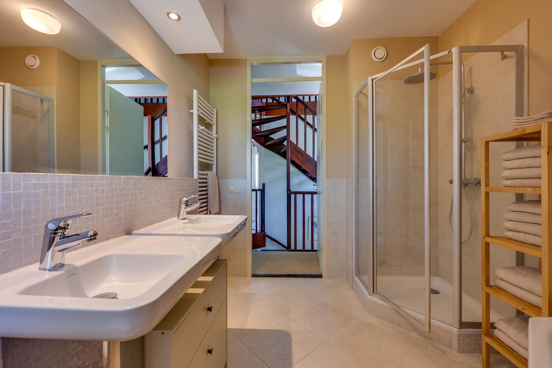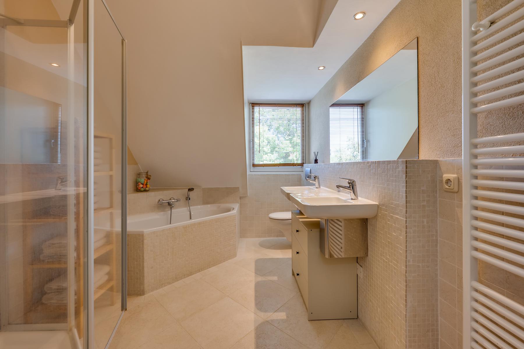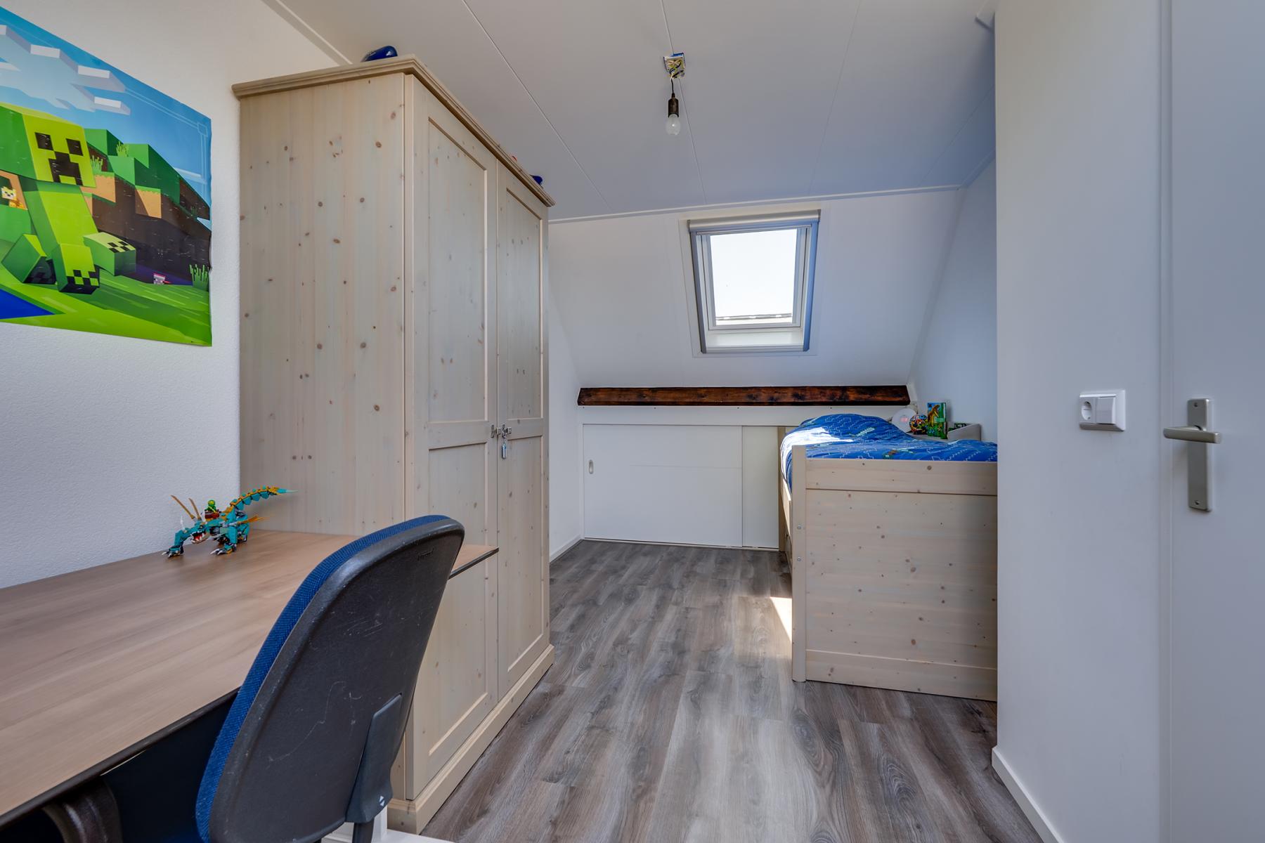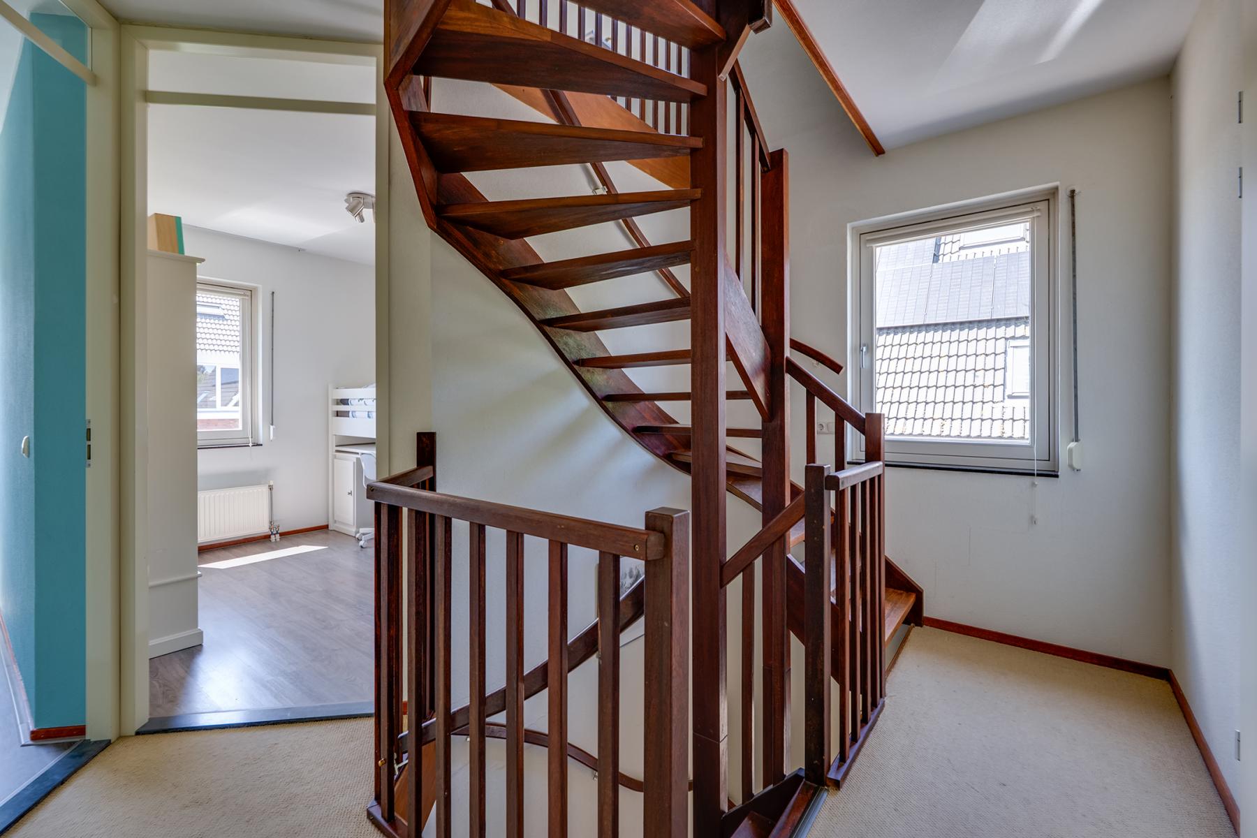 Op de eerste verdieping vind je drie comfortabele slaapkamers, een luxe badkamer en een ruime inloopkast. Deze is uitgerust met een ligbad, douche, dubbele wastafel, toilet en een handdoekradiator – alles wat je nodig hebt om heerlijk te ontspannen. Op de tweede verdieping is kom je eerst op de ruime voorzolder, deze ruimte is bijvoorbeeld te gebruiken als kantoor of als logeerkamer. Op deze verdieping is ook een vierde slaapkamer aanwezig. Via een vlizotrap heb je bovendien toegang tot een handige bergzolder.