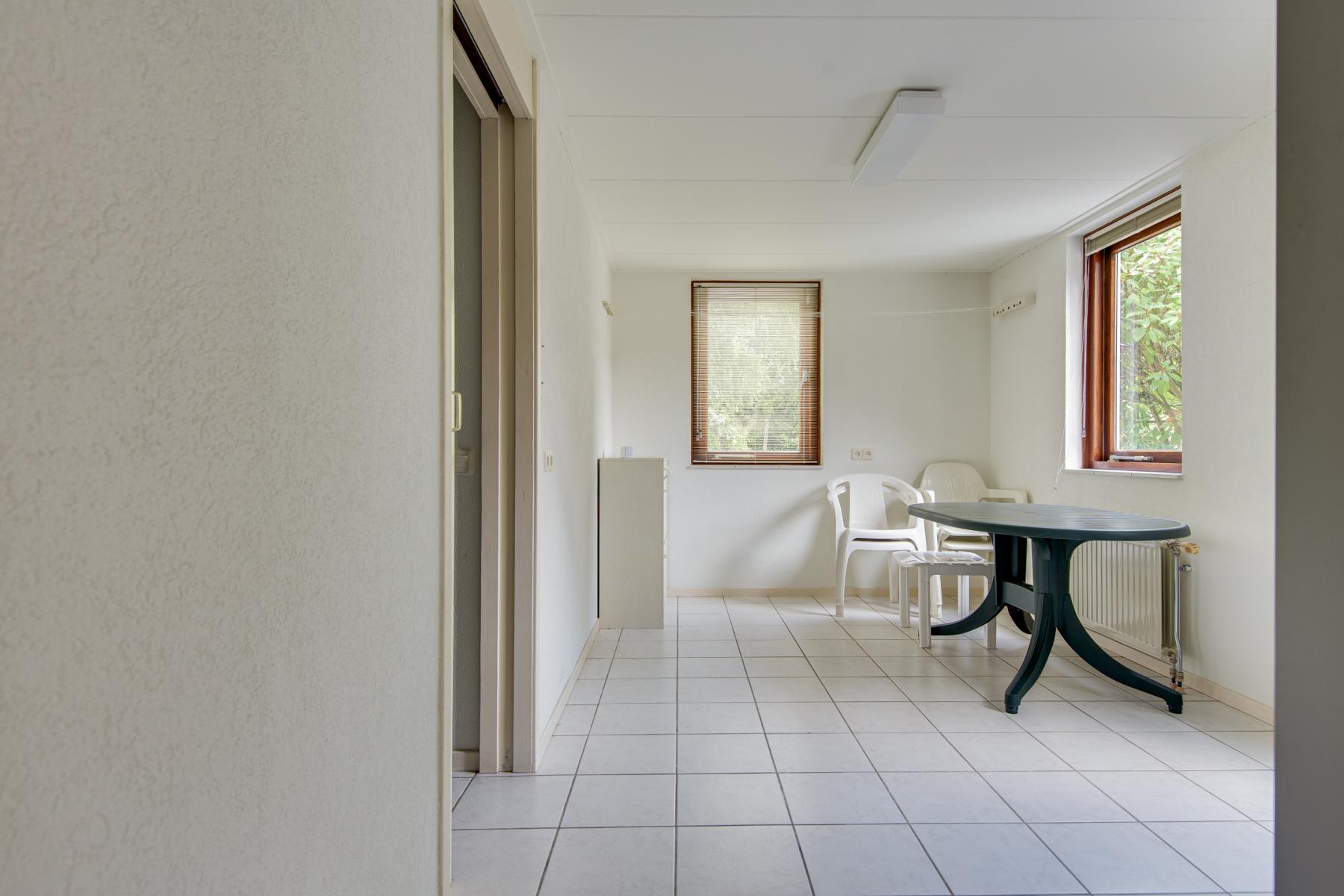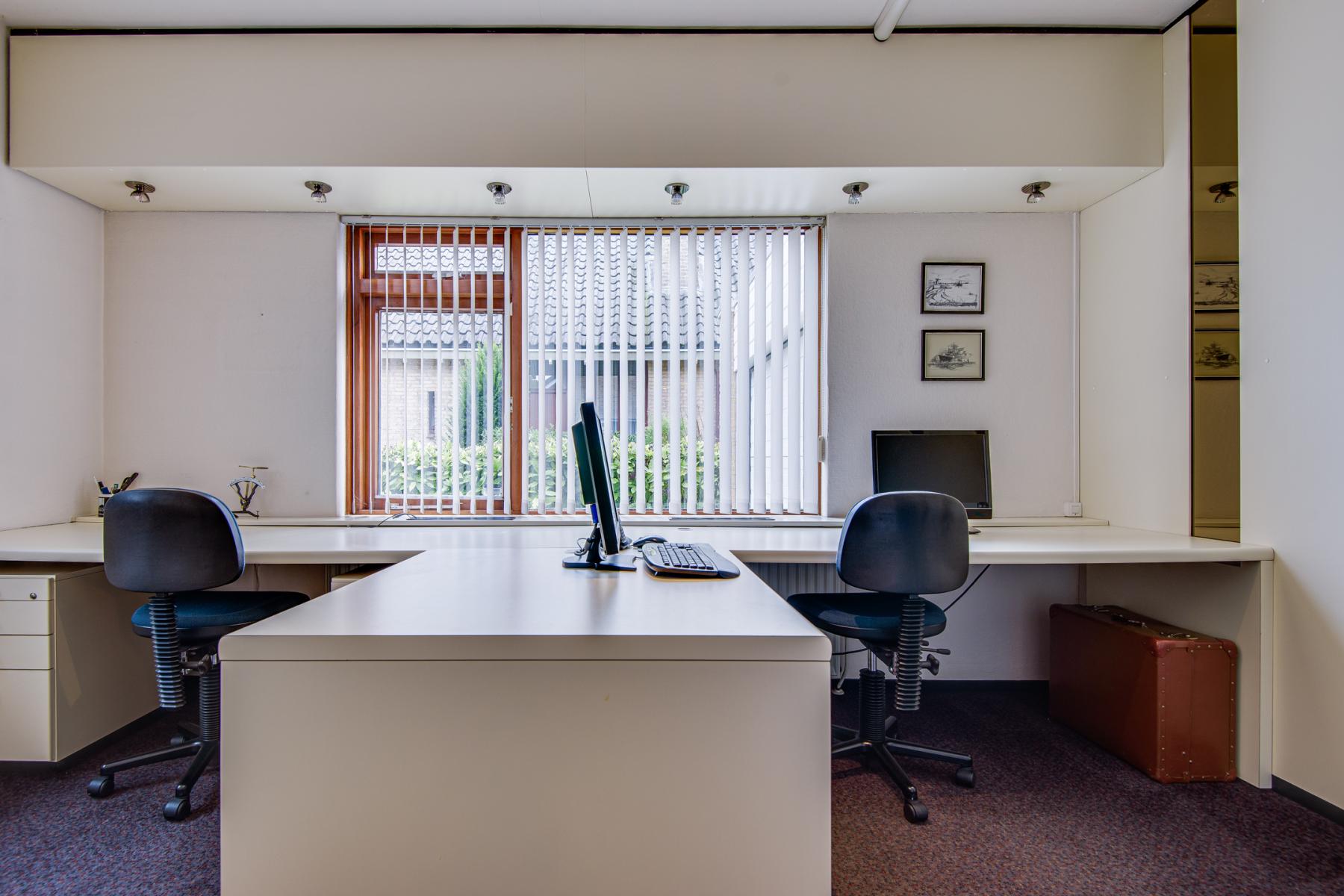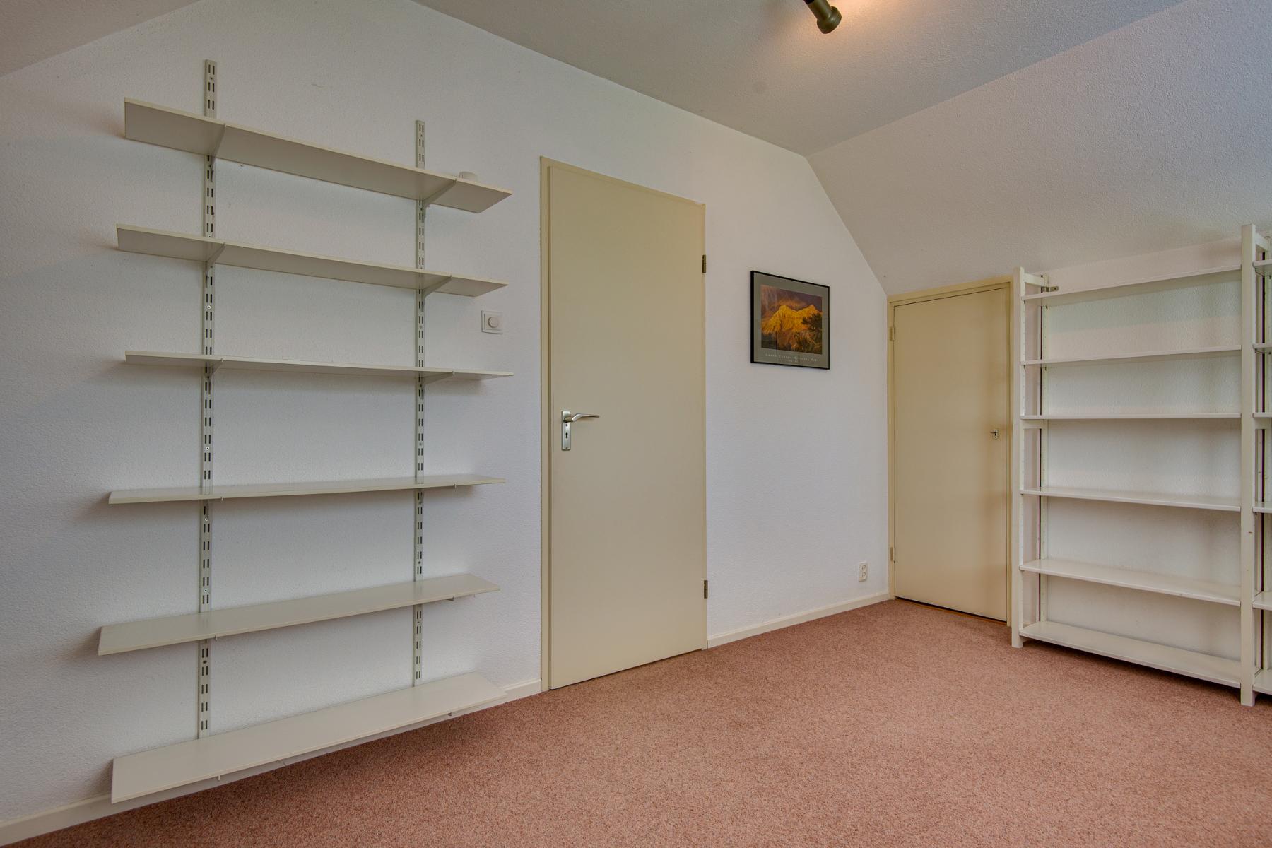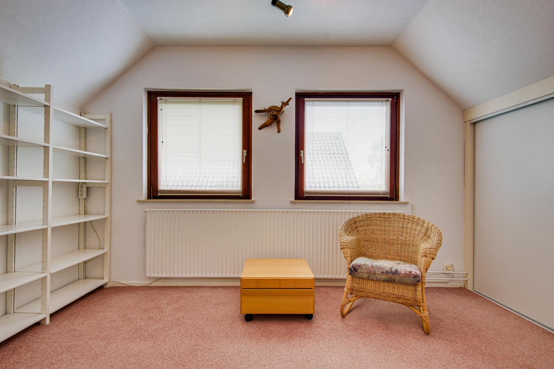 Via de hal stap je binnen in een praktische kantoorruimte, die je ook eenvoudig kunt gebruiken als extra slaapkamer of hobbykamer. Vanuit hier loop je door naar de eetkamer en de gezellige woonkamer. Aangrenzend bevindt zich een ruime slaapkamer, veel kastruimte en een badkamer met toilet, douche, dubbele wastafel en handdoekradiator.