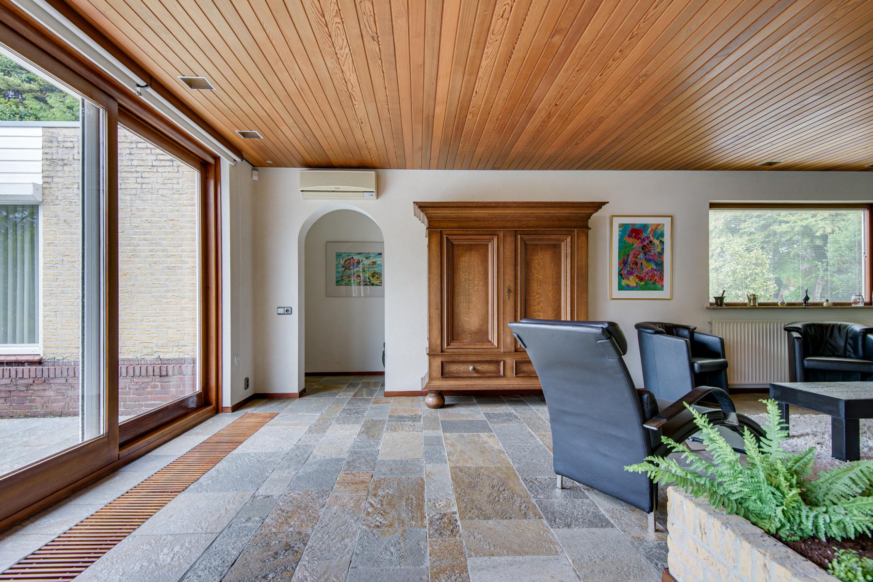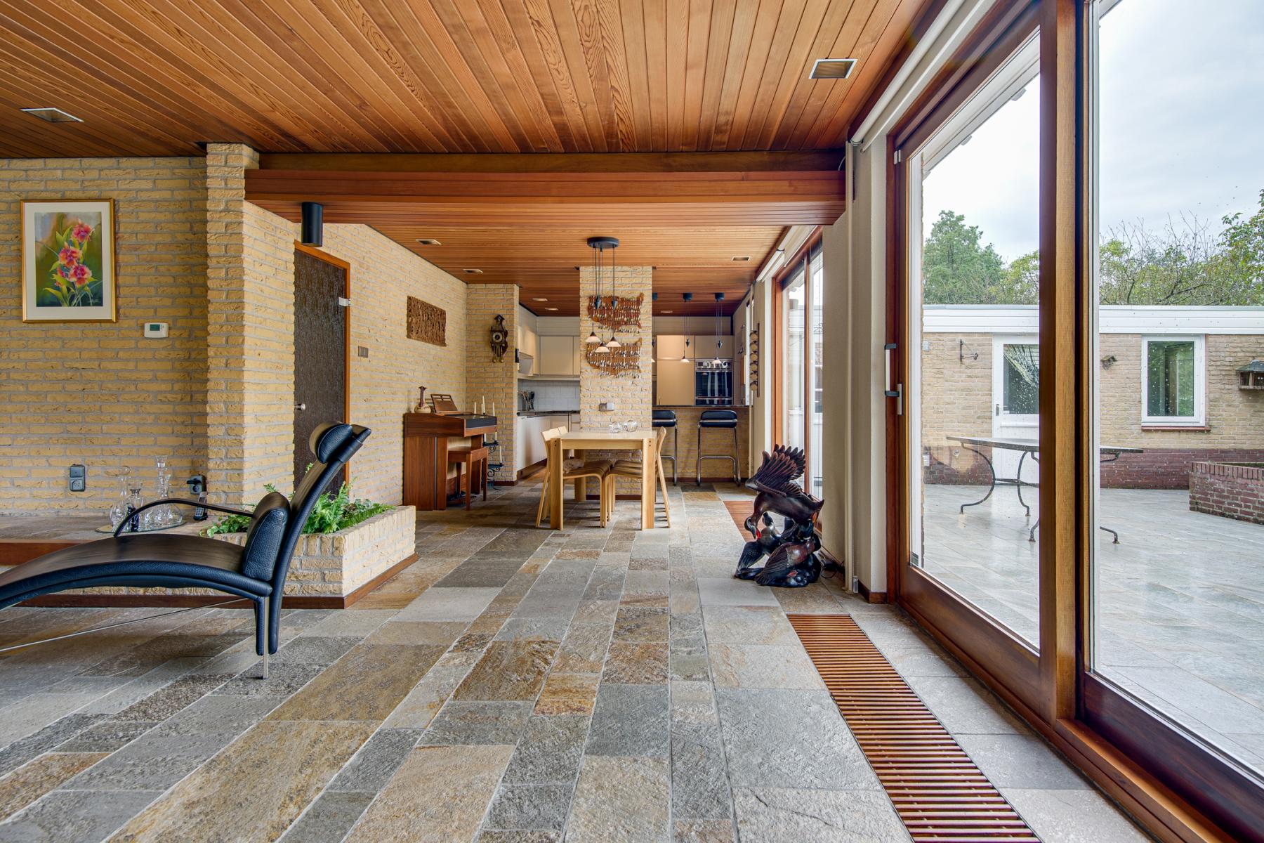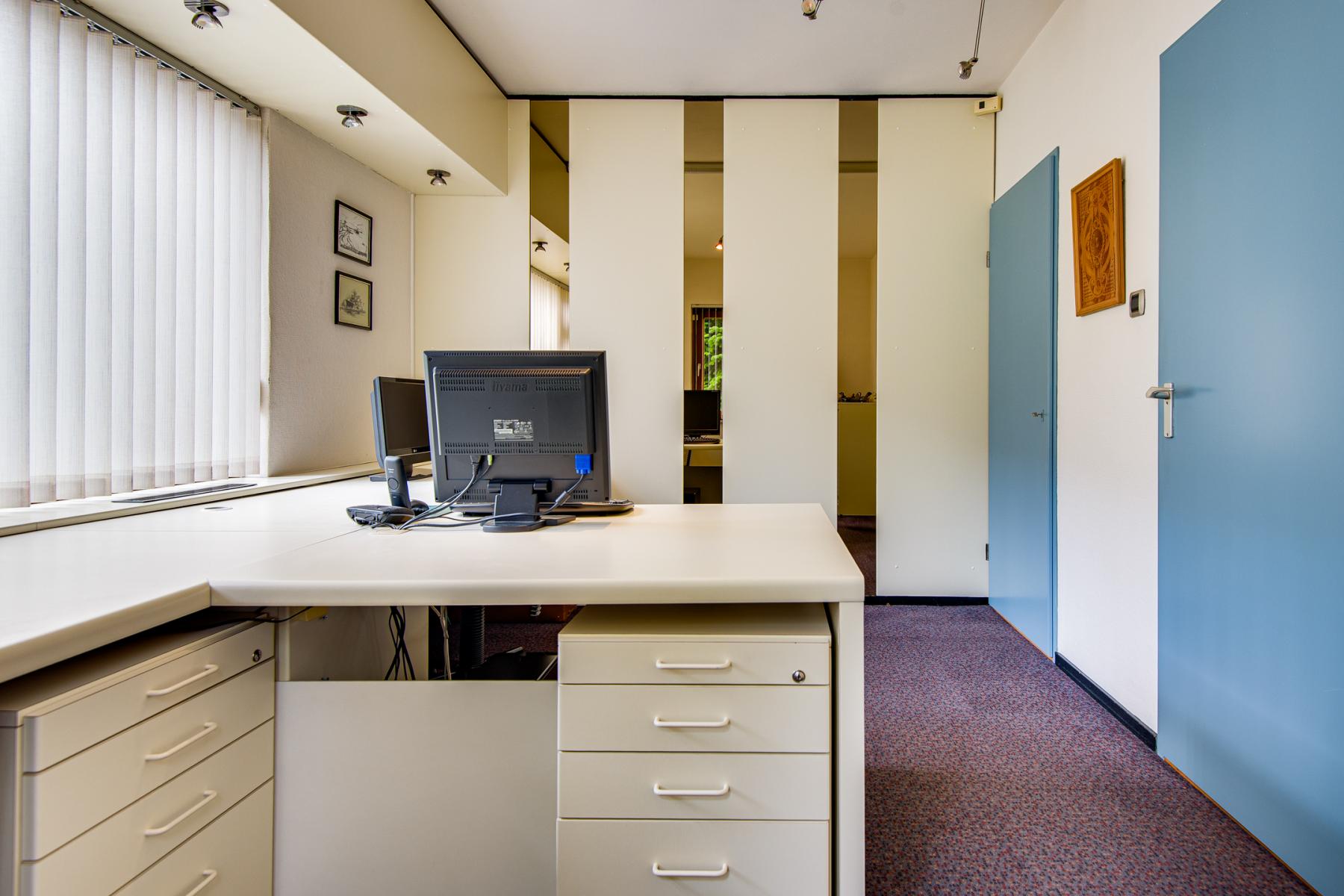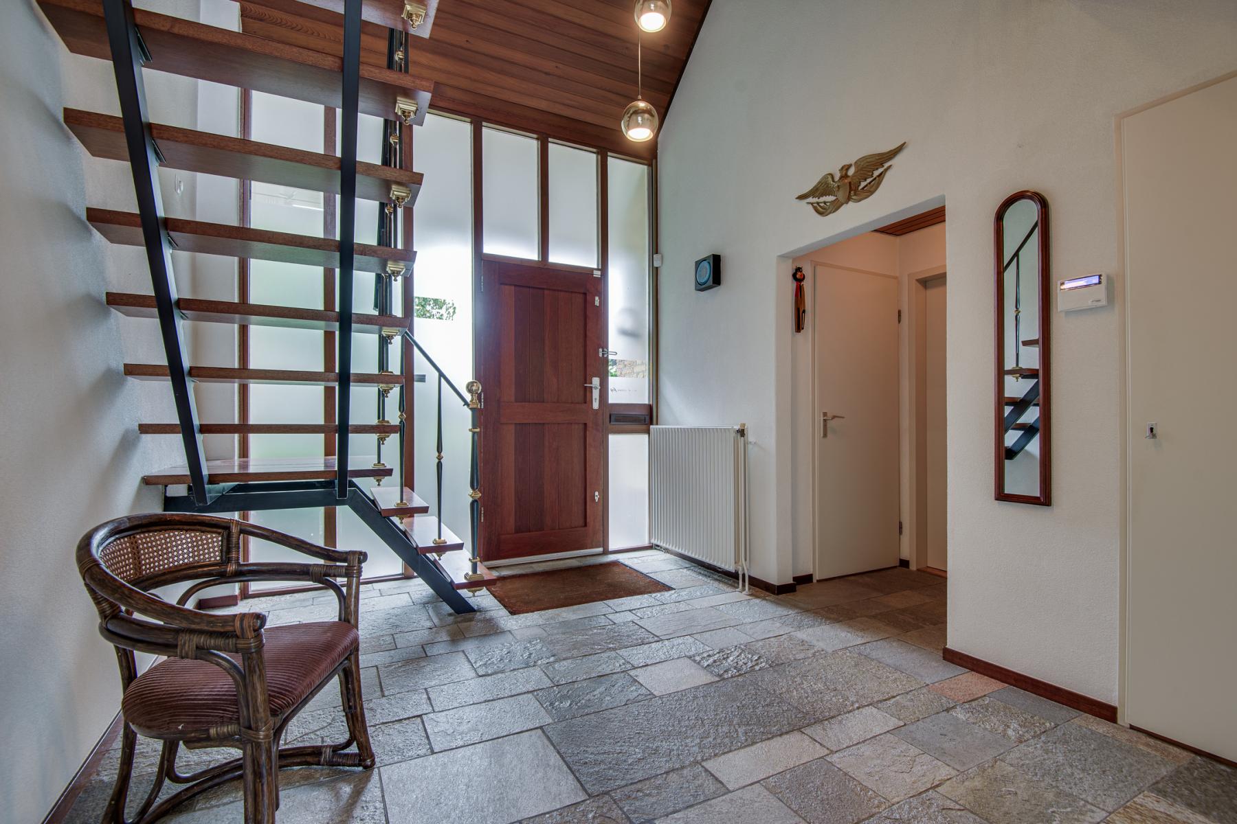 Via de hal stap je binnen in een praktische kantoorruimte, die je ook eenvoudig kunt gebruiken als extra slaapkamer of hobbykamer. Vanuit hier loop je door naar de eetkamer en de gezellige woonkamer. Aangrenzend bevindt zich een ruime slaapkamer, veel kastruimte en een badkamer met toilet, douche, dubbele wastafel en handdoekradiator.
