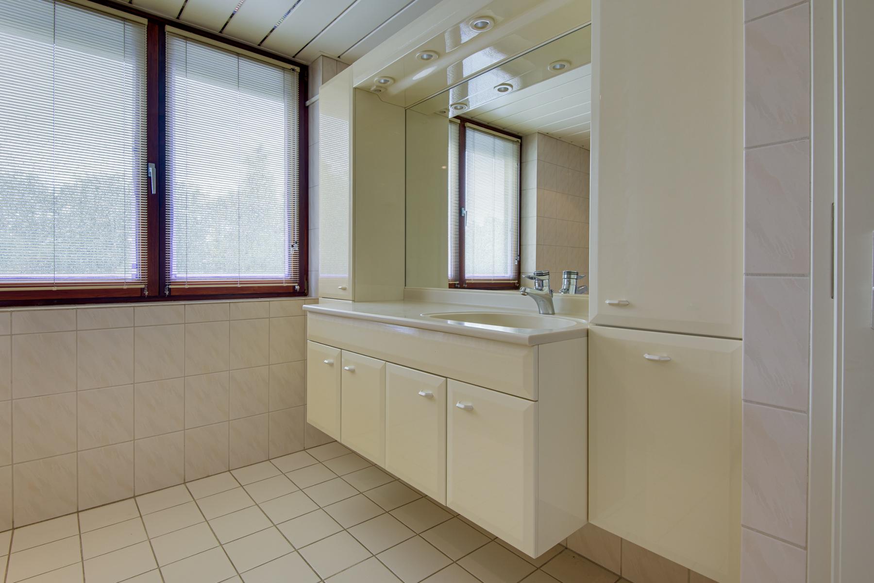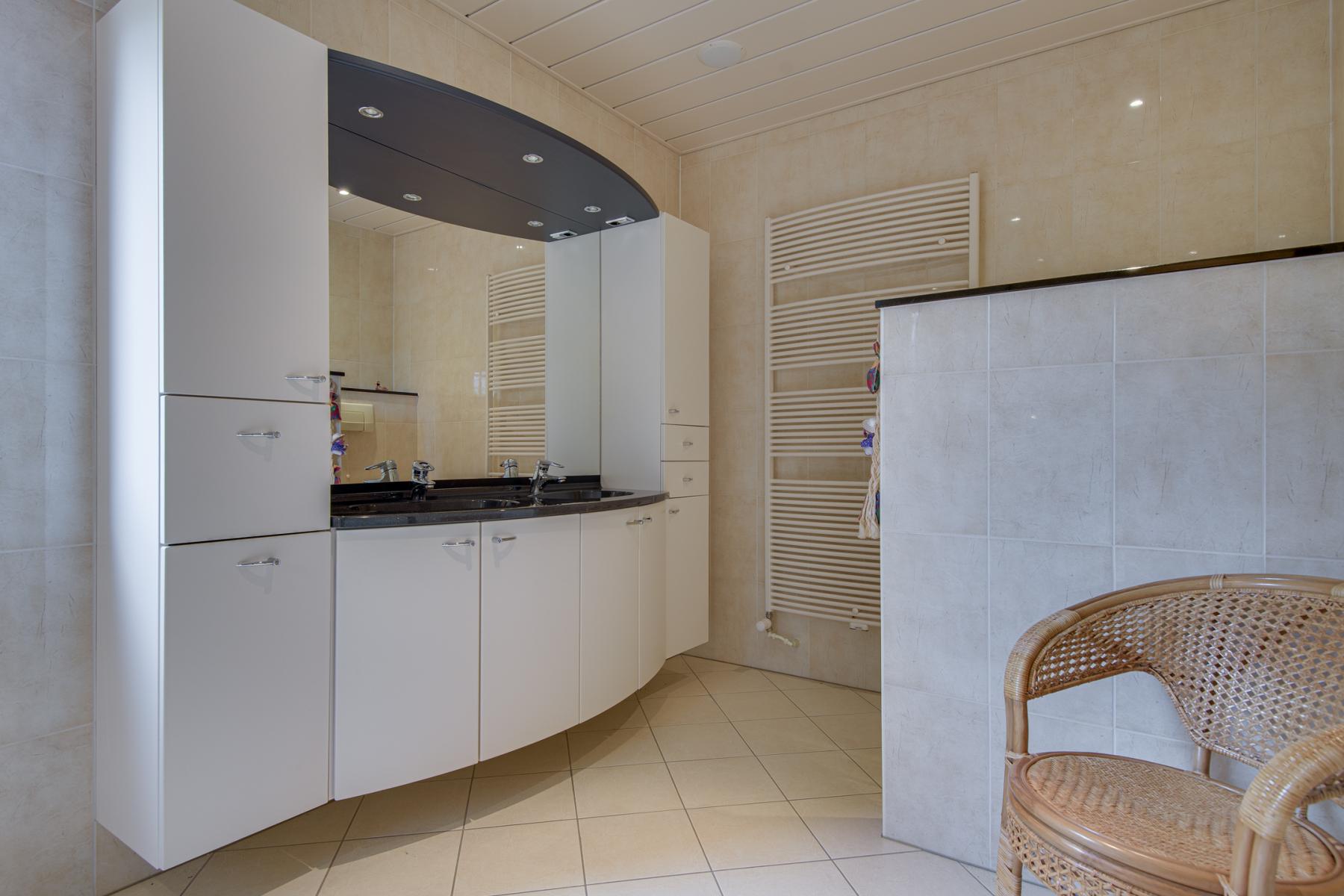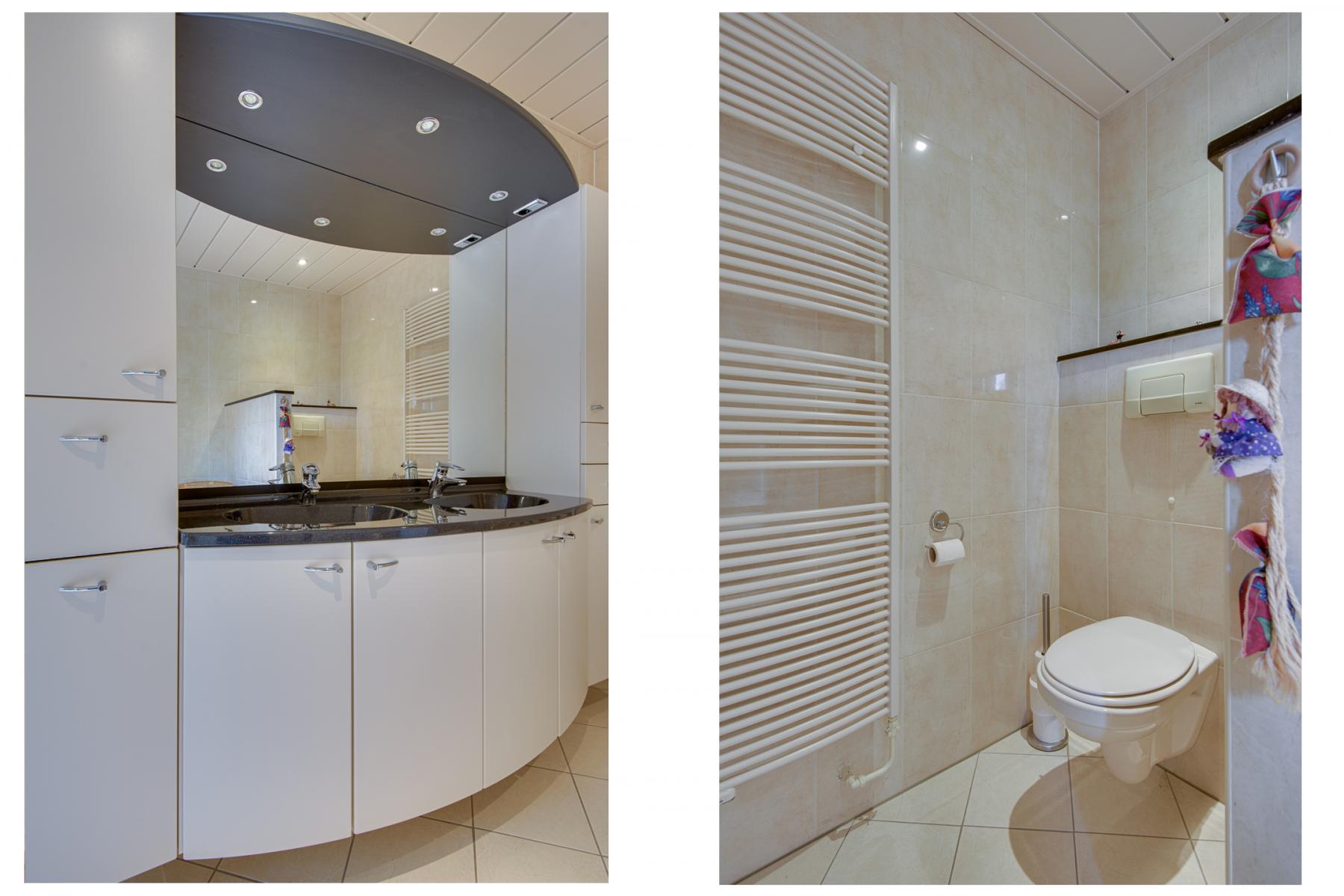 Boven bevinden zich nog twee slaapkamers, beide met handige bergruimte, een apart toilet en een tweede badkamer met ligbad, douche, wastafelmeubel en handdoekradiator.