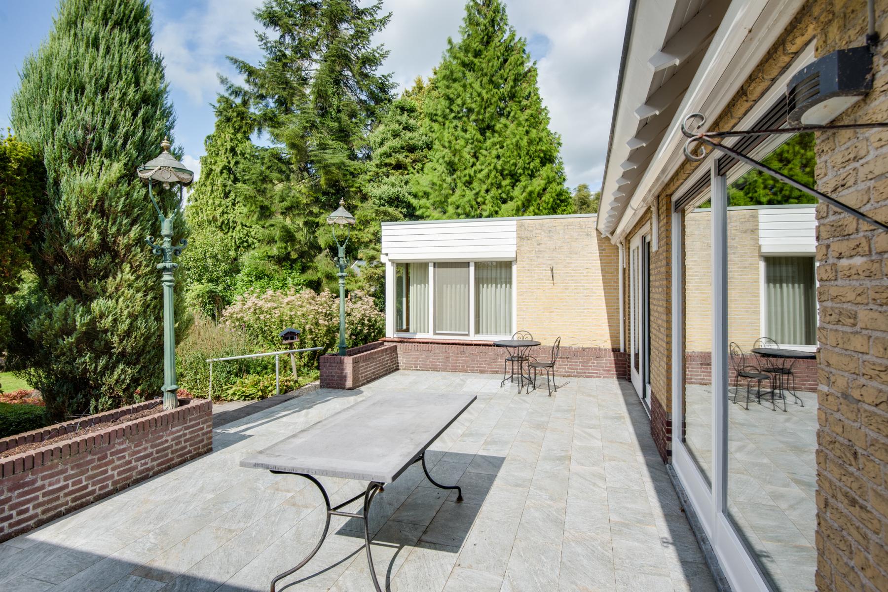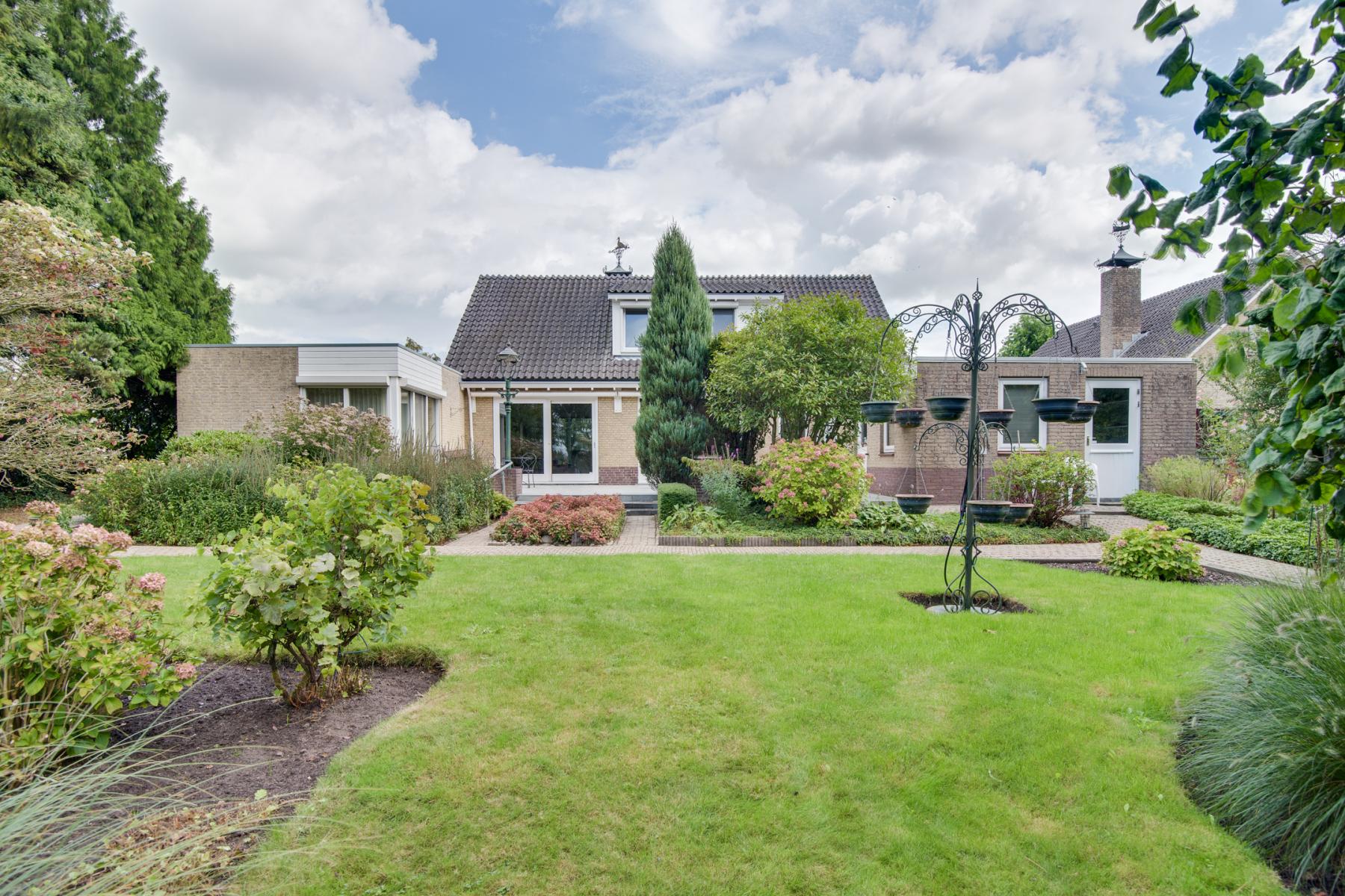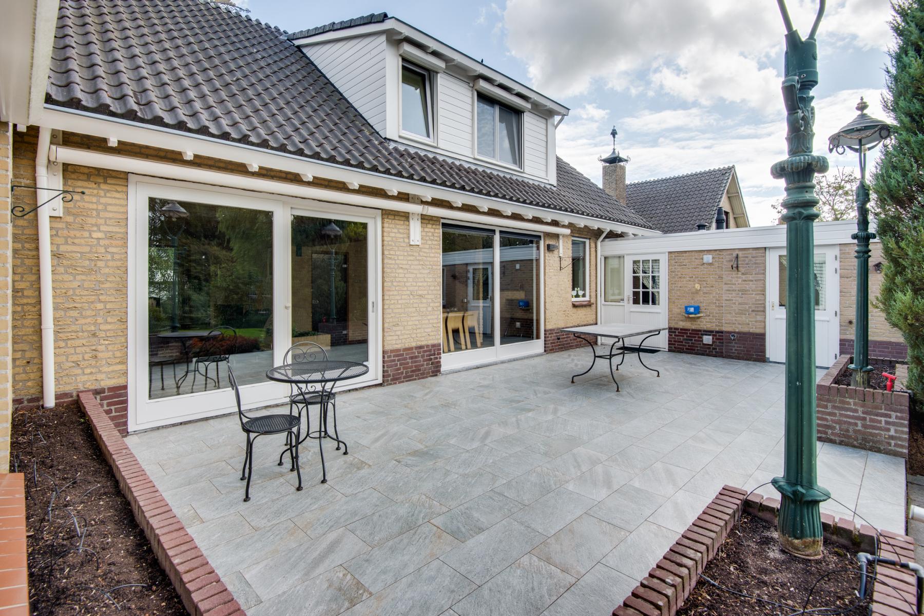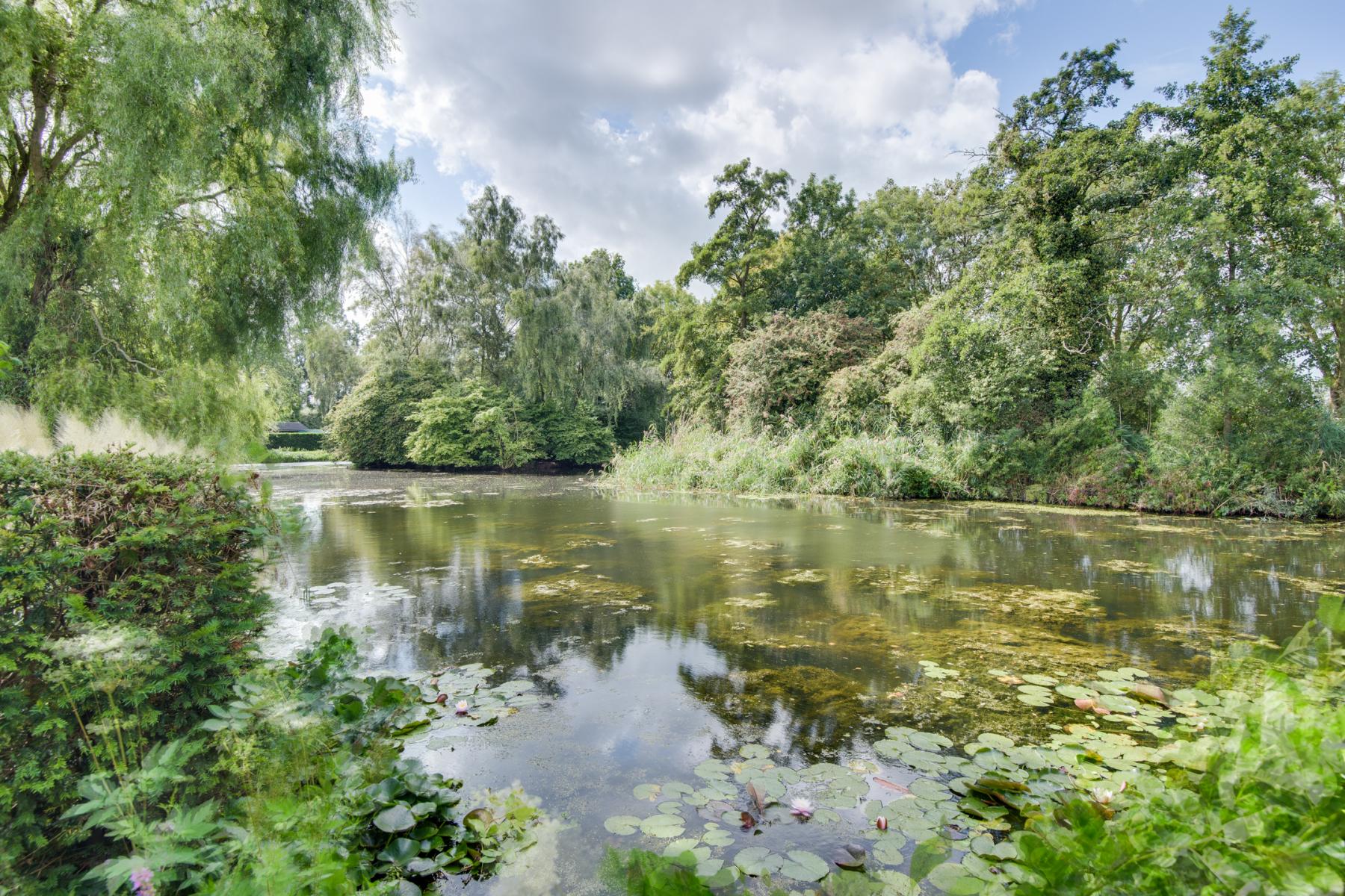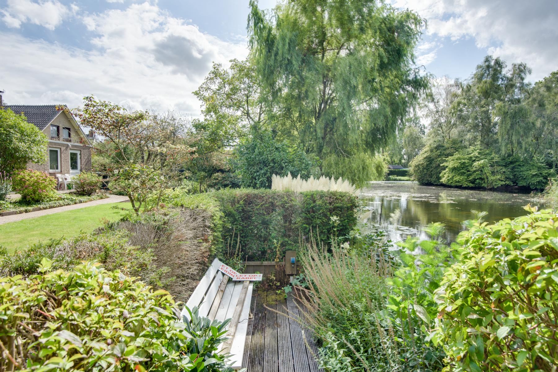 De tuin is een ware blikvanger. Direct achter het huis ligt een ruim terras waar je heerlijk buiten kunt eten of ontspannen. Verderop vind je een groot stuk groen, en helemaal achter in de tuin wacht een sfeervol zitje aan het water – de perfecte plek om te genieten van de avondzon.