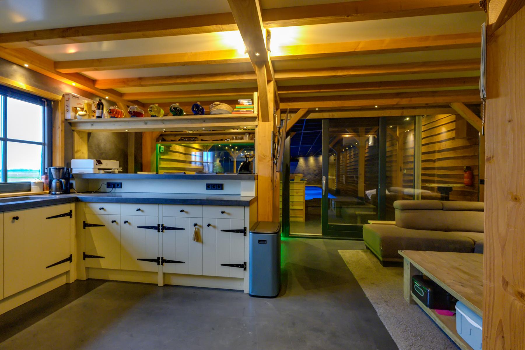 Eigen entree/hal met giet betonvloer en systeemplafond. Wasruimte met aansluitpunten wasapparatuur en unit vloerverwarming. Slaapkamer met betonvloer met vloerverwarming, systeemplafond, houten kozijnen met dubbel glas en airco unit. Slaapkamer 2 met giet betonvloer met vloerverwarming, systeemplafond en houten kozijnen met dubbel glas. Geheel betegelde badkamer met vloerverwarming, inloopdouche, hangend toilet, wastafelmeubel en houten kozijnen met dubbel glas. Woonkeuken met giet betonvloer met vloerverwarming en een U-vormig keukenblok met betonlook aanrechtblad met een 5-pits gaskookplaat, afzuigkap, combimagnetron, koel-/vriescombinatie, dubbele spoelbak en airco unit. Zwembad met loungeruimte. Jacuzzi ruimte met grote jacuzzi voor meerdere personen. Technische ruimte met de pomp van het zwembad, unit vloerverwarming en CV-combiketel. Geheel betegelde doucheruimte met inloopdouche. Multifunctionele ruimte 1 met laminaatvloer en designradiator. Multifunctionele ruimte 2 met laminaatvloer, designradiator en eigen toiletruimte met hangend toilet met fonteintje.