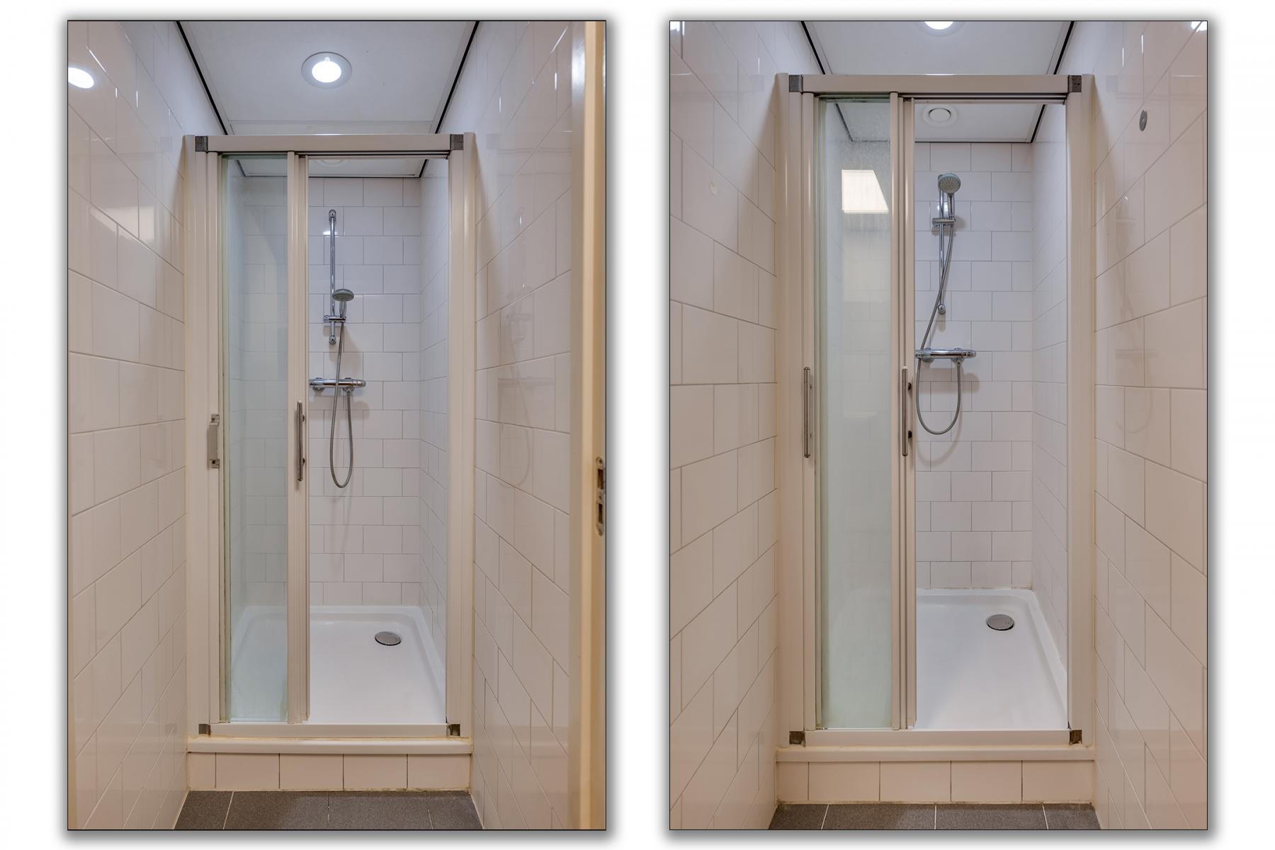 1e verdieping: overloop met zeil en toegang tot een ruime entresol. Wasruimte met laminaatvloer en 4 wasbakken. Opstelplaats CV-combiketel. Geheel betegelde doucheruimte 1 met douchecabine. Geheel betegelde doucheruimte 2 met douchecabine. Geheel betegelde toiletruimte 1 met hangend toilet. Geheel betegelde toiletruimte 2 met hangend toilet. Ruime kantine met zeil en een U-vormig keukenblok met 4-pits gaskookplaat, afzuigkap en koelkast. 8 kantoorruimten met laminaatvloer, systeemplafonds met inbouwarmaturen en radiatoren.