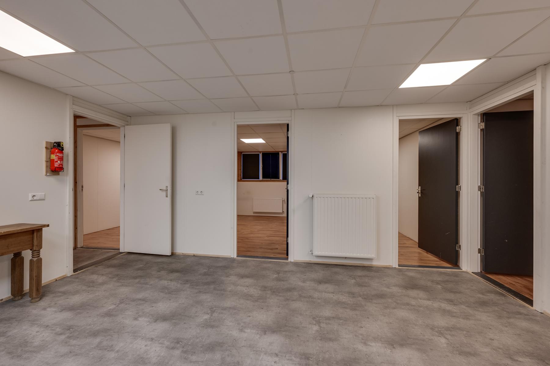 Begane grond: elektrisch bedienbare overheaddeur (ca. 4,3 meter hoog) met aparte loopdeur. Werkplaats met meterkast voor bedrijfshal en vloeistofdichte betonvloer. Werkkamer/multifunctionele ruimte met betonvloer, 3 designradiatoren, geheel betegelde toiletruimte met hangend toilet, geheel betegelde doucheruimte met inloopdouche en wasbak. Geheel betegelde doucheruimte 2 met inloopdouche en wasbak en bergruimte.
