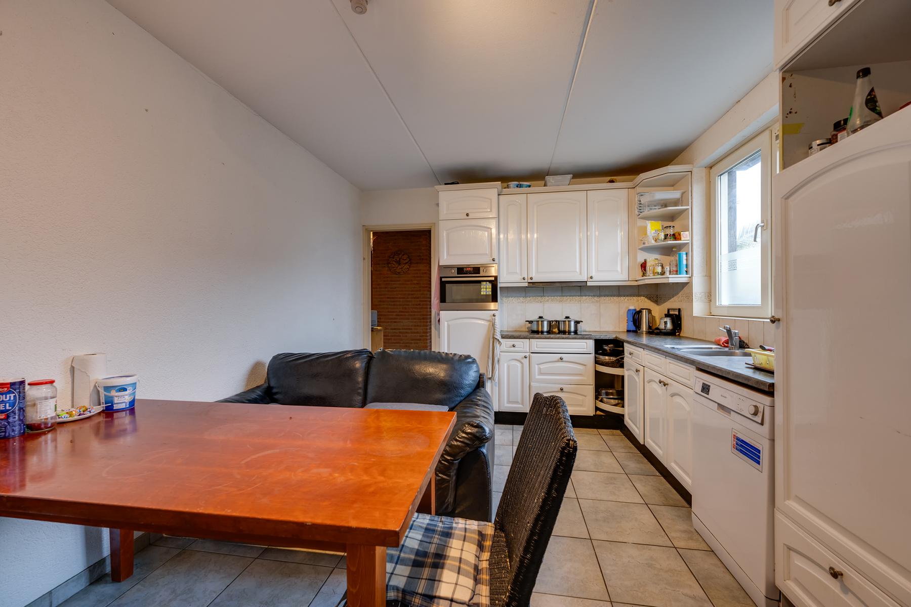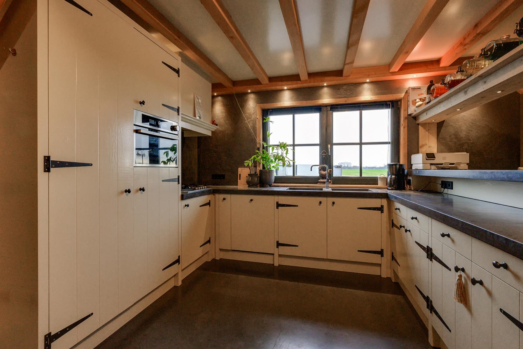 Begane grond: entree/hal met tegelvloer en schoonmetselwerk, meterkast (nieuwe groepenkast met 9 groepen, 3 aardlekschakelaars en krachtstroom), woonkeuken met tegelvloer en kunststof kozijnen met dubbel glas. De keuken is voorzien van een L-vormig keukenblok met keramische kookplaat, afzuigkap, combimagnetron en koelkast. Woonkamer met laminaatvloer, airco unit en balken plafond. Geheel betegelde toiletruimte met hangend toilet, slaapkamer begane grond met zeil, kunststof kozijnen met dubbel glas en vaste kast. Inpandige berging met tegelvloer.