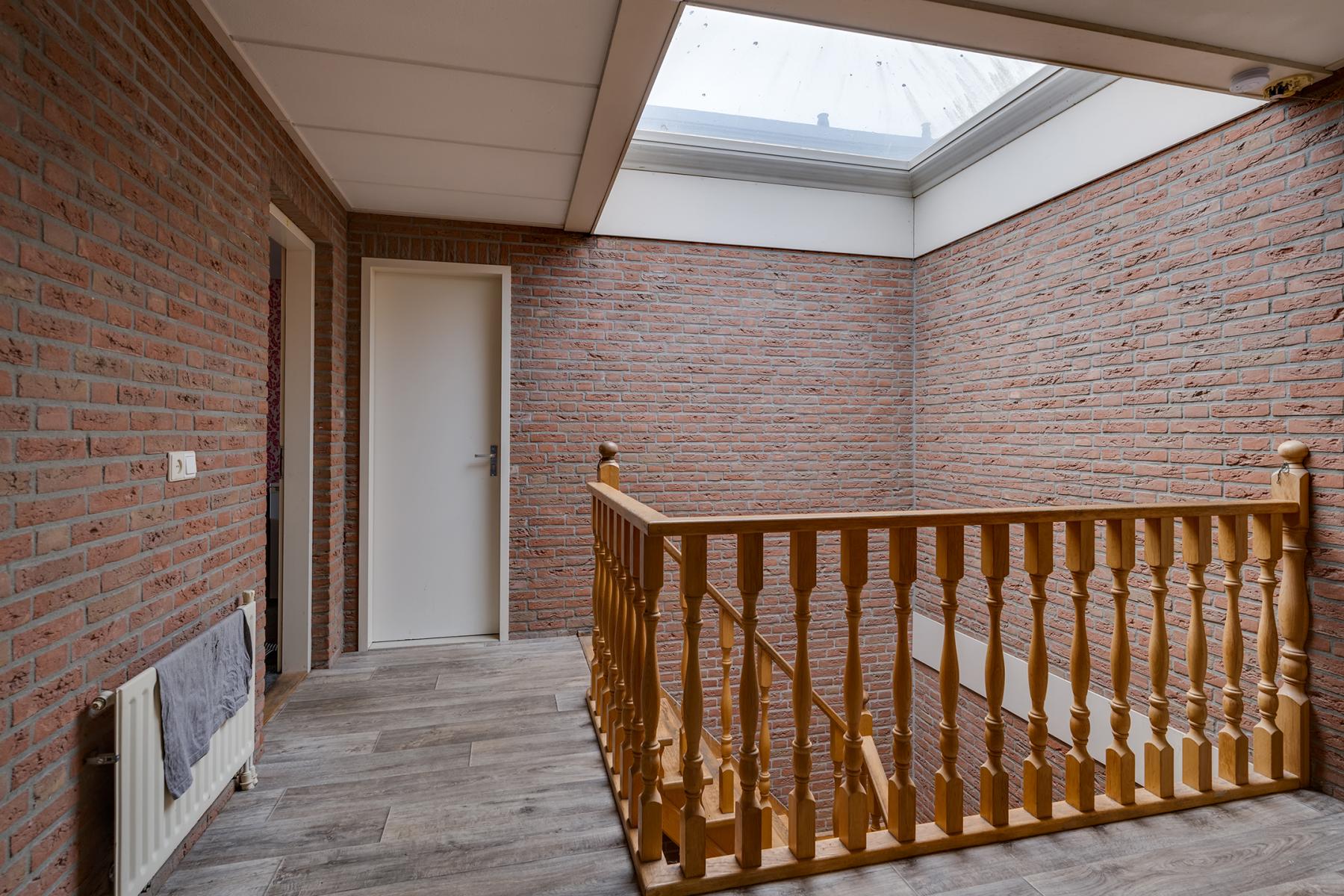 Slaapverdieping: overloop met zeil, schoonmetselwerk en lichtkoepel. Slaapkamer 1 met zeil, kunststof kozijnen met dubbel glas en rolluik. Slaapkamer 2 met zeil, kunststof kozijnen met dubbel glas en rolluik. Slaapkamer 3 met vloerbedekking, kunststof kozijnen met dubbel glas en rolluik. Slaapkamer 4 met zeil, kunststof kozijnen met dubbel glas en rolluik. Geheel betegelde toiletruimte met hangend toilet en fonteintje. Geheel betegelde badkamer met ligbad, douchecabine, designradiator, dubbel wastafelmeubel, kunststof kozijnen met dubbel glas en rolluik. Inpandige wasruimte met aansluitpunten wasapparatuur, unit mechanische ventilatie en opstelplaats CV-combiketel (Nefit uit ca 1997).
