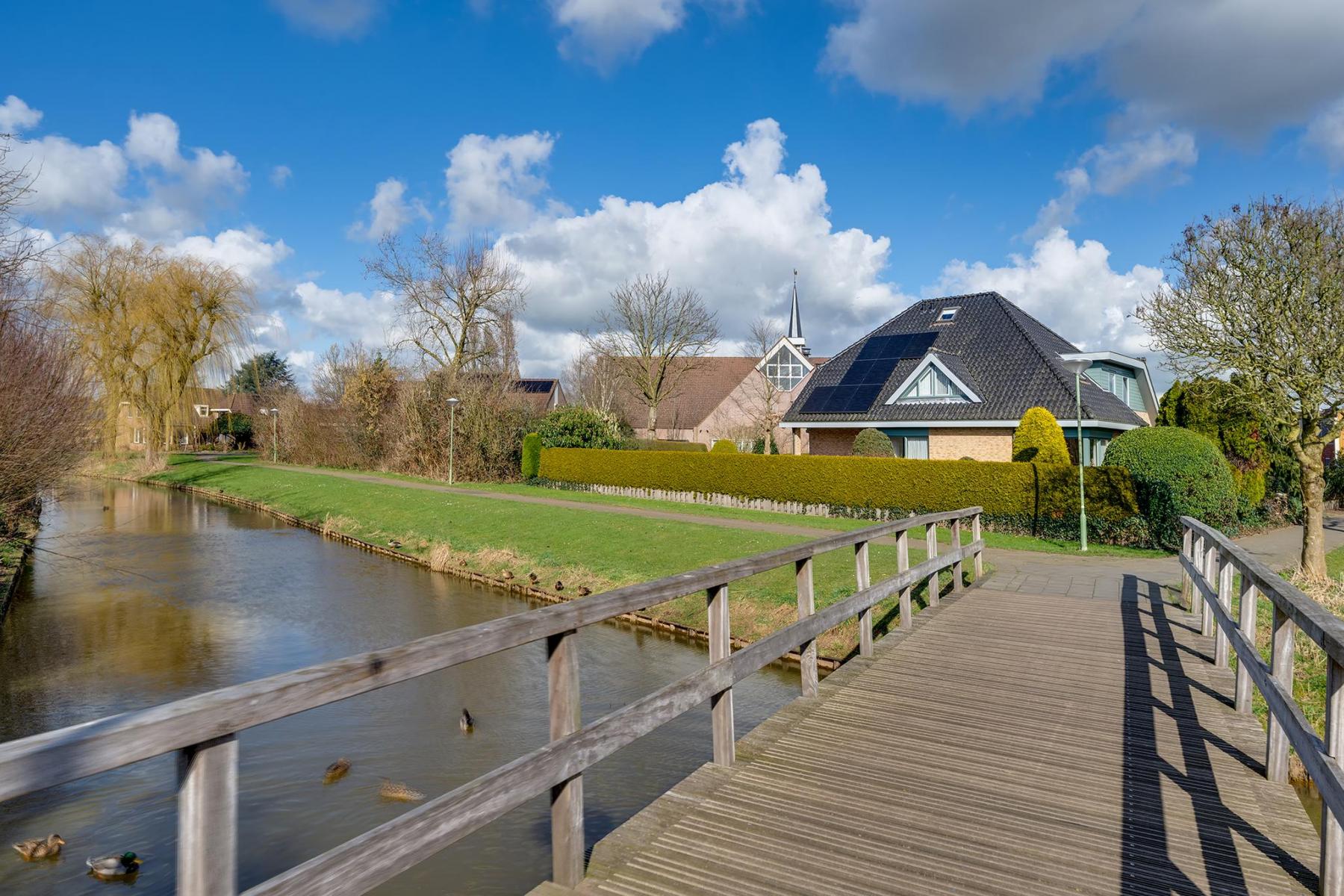 Deze vrijstaande villa is gelegen op een door water omgeven wooneiland. Deze kleinschalige villawijk heeft bovendien status; diversiteit en kwaliteit bepalen het beeld. Dit wooneiland is geheel omgeven door een singel, maar is met de auto toegankelijk. Daarnaast maakt een brug deze villawijk bereikbaar. Gezien het feit dat er zich op dit eiland slechts 8 wooneenheden bevinden, is er sprake van weinig verkeer. Dat betreft in ieder geval geen doorgaand verkeer. Het gebied bevindt zich in de nabijheid van diverse voorzieningen als scholen, cultureel centrum en supermarkten.