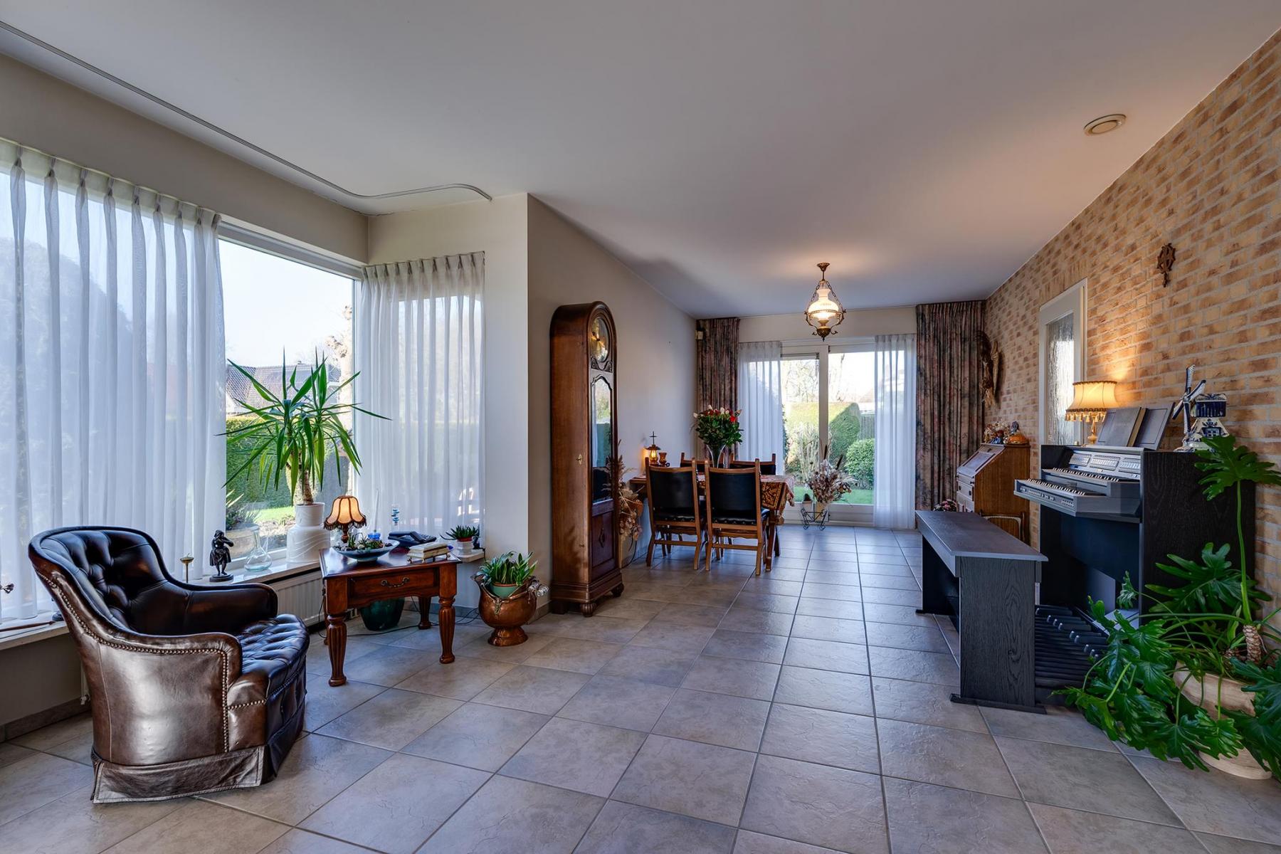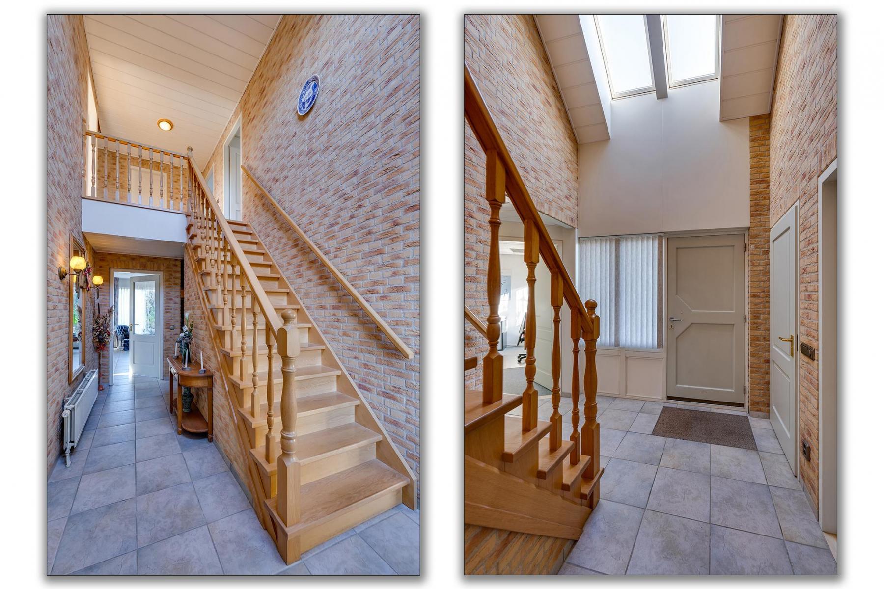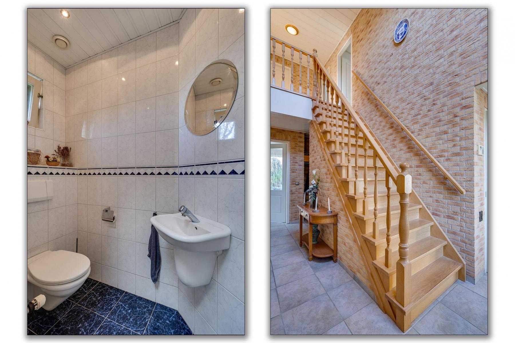 Via de entree komt u binnen in de centrale hal, in het hart van de woning. Hier bevinden zich het toilet, de trapopgang naar de verdieping en de garderobe. Vanuit de hal heeft u toegang tot de slaapkamers en de woonkamer. Door de vele raampartijen is de woonkamer een heerlijk lichte ruimte. Aan de achterzijde van de woonkamer is het eetgedeelte gesitueerd. Vanuit de eethoek heeft u een prachtig uitzicht over de tuin.