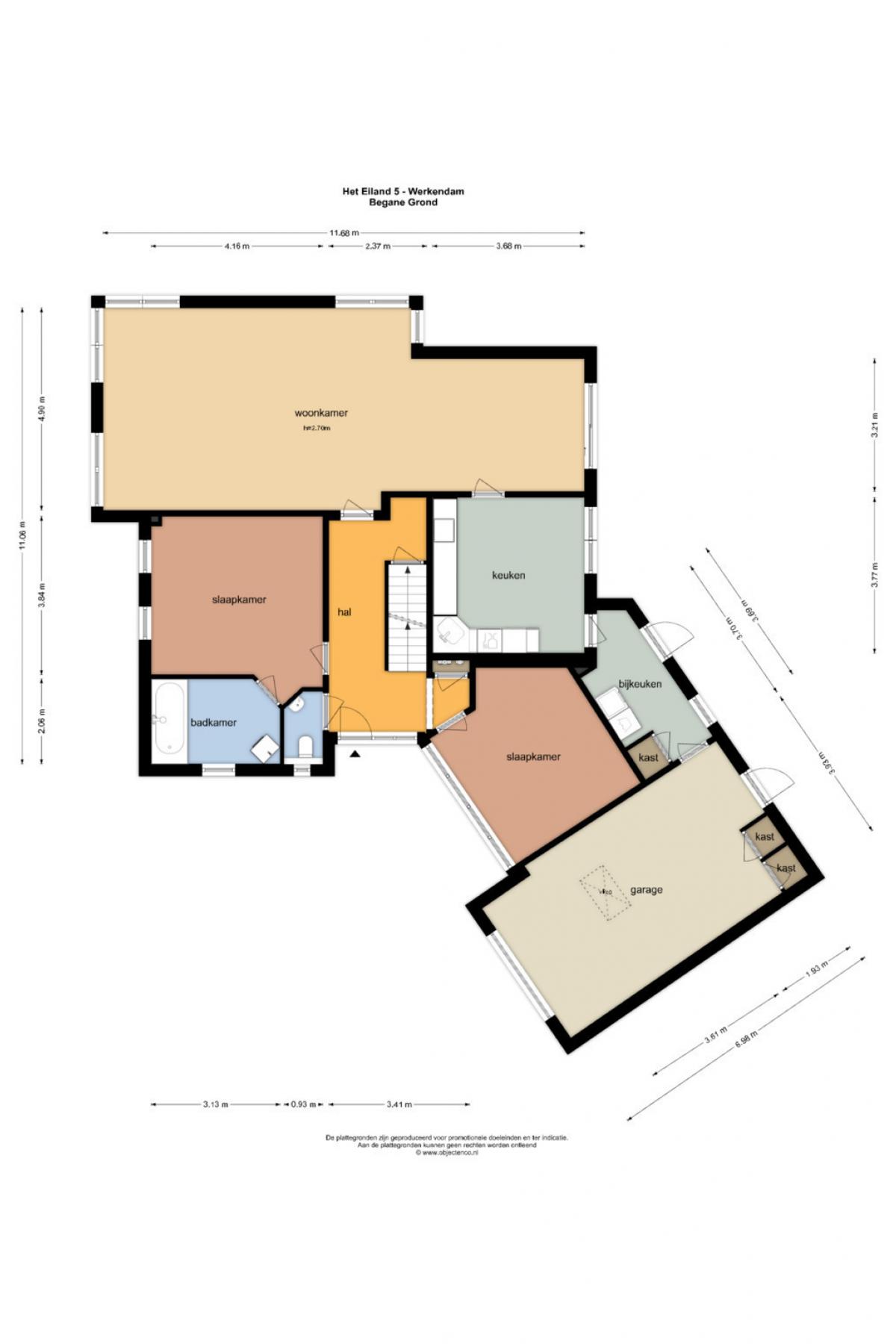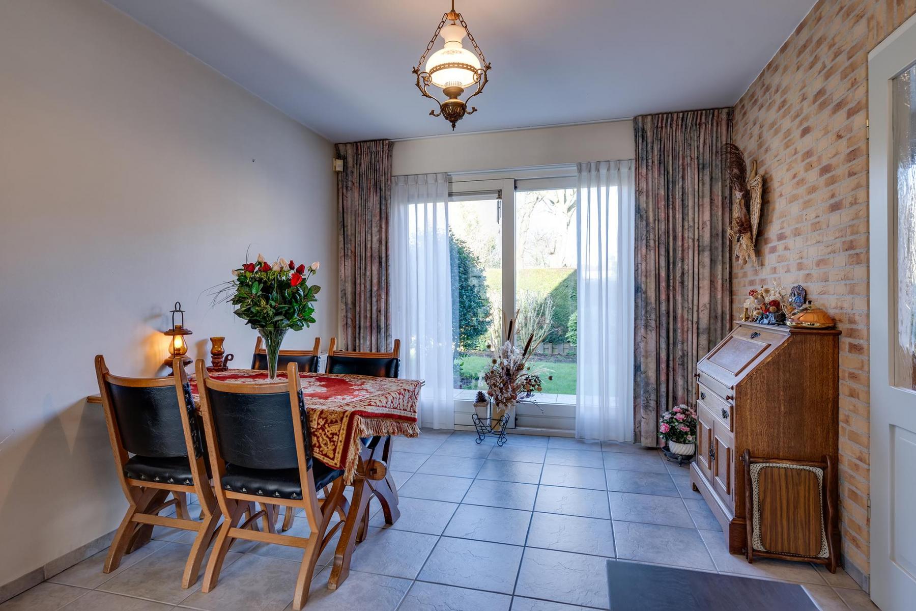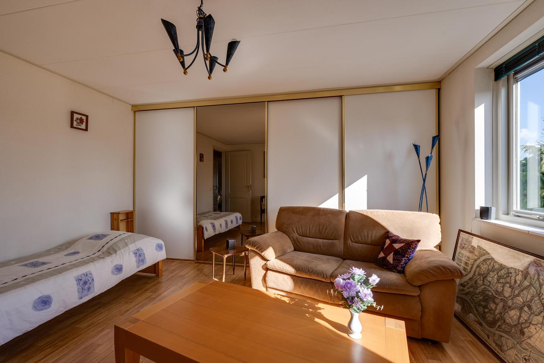 Via de entree komt u binnen in de centrale hal, in het hart van de woning. Hier bevinden zich het toilet, de trapopgang naar de verdieping en de garderobe. Vanuit de hal heeft u toegang tot de slaapkamers en de woonkamer. Door de vele raampartijen is de woonkamer een heerlijk lichte ruimte. Aan de achterzijde van de woonkamer is het eetgedeelte gesitueerd. Vanuit de eethoek heeft u een prachtig uitzicht over de tuin.