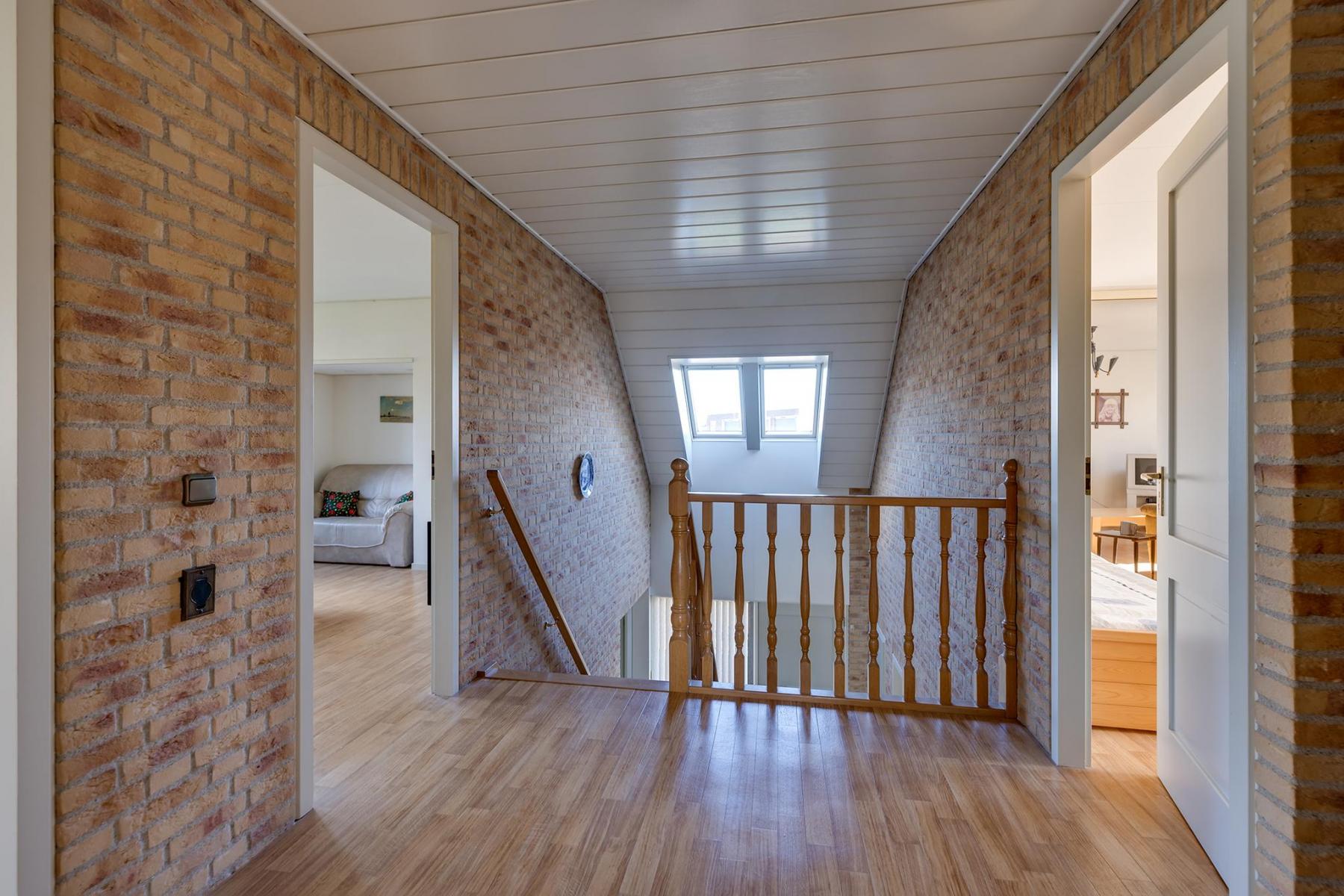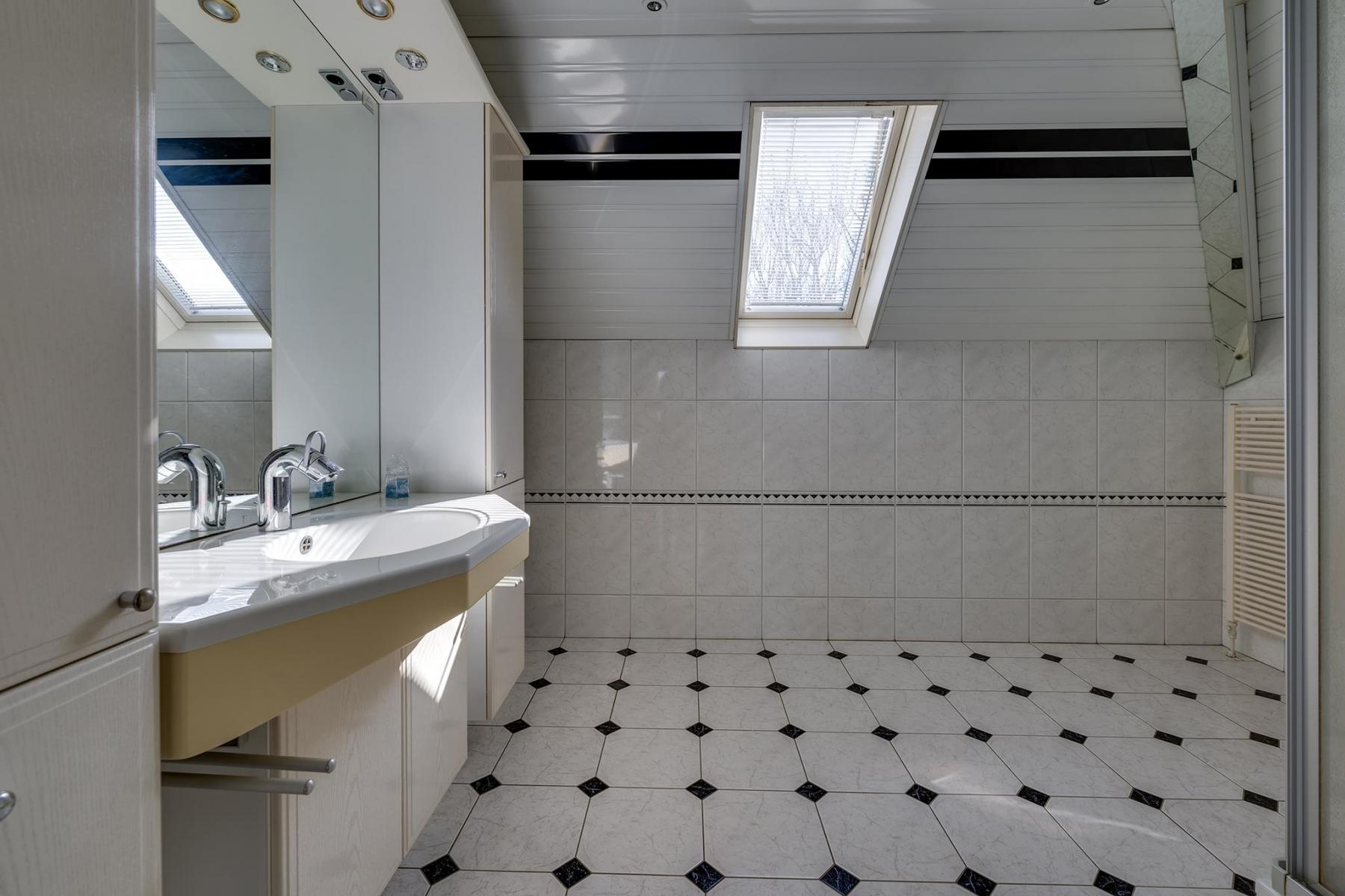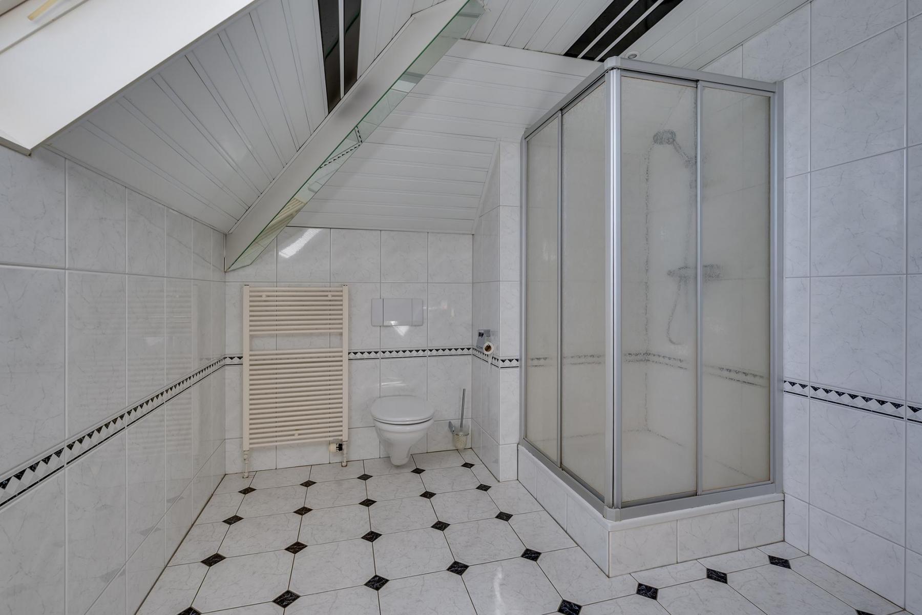 Op de verdieping treft u een ruime overloop / vide, 4 slaapkamers en de tweede badkamer. Twee slaapkamers zijn voorzien van een vaste schuifkastenwand. Een andere slaapkamer geef toegang tot het ruime dakterras. Vanaf het dakterras heeft u een leuk uitzicht over de tuin en over de nabijgelegen woningen. De badkamer is voorzien van een wastafelmeubel, douche, toilet en handdoekradiator. Verder is er op deze verdieping veel bergruimte aanwezig.