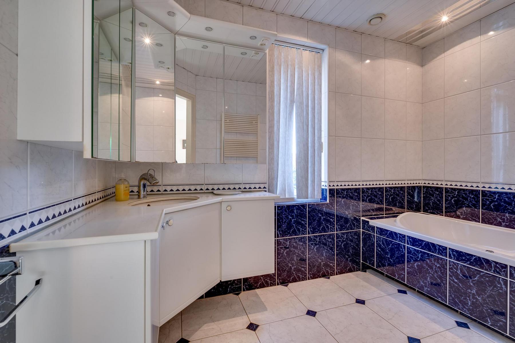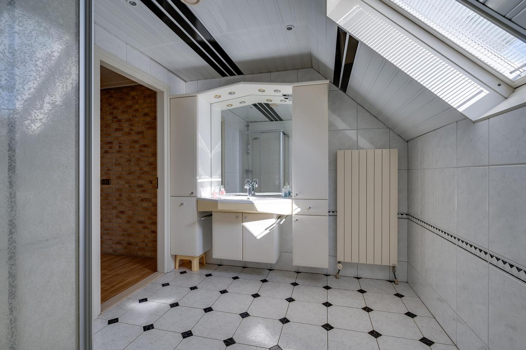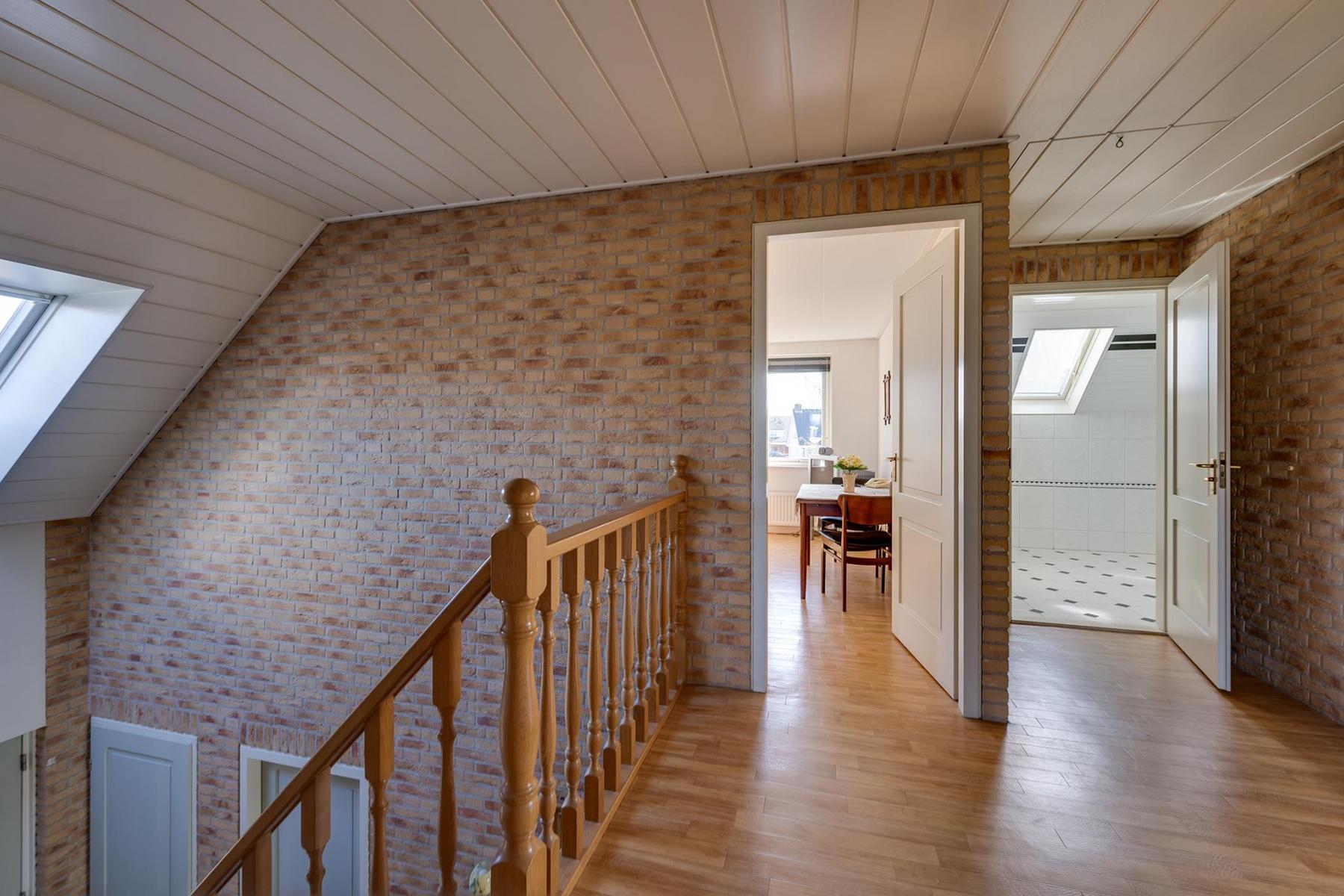Op de verdieping treft u een ruime overloop / vide, 4 slaapkamers en de tweede badkamer. Twee slaapkamers zijn voorzien van een vaste schuifkastenwand. Een andere slaapkamer geef toegang tot het ruime dakterras. Vanaf het dakterras heeft u een leuk uitzicht over de tuin en over de nabijgelegen woningen. De badkamer is voorzien van een wastafelmeubel, douche, toilet en handdoekradiator. Verder is er op deze verdieping veel bergruimte aanwezig.