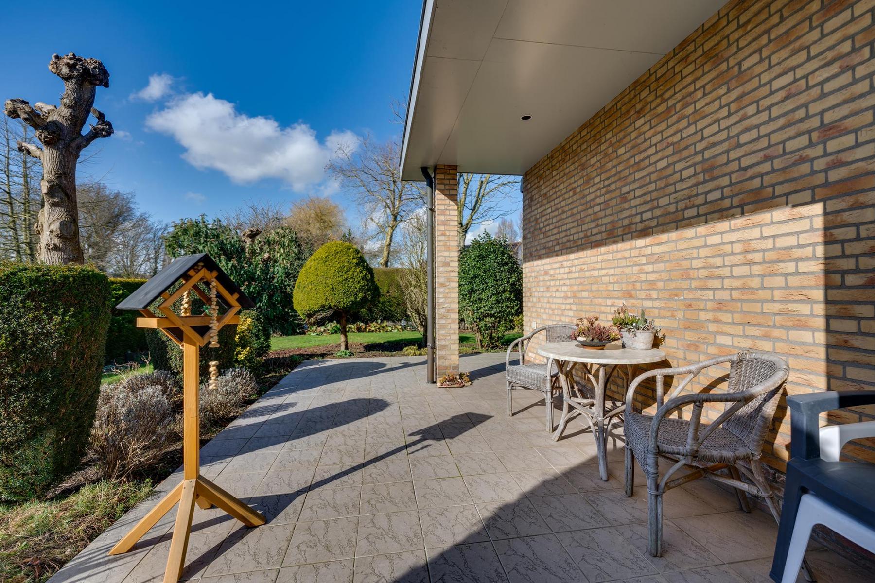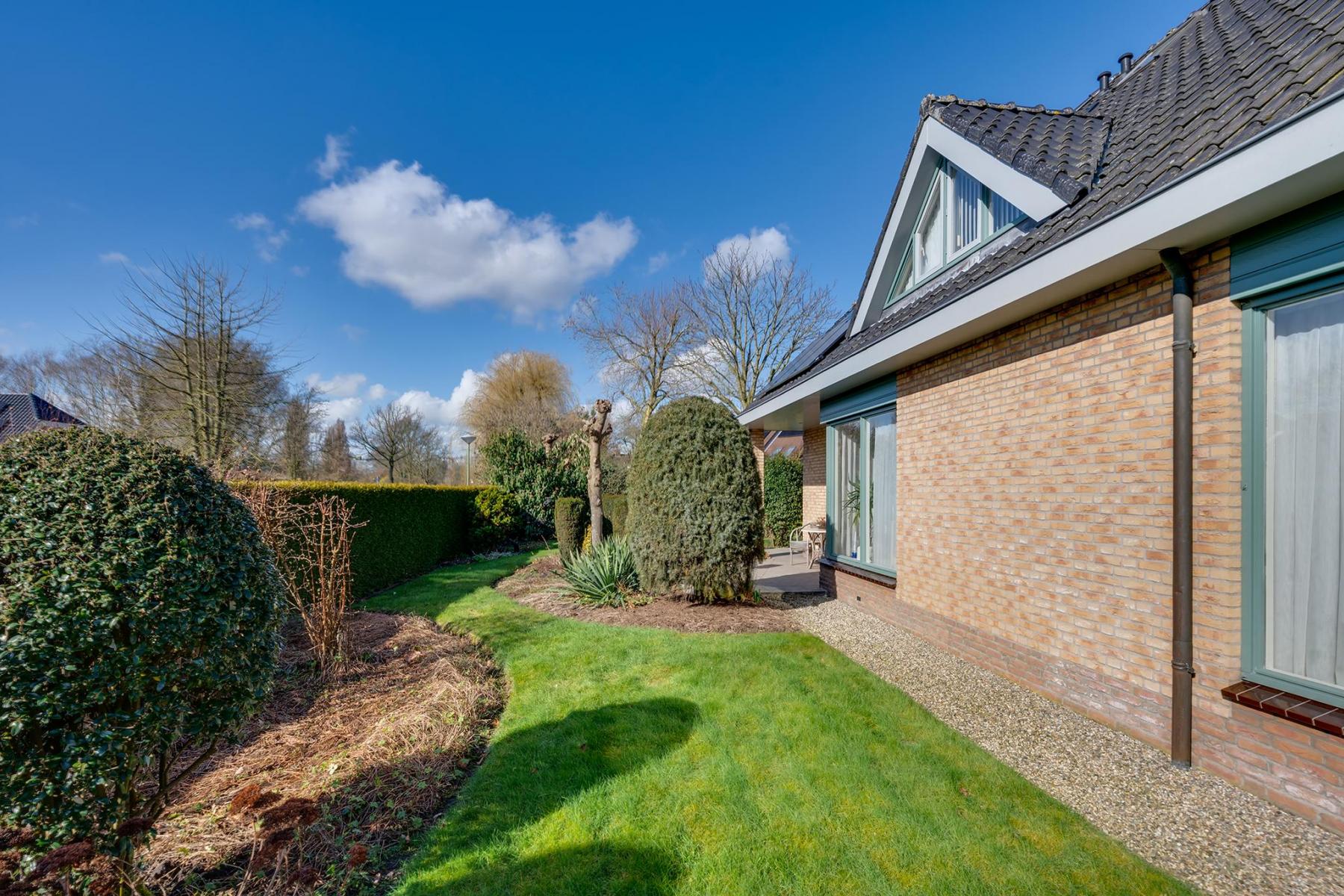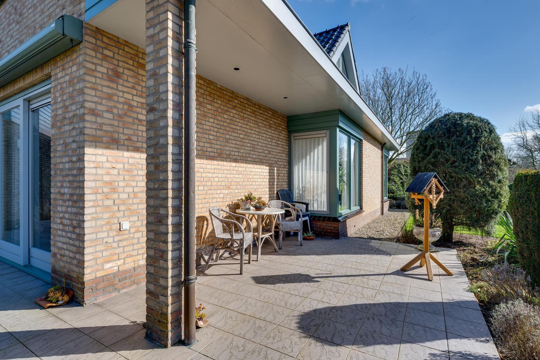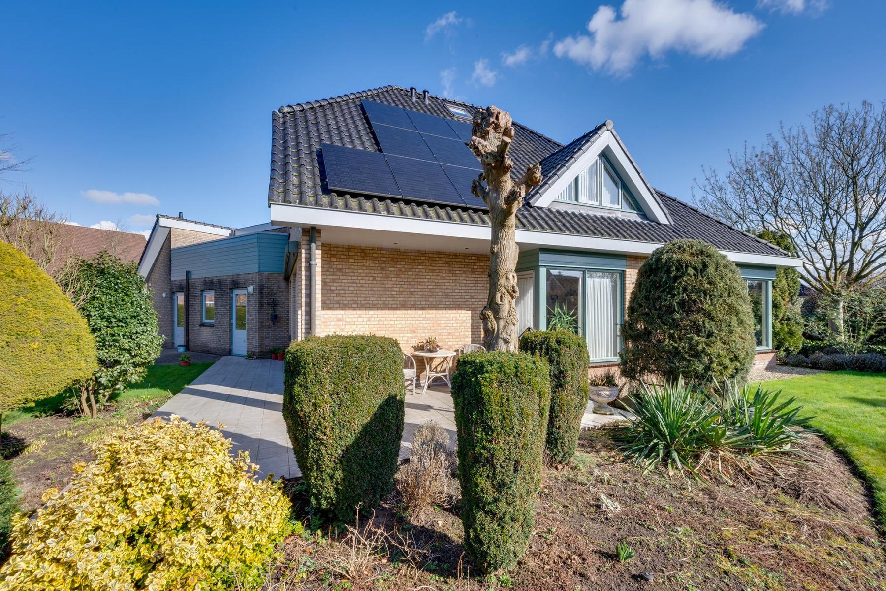 De tuin is keurig aangelegd en beschikt over meerdere terrassen. Aan de achterzijde van de woning is een breed zonnescherm aangebracht, zodat u lekker in de schaduw kunt zitten. Maar u kunt er ook voor kiezen om aan de zijkant van de woning onder het afdak te zitten. Kortom: er is voldoende keuze! De tuin zelf is mooi en gevarieerd aangelegd, met gazon, groenstroken en diverse planten en struiken.