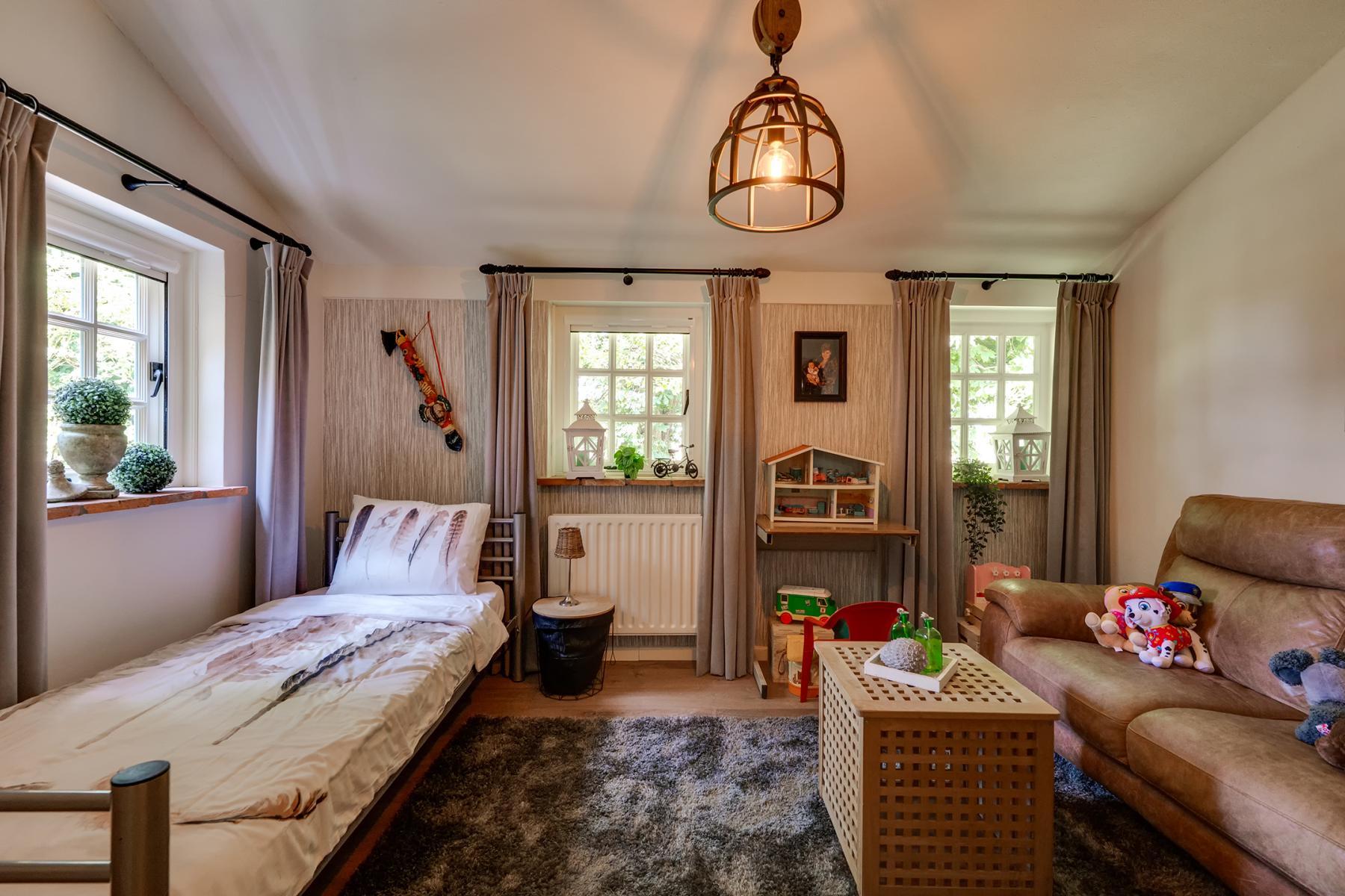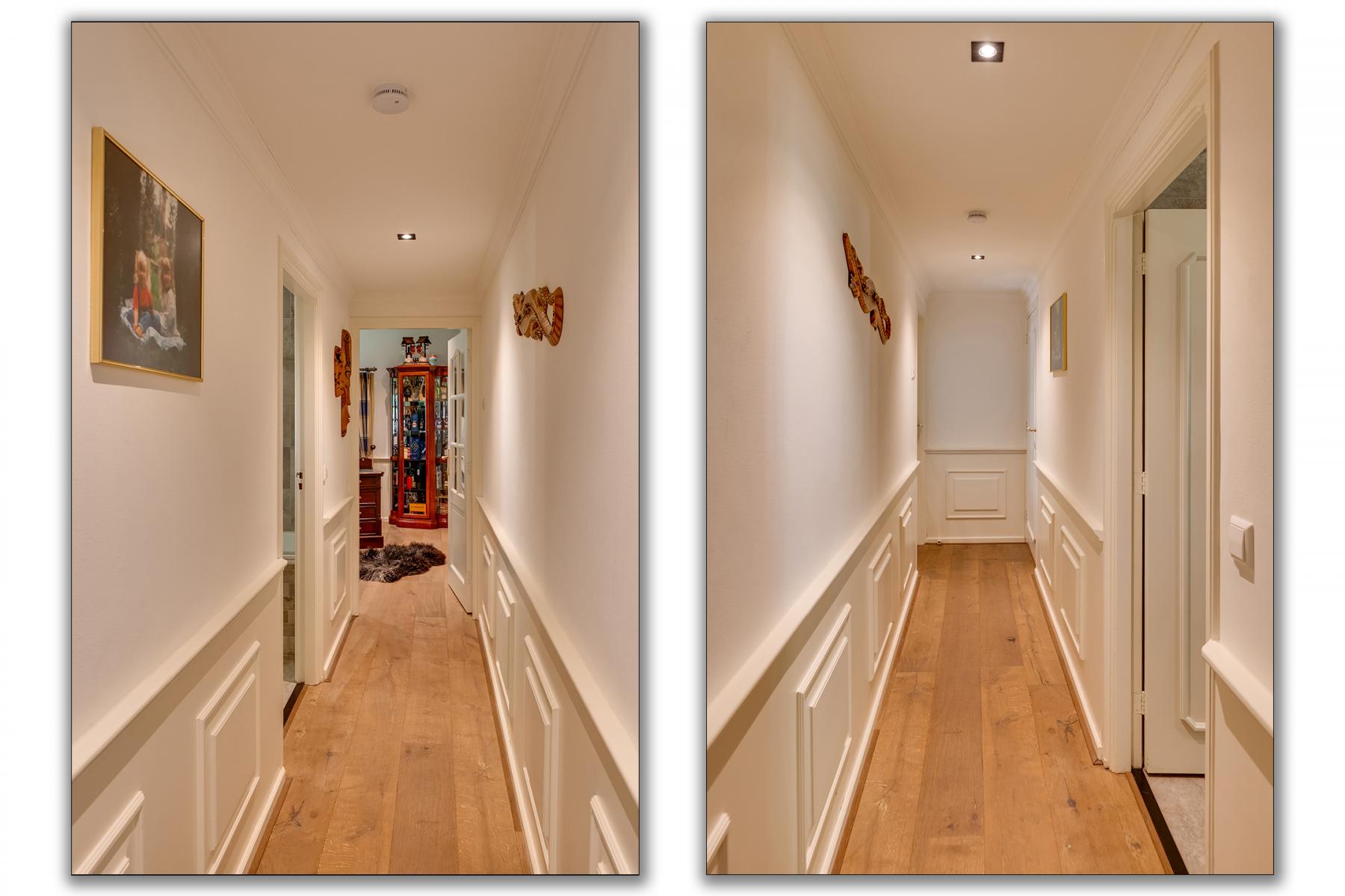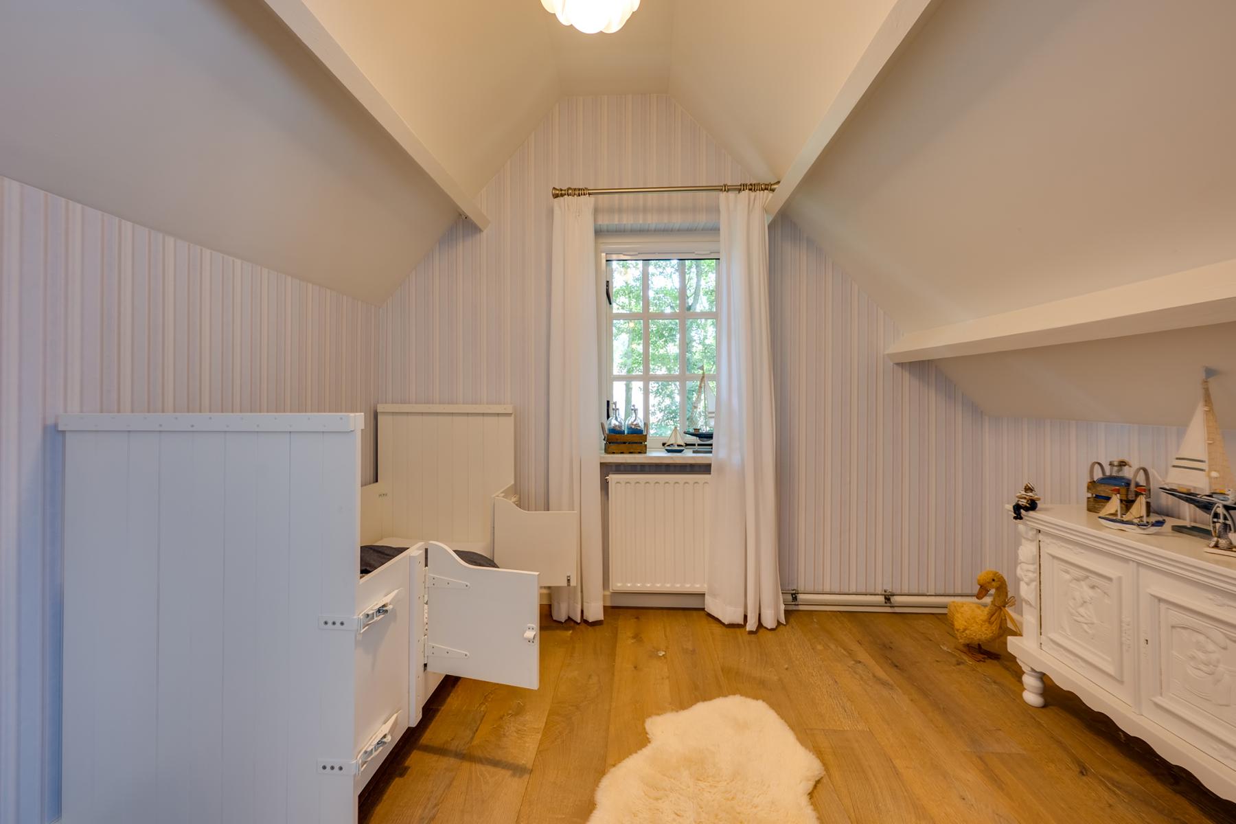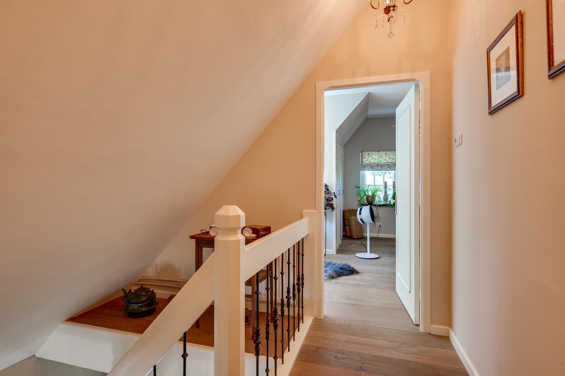 Via de andere trap bereik je een tweede overloop met toegang tot twee extra slaapkamers en een opbergkast.