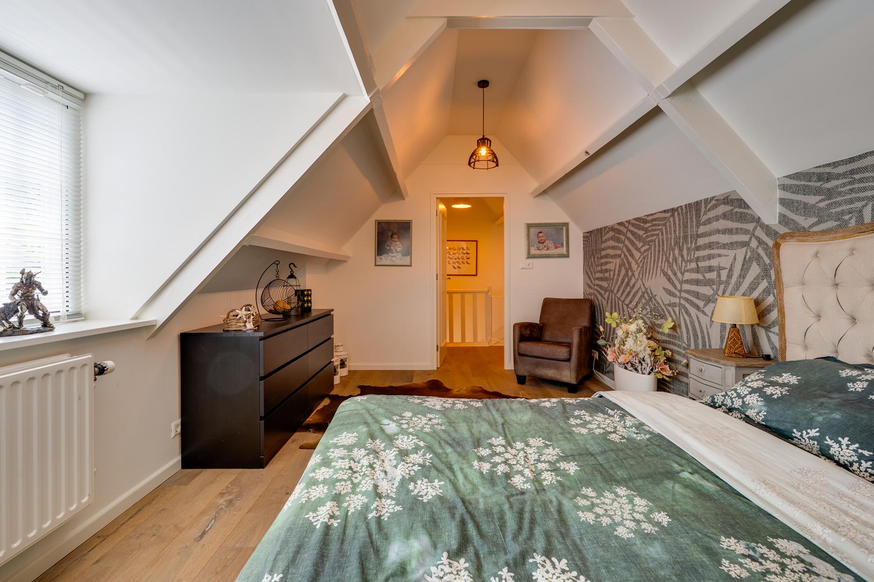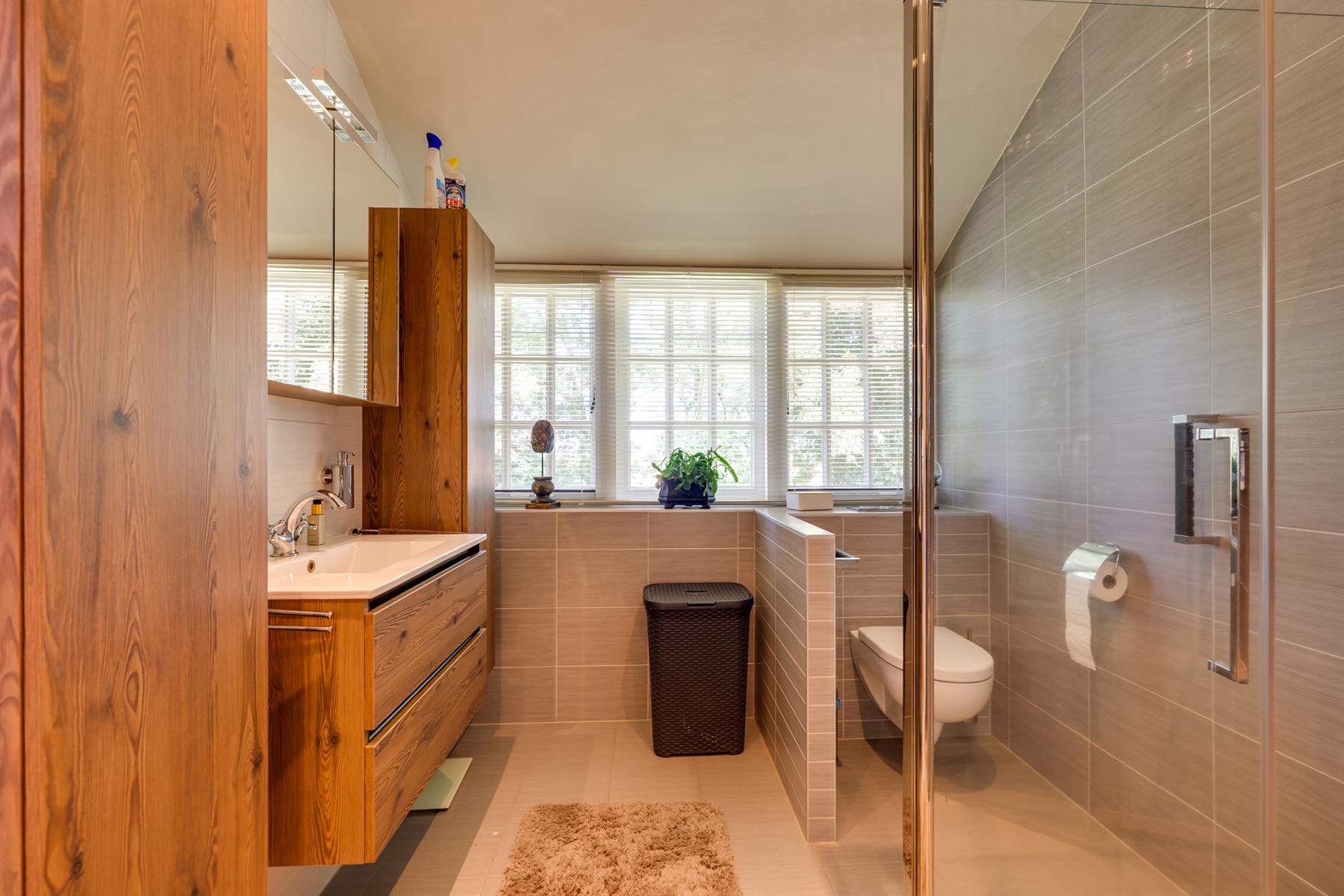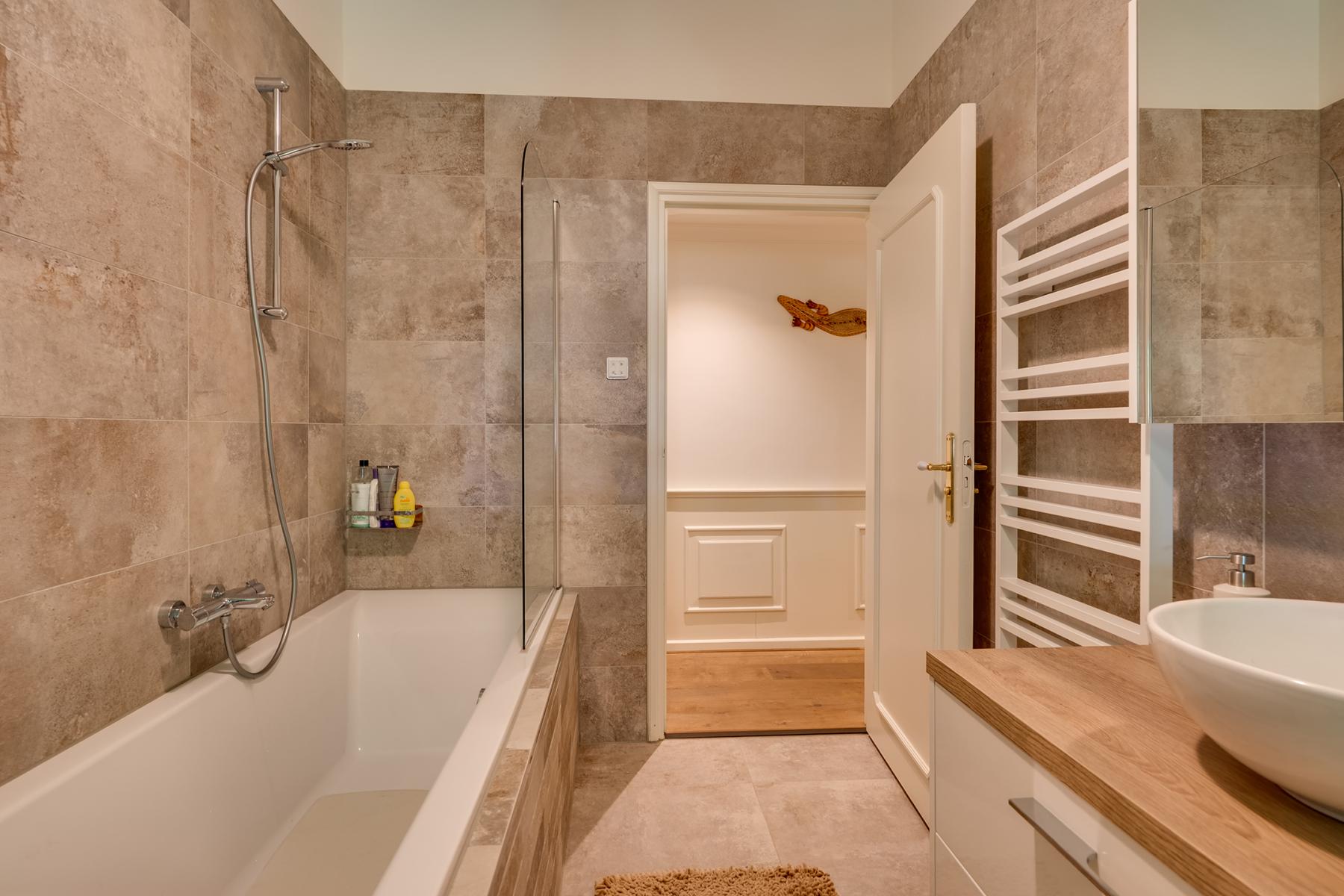 Op de begane grond vind je verder een ruime werkkamer, een slaapkamer en een badkamer. De badkamer is uitgerust met een ligbad, wastafelmeubel en wasmachine-aansluiting.