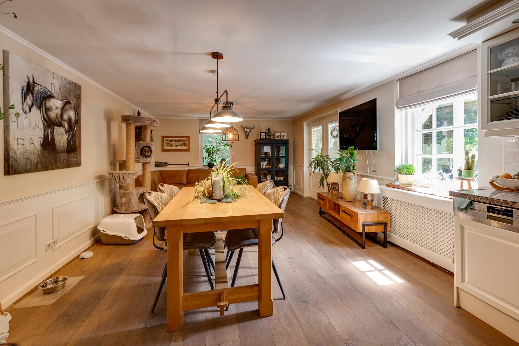 Bij binnenkomst valt direct op hoeveel ruimte dit huis te bieden heeft. Er zijn twee sfeervolle woonkamers, elk met een eigen keuken.