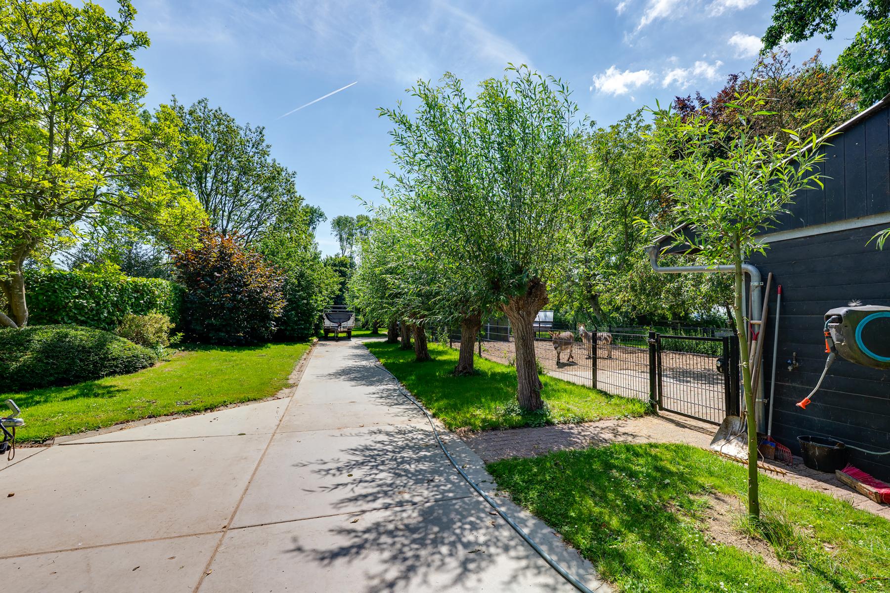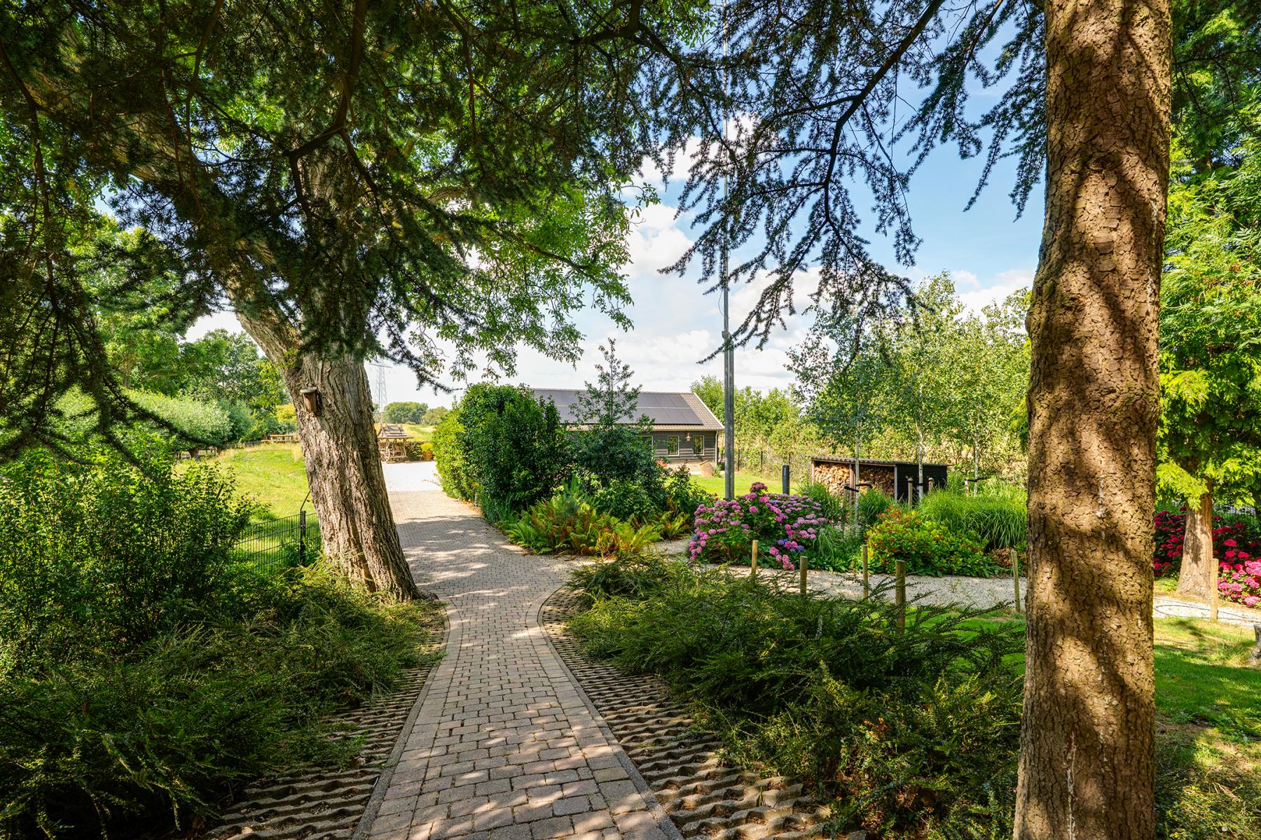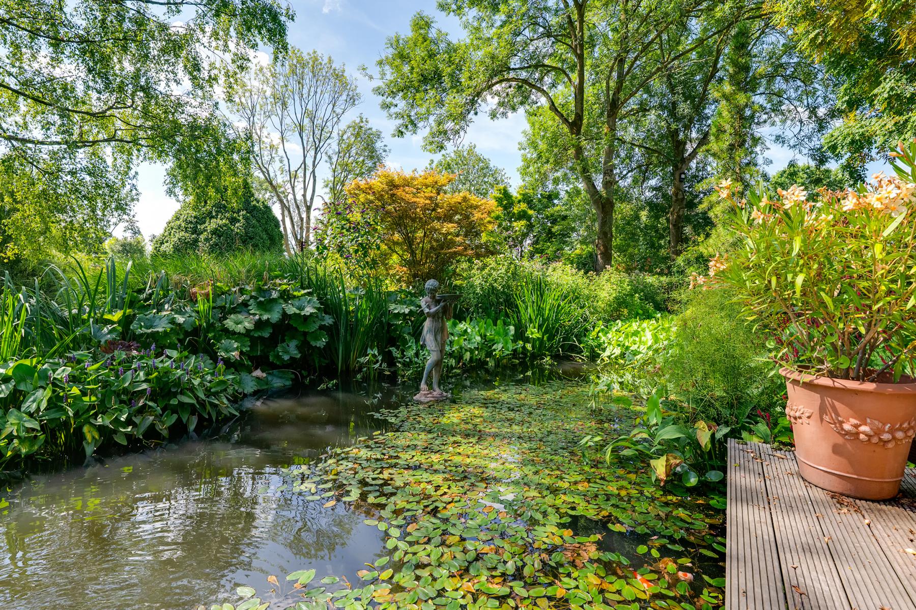 In het hart van de tuin ligt een sfeervolle vijver met romantische wandelpaadjes eromheen. Daarnaast vind je er een kas, een groot vogelverblijf, konijnenren én een paar gezellige ezeltjes en geiten met hun eigen onderkomen. Als zij straks verhuist zijn blijft er nóg meer ruimte over in de tuin om van te genieten