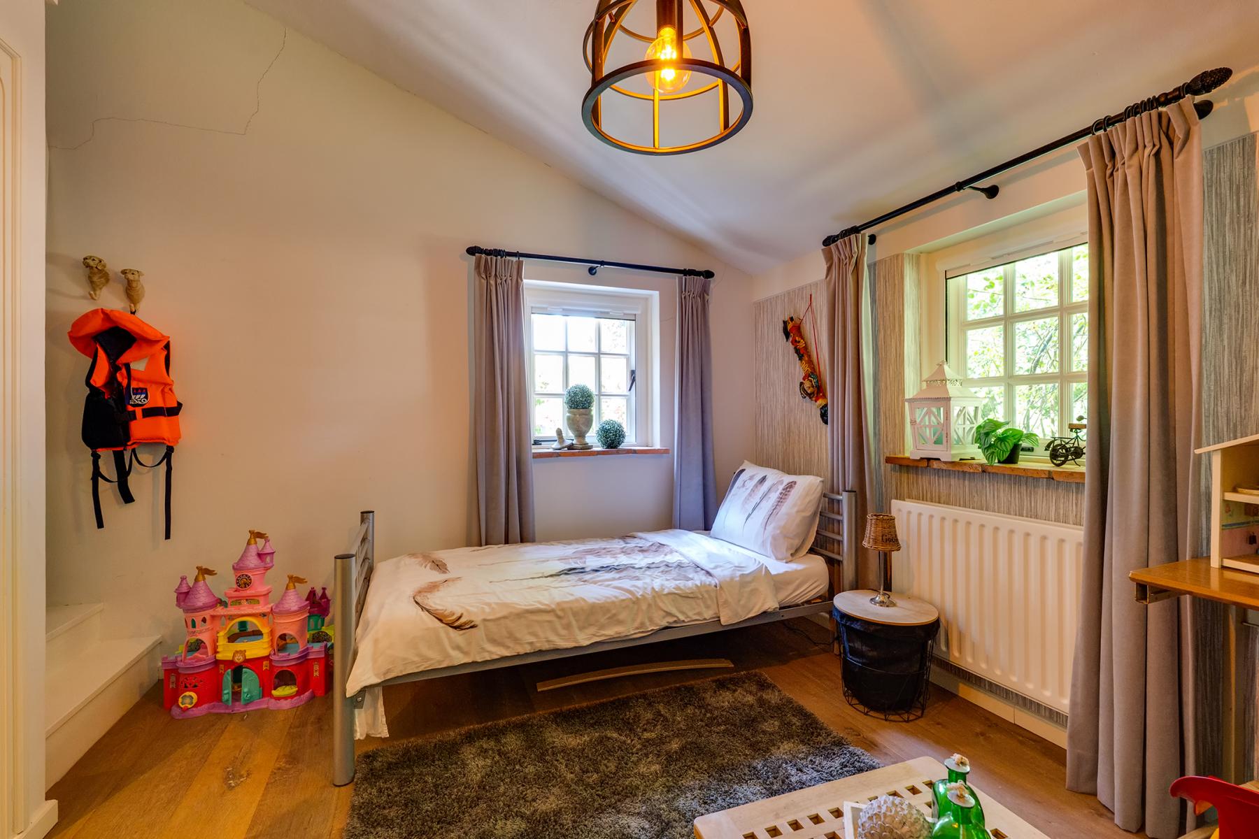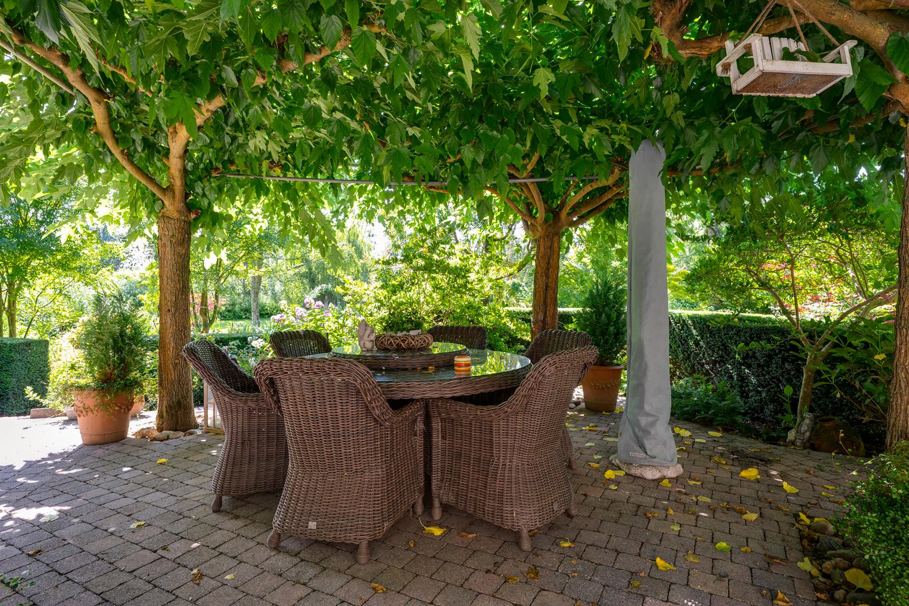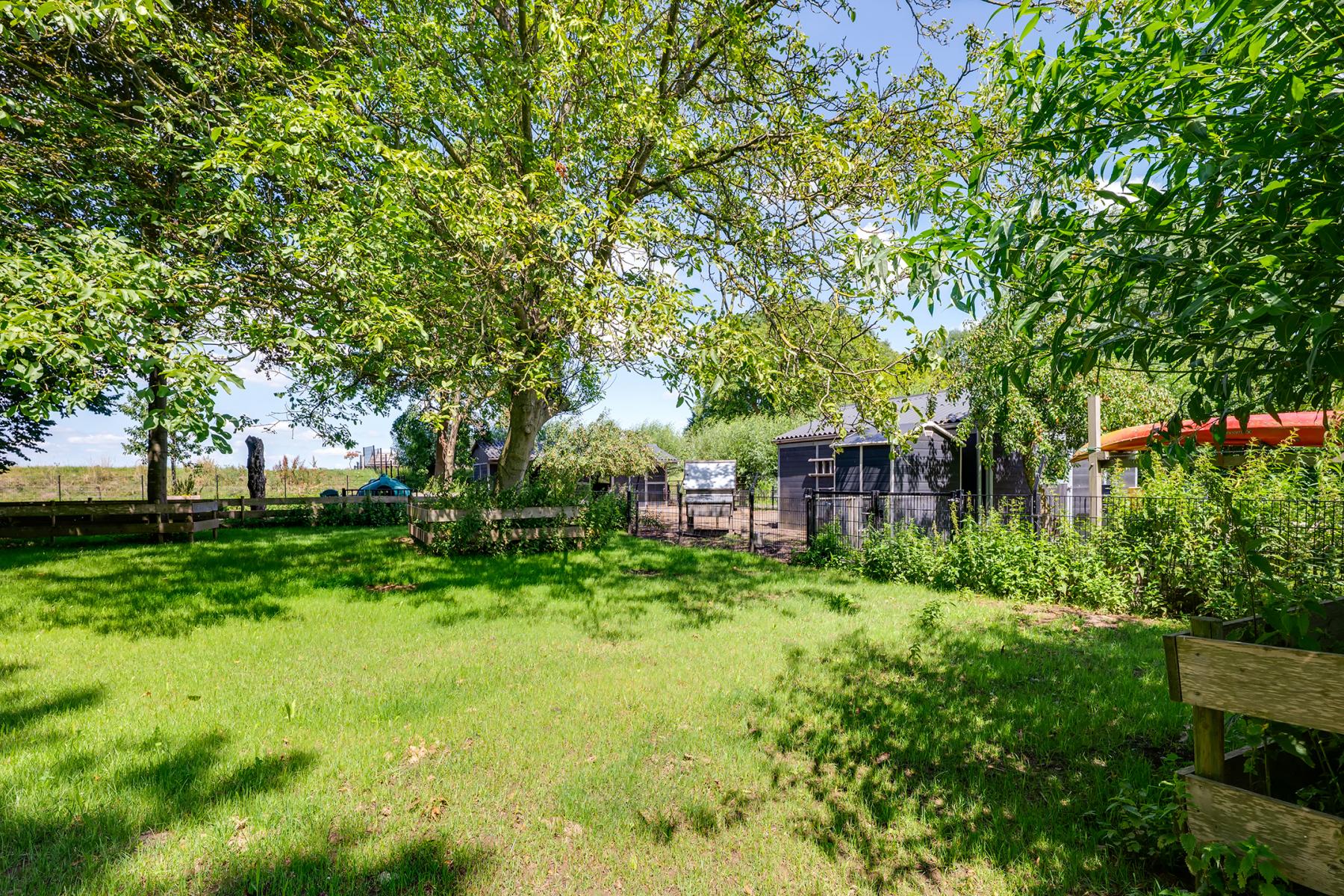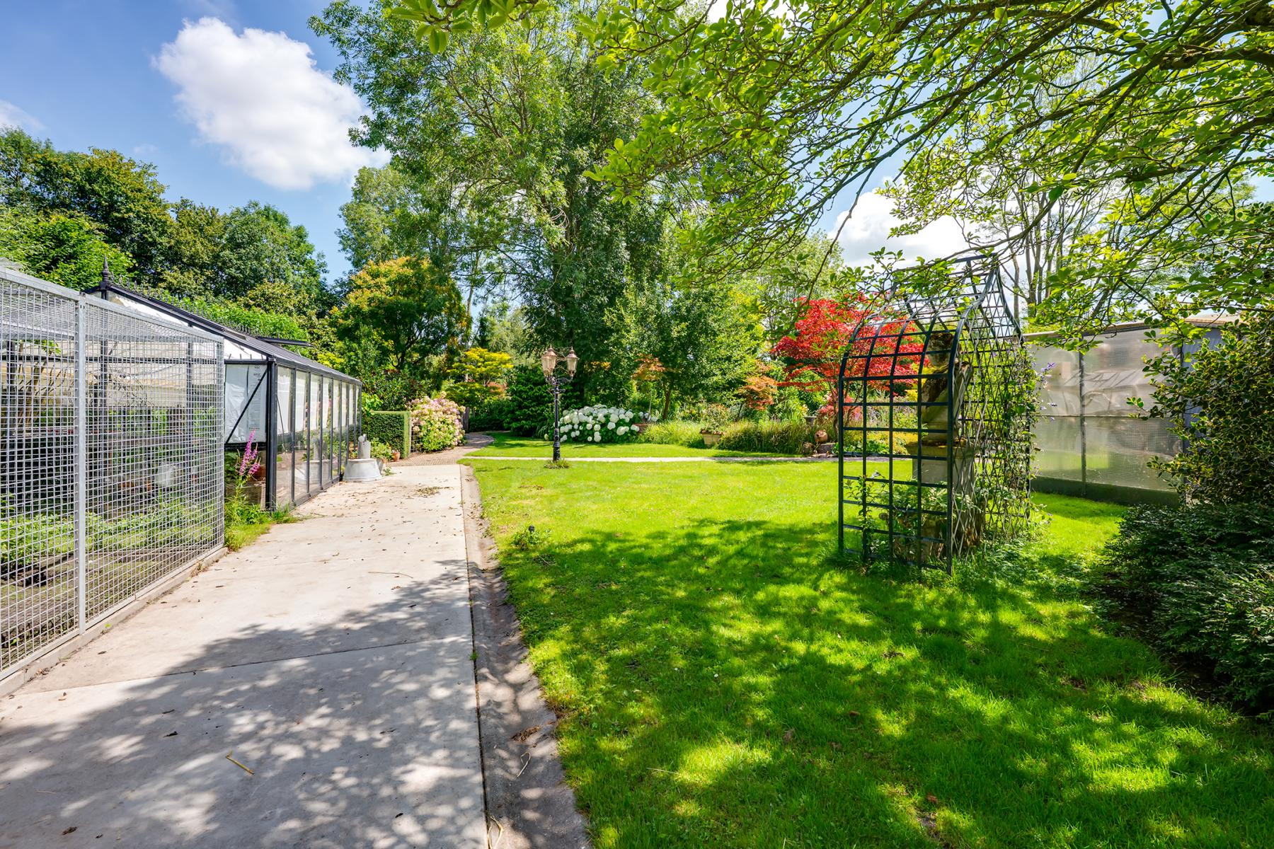 In het hart van de tuin ligt een sfeervolle vijver met romantische wandelpaadjes eromheen. Daarnaast vind je er een kas, een groot vogelverblijf, konijnenren én een paar gezellige ezeltjes en geiten met hun eigen onderkomen. Als zij straks verhuist zijn blijft er nóg meer ruimte over in de tuin om van te genieten