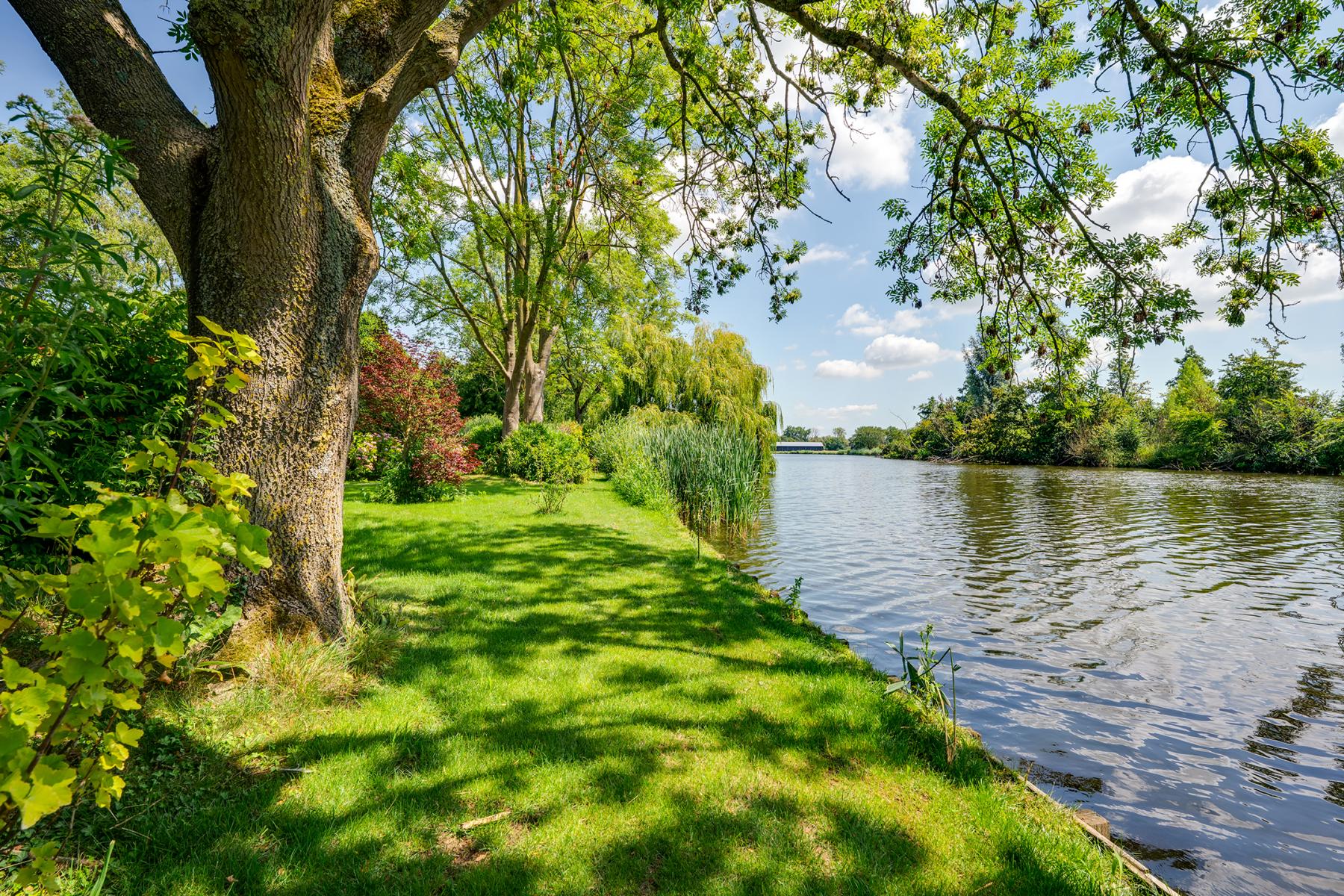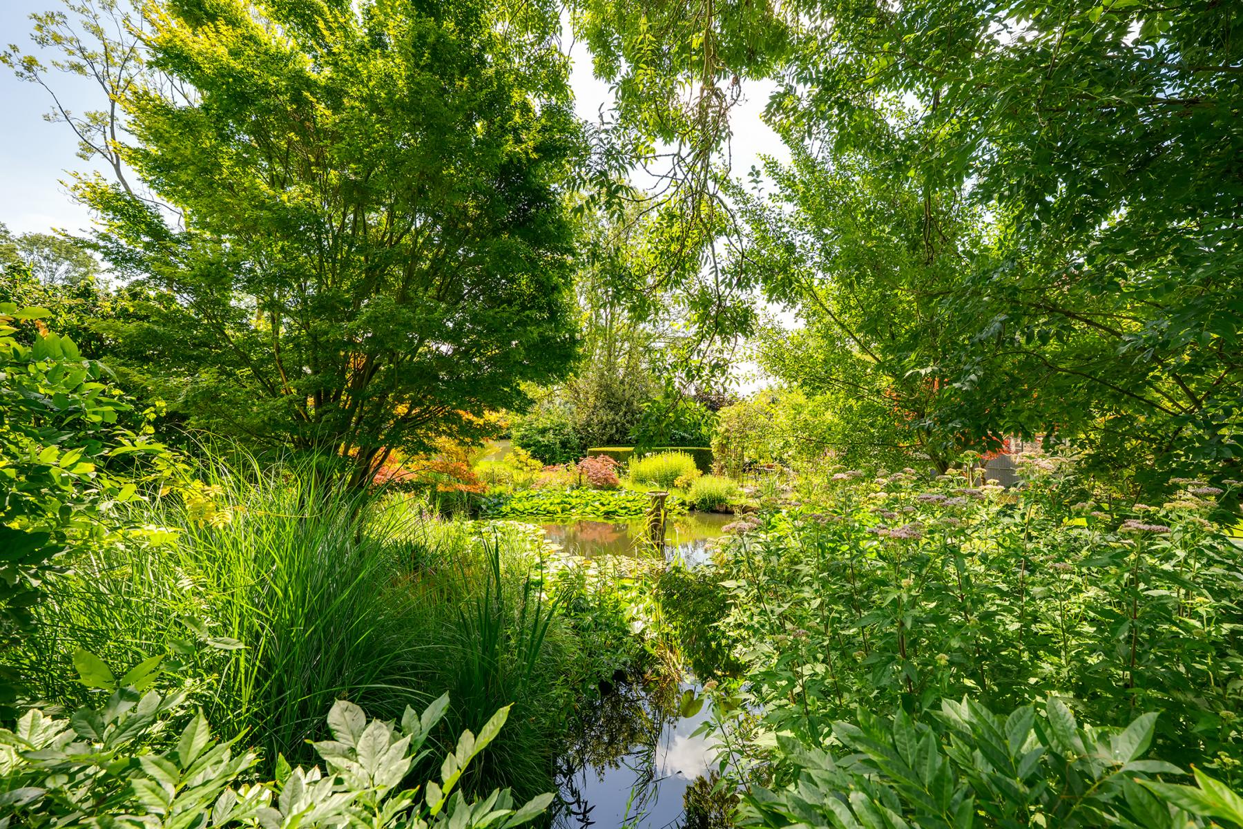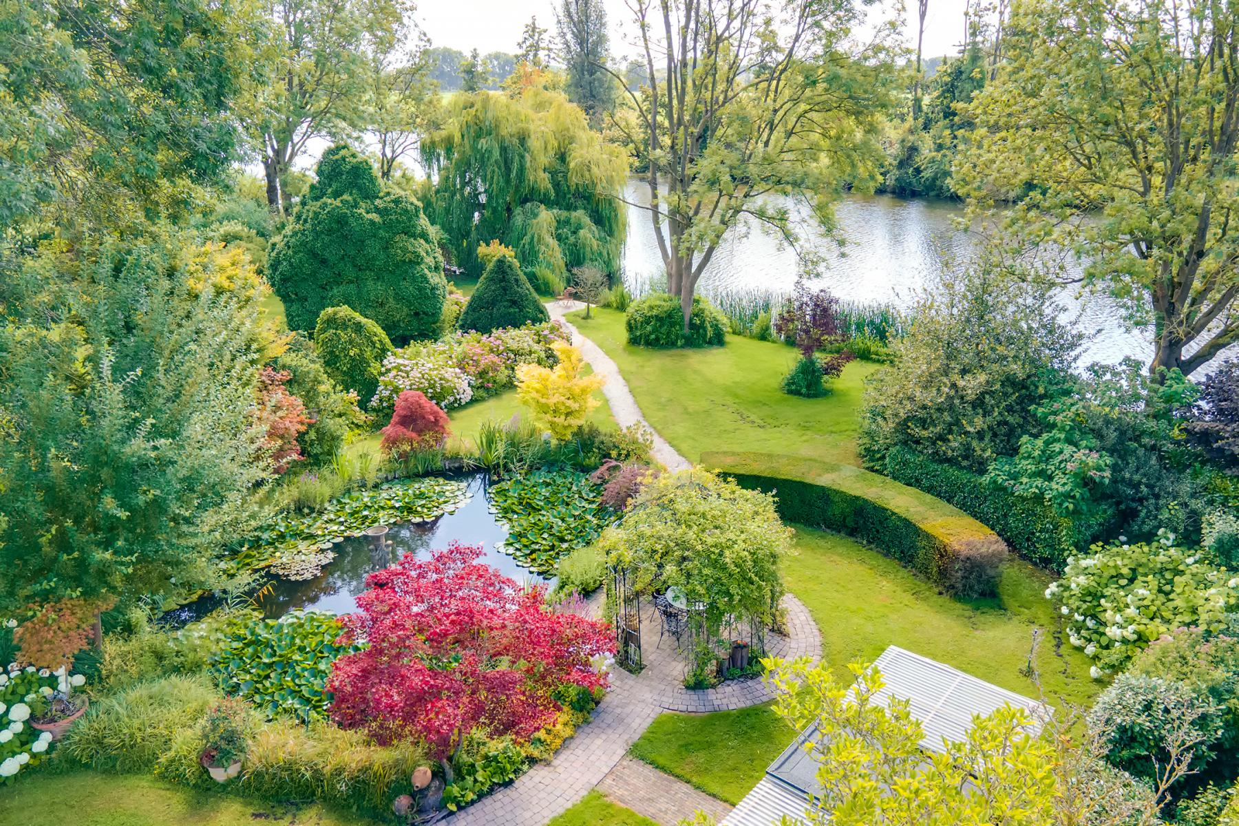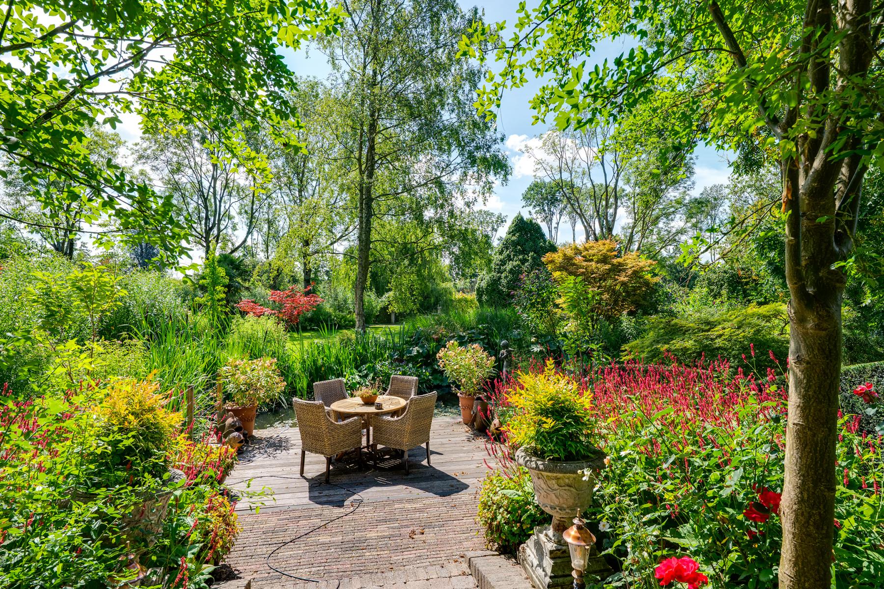 De tuin rondom het huis is werkelijk een oase van rust. Goed onderhouden, speels aangelegd en vol verrassende plekjes om te zitten, spelen of wandelen. Er zijn terrassen bij het huis, maar ook zitjes aan het water en meerdere steigers – perfect voor zonnige dagen.