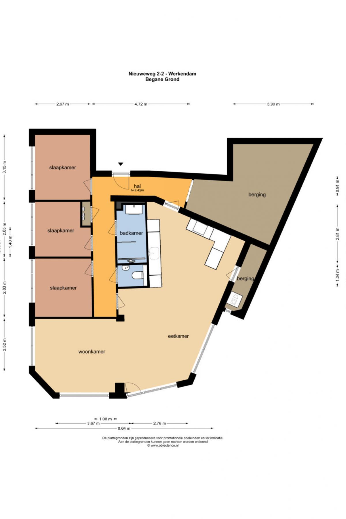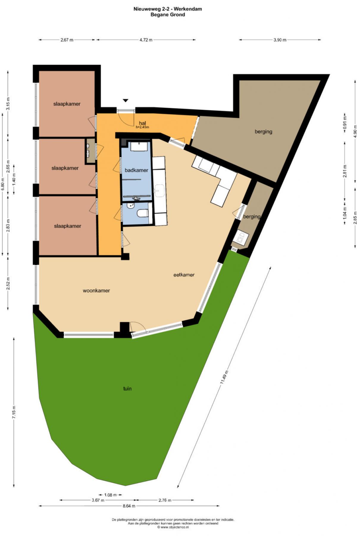 Je komt binnen in een royale hal die toegang geeft tot alle vertrekken. Aan de rechterkant vind je een handige berging voor de fietsen en extra spullen. Links loop je door de gang naar drie fijne slaapkamers, een nette badkamer met douche, wastafelmeubel en een handdoekradiator, een apart toilet en de woonkamer.