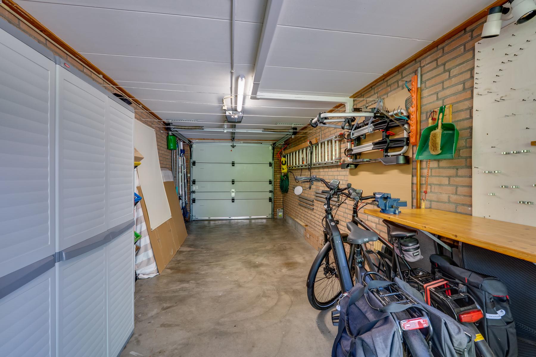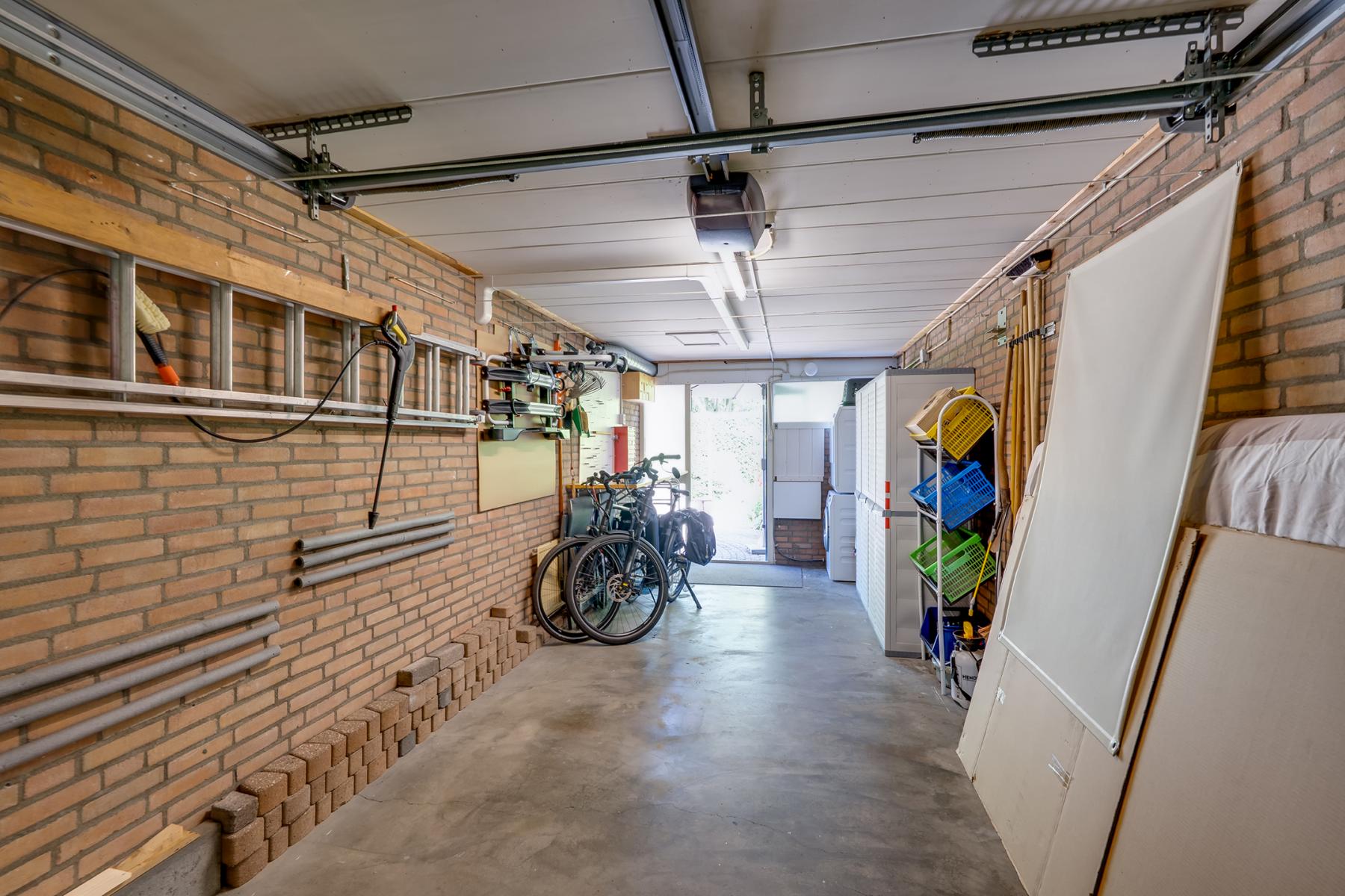 De aangebouwde garage is zeer ruim. Naast plaats voor je auto is er voldoende ruimte over als berging, klusplek en fietsenstalling. Er is tevens een wasmachine aansluiting aanwezig.