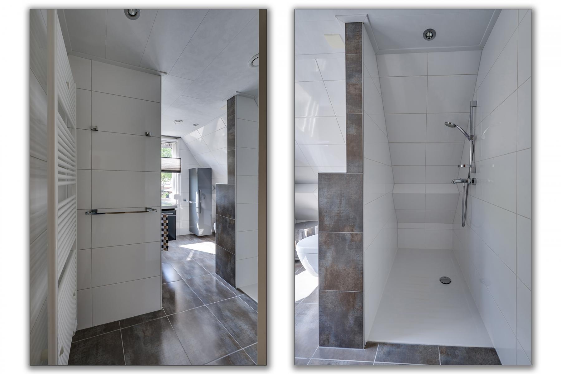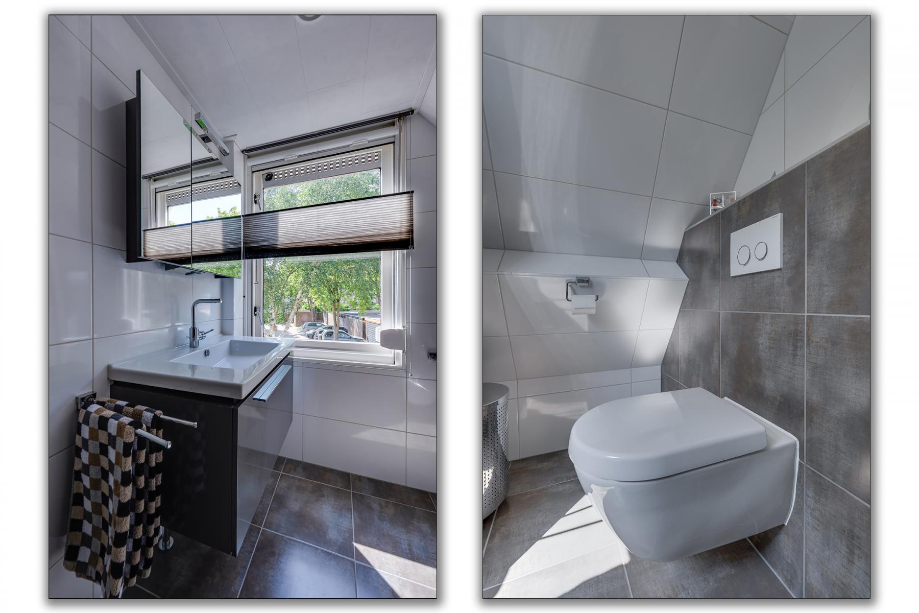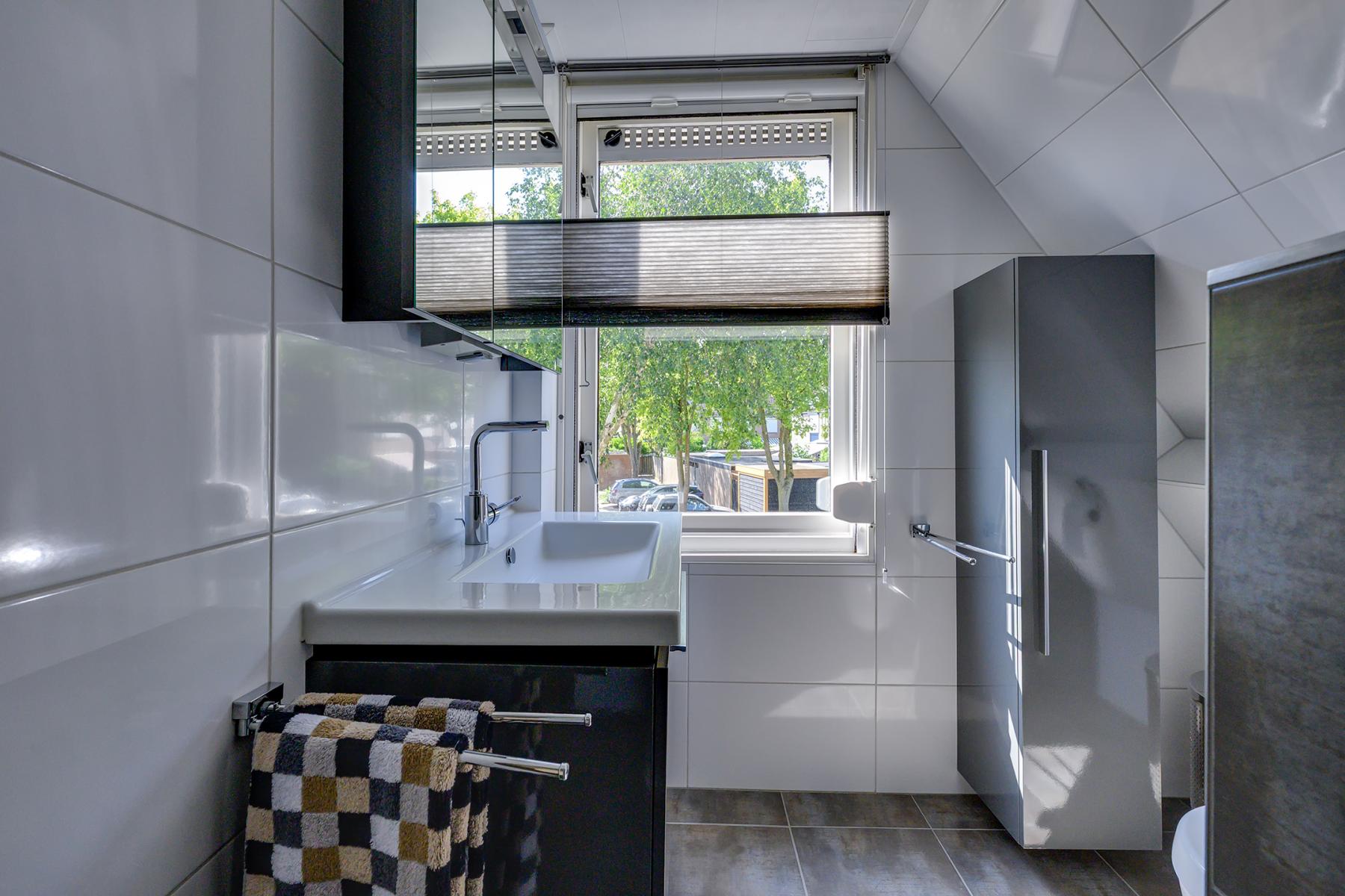Op de eerste verdieping bevinden zich drie slaapkamers en een keurige, moderne badkamer met douche, toilet, handdoekradiator, wastafelmeubel en hoge badkamerkast. De badkamer is voorzien van mechanische ventilatie.