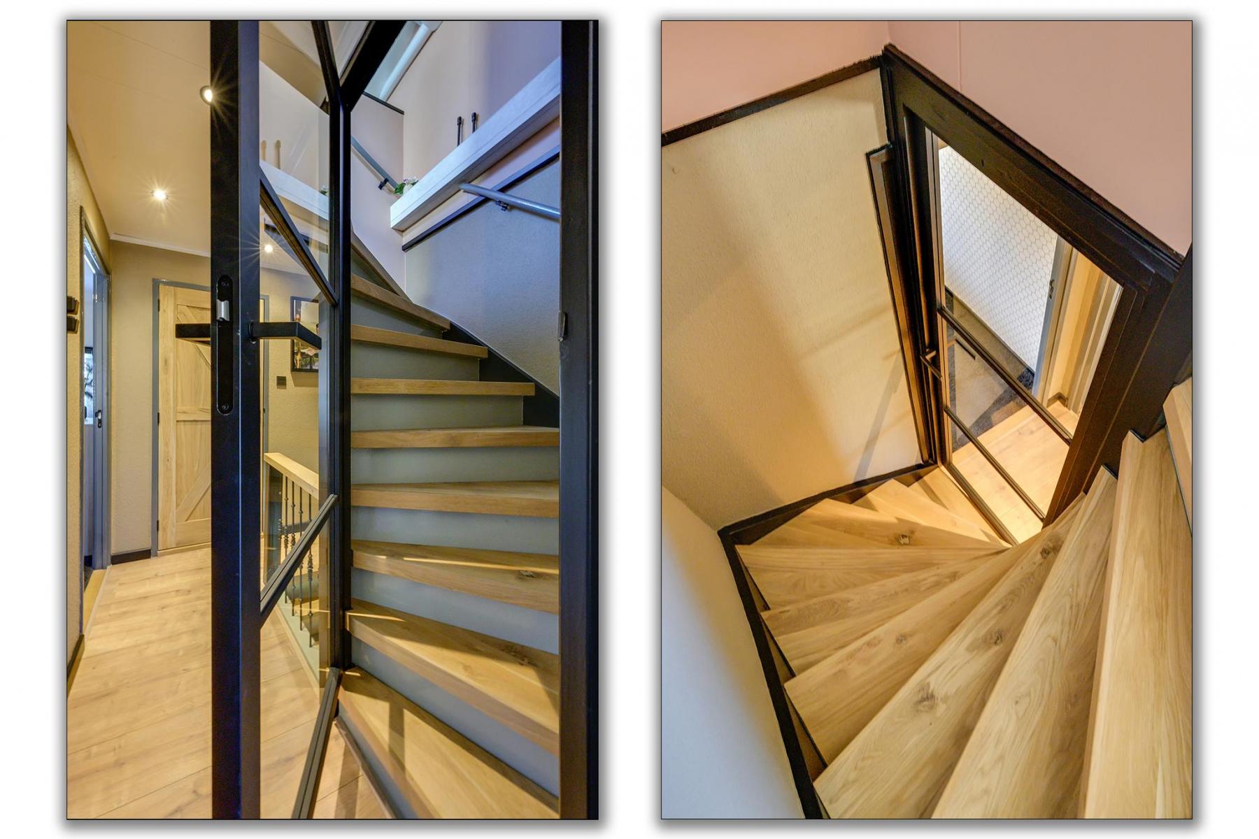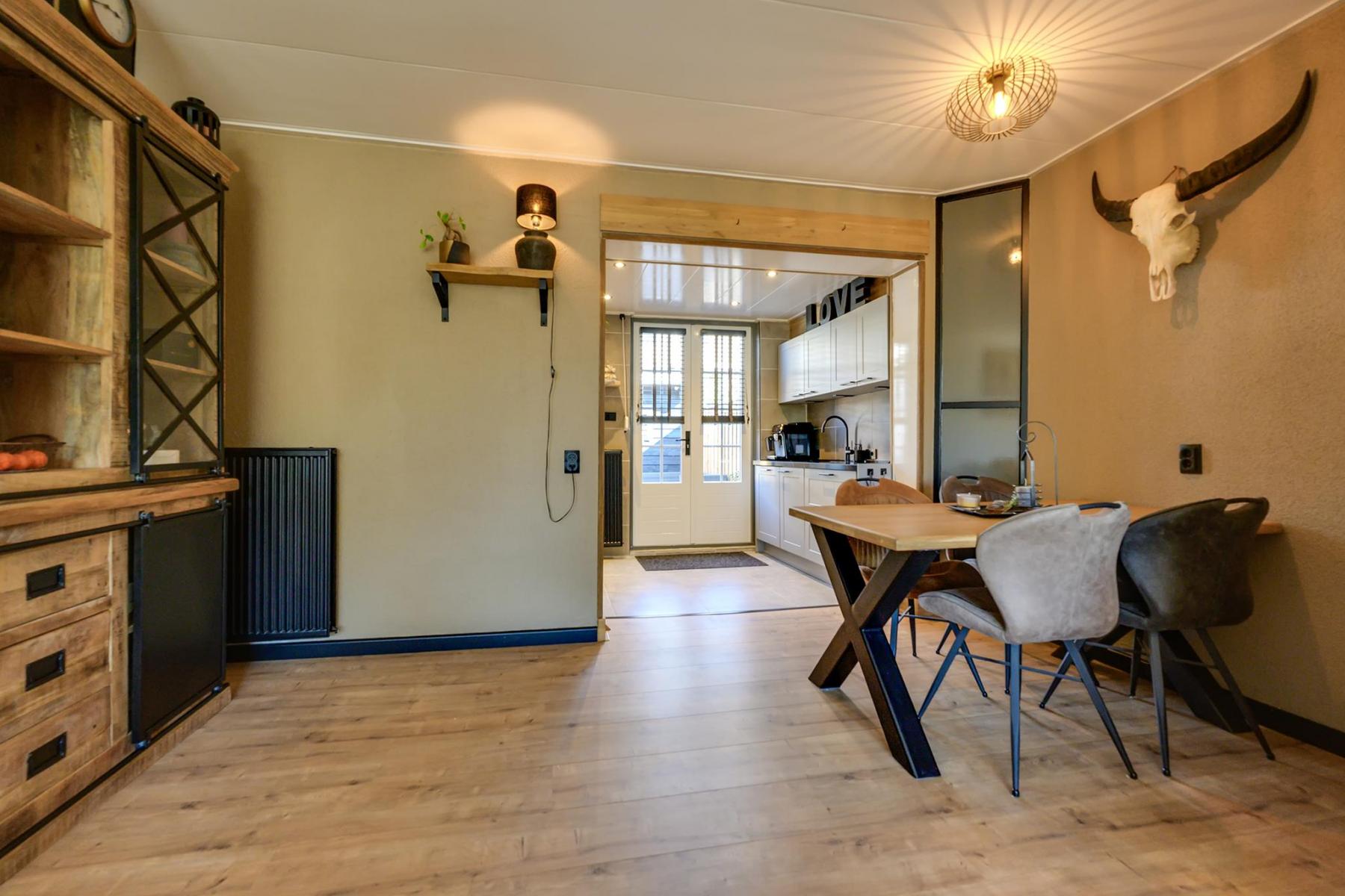 U komt binnen in de hal; hier is de trapopgang naar de verdieping en de industriële glazen deur geeft toegang tot de woonkamer. Het zitgedeelte ligt aan de voorzijde, waar u een leuk uitzicht heeft over de Van Heldenstraat. Hier is airconditioning aanwezig. Het eetgedeelte bevindt zich aan de achterzijde van de woonkamer, vlakbij de halfopen keuken. Hier is een deur die toegang geeft tot de kelderkast.