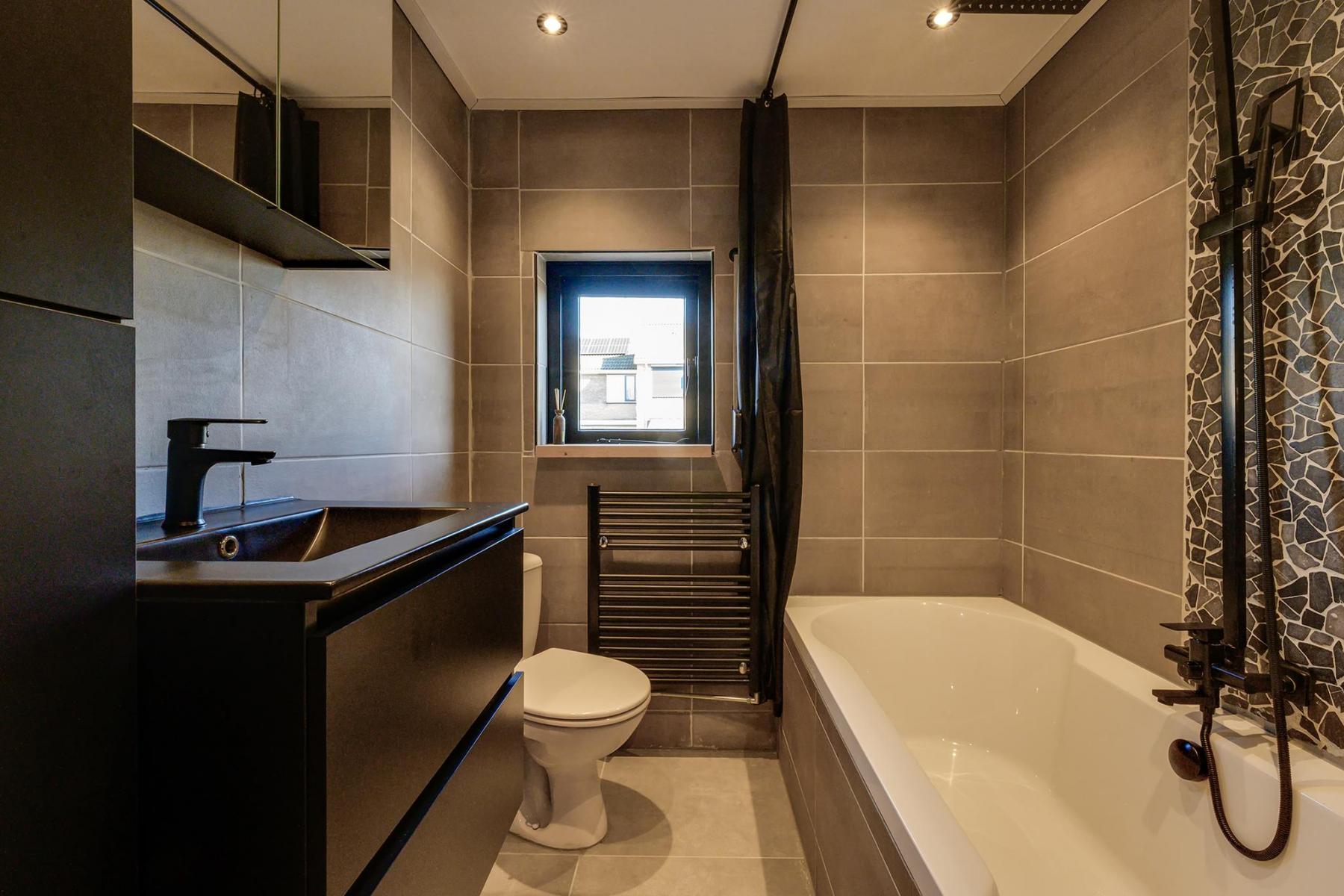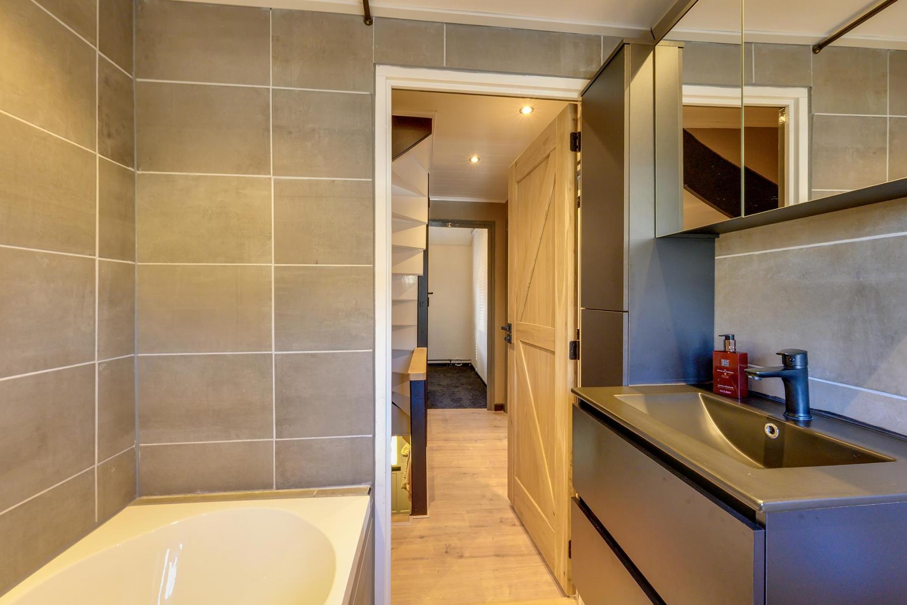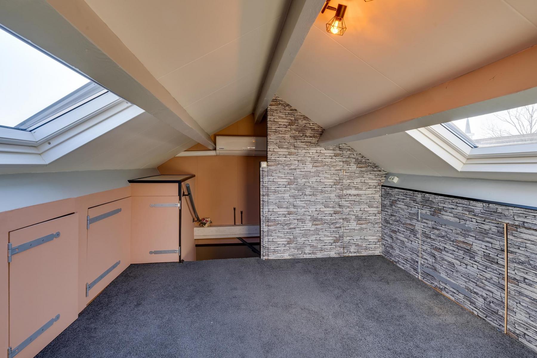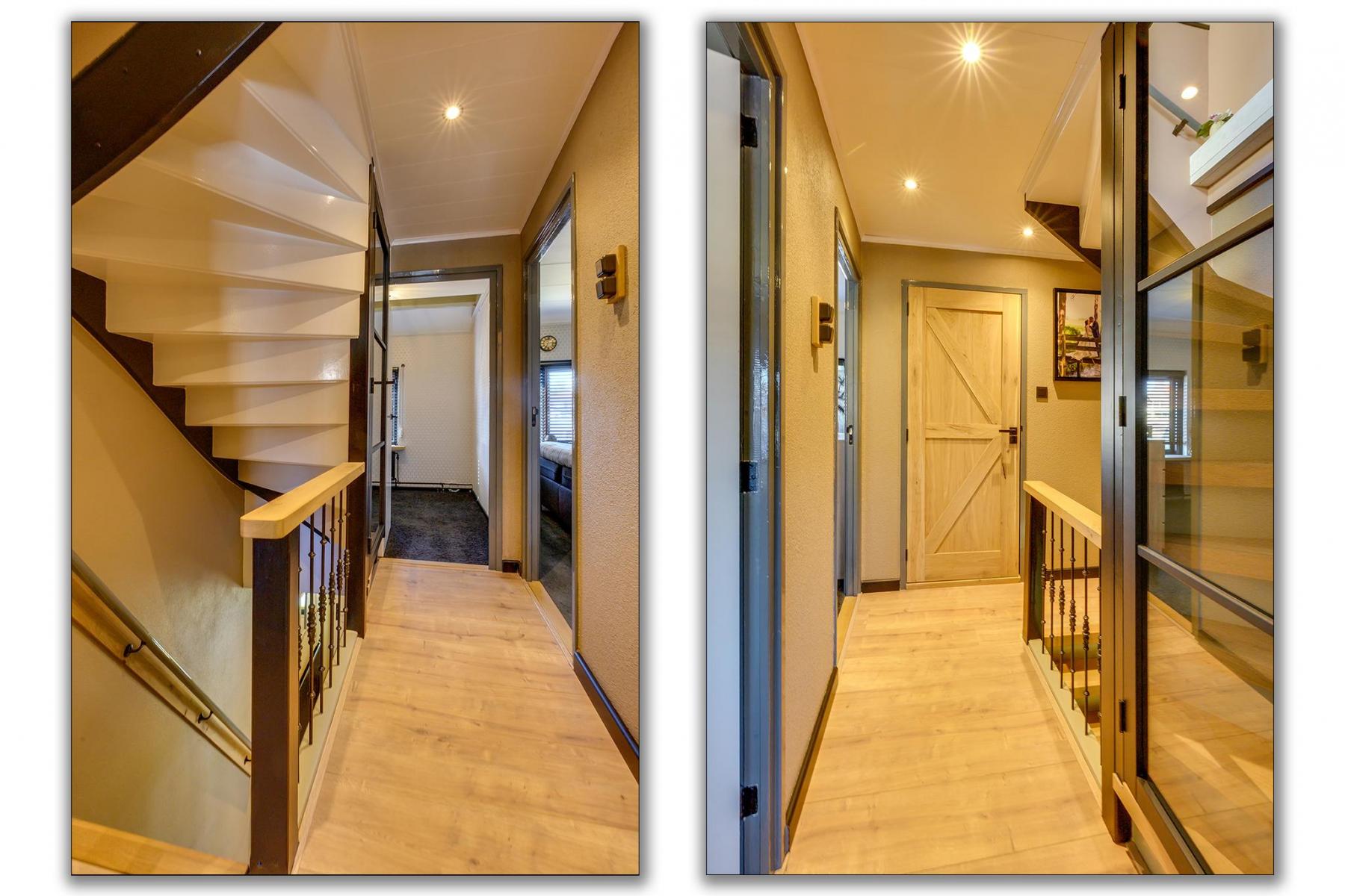 Op de verdieping zijn een overloop, drie slaapkamers en de badkamer. De grootste slaapkamer ligt aan de voorzijde van de woning en heeft een schuifkastenwand. De badkamer is voorzien van een ligbad met douchemogelijkheid, wastafelmeubel, toilet en handdoekradiator.