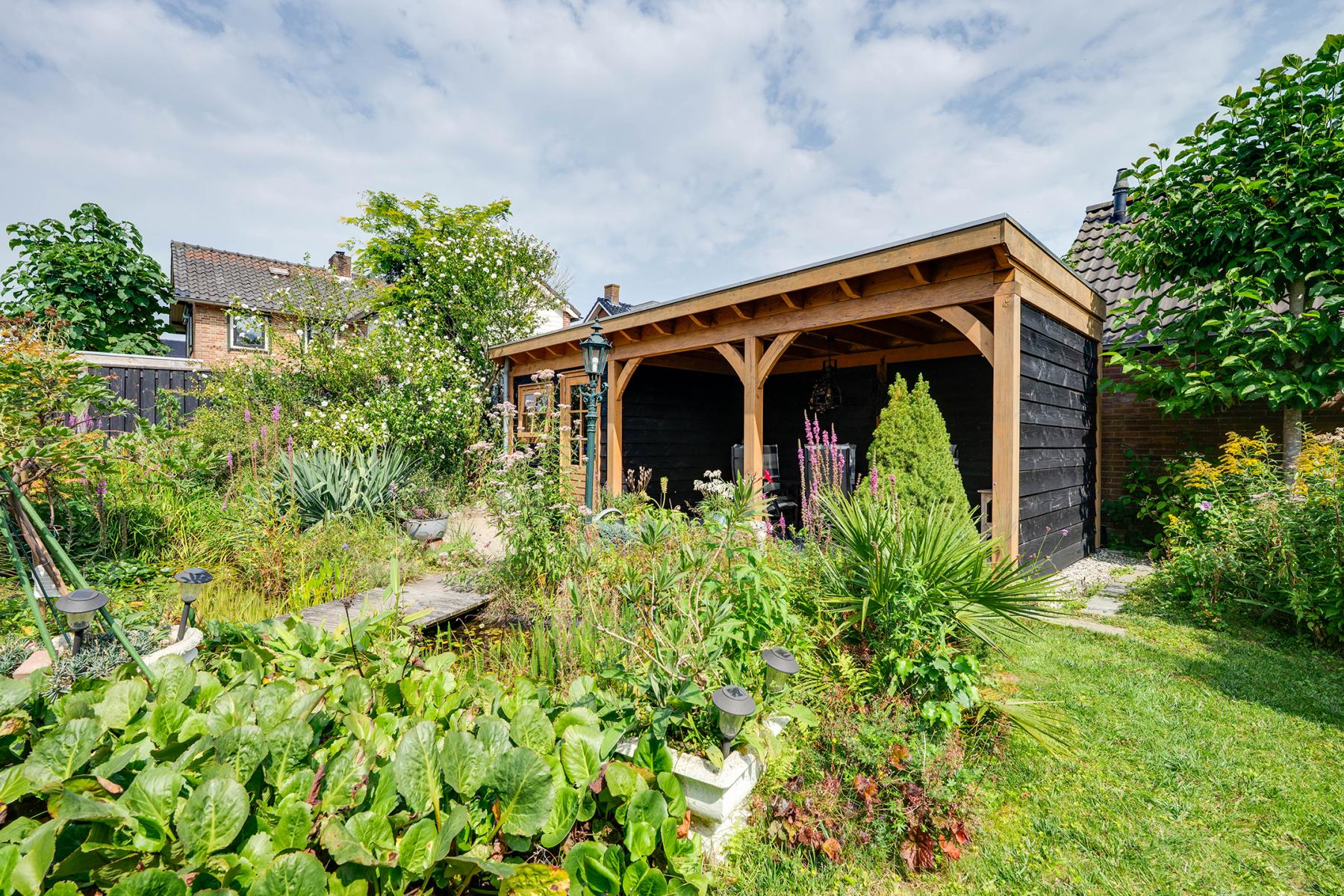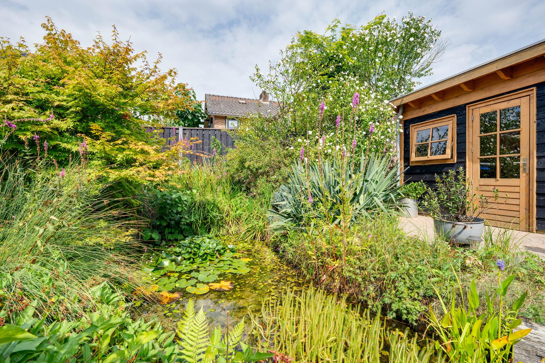 Achter het huis wacht je een groene oase. De verzorgde, oostelijk gelegen tuin is verrassend ruim en sfeervol ingericht. Via een charmant houten bruggetje over de vijver wandel je naar de gezellige veranda – dé plek voor lange zomeravonden en ontspannen momenten.
