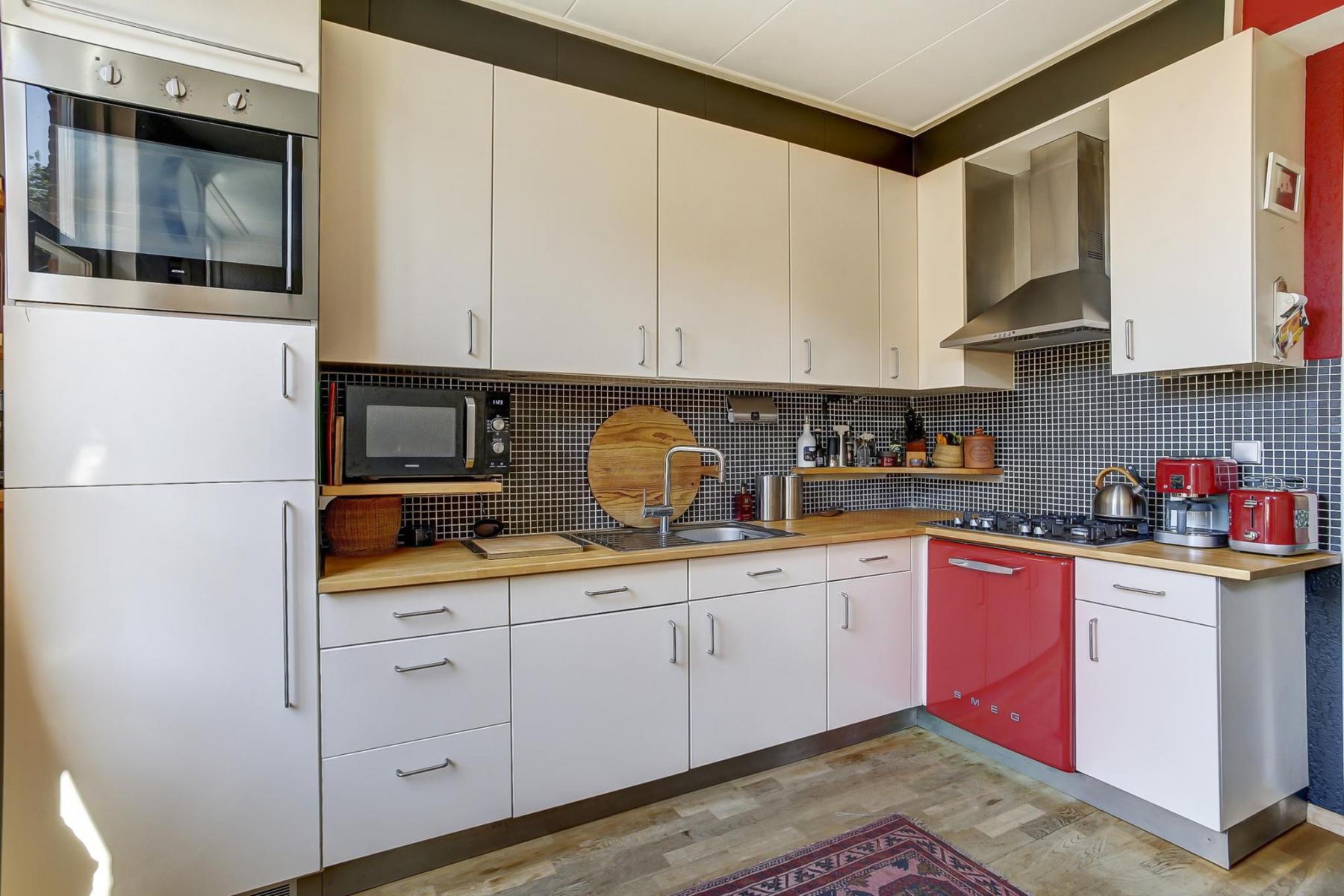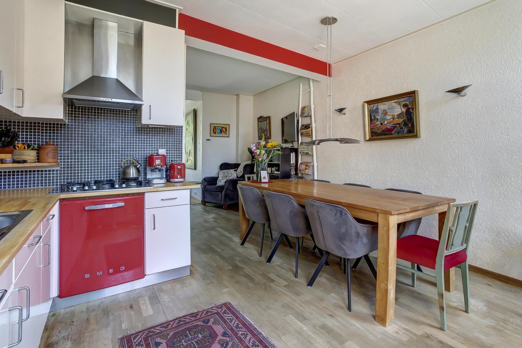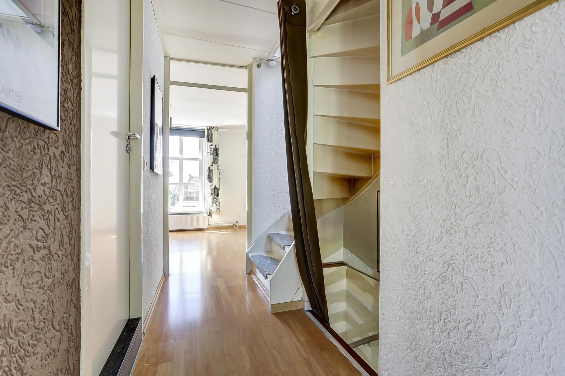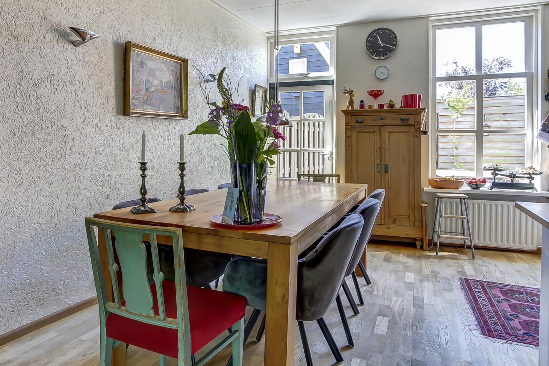 Bij binnenkomst komt u terecht in de hal. Hier bevinden zich de meterkast, het toilet en de toegang tot de woonkamer. De woonkamer is verdeeld in een zit- en eetgedeelte. Het zitgedeelte bevindt zich aan de voorzijde van de woning en biedt een levendig uitzicht op de Hoogstraat. Hier is een sfeervolle houtkachel aanwezig. Het eetgedeelte en de keuken bevinden zich aan de achterzijde van de woning. Vanuit de keuken heeft u uitzicht op de tuin. De vloer is afgewerkt met parket met daaronder vloerverwarming. De open keuken is in lichte kleurstelling en is voorzien van vaatwasser, magic corner, close-in boiler, koelkast, oven, 5-pits gaskookplaat en een afzuigkap. Vanuit de keuken heeft u toegang tot de tuin.