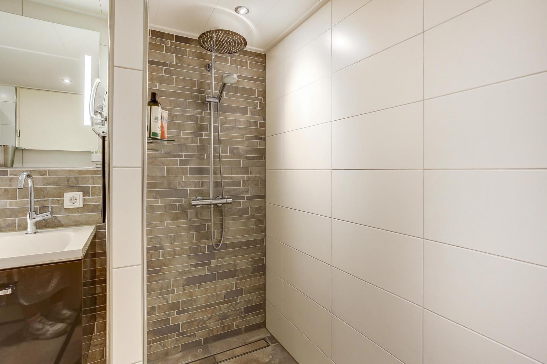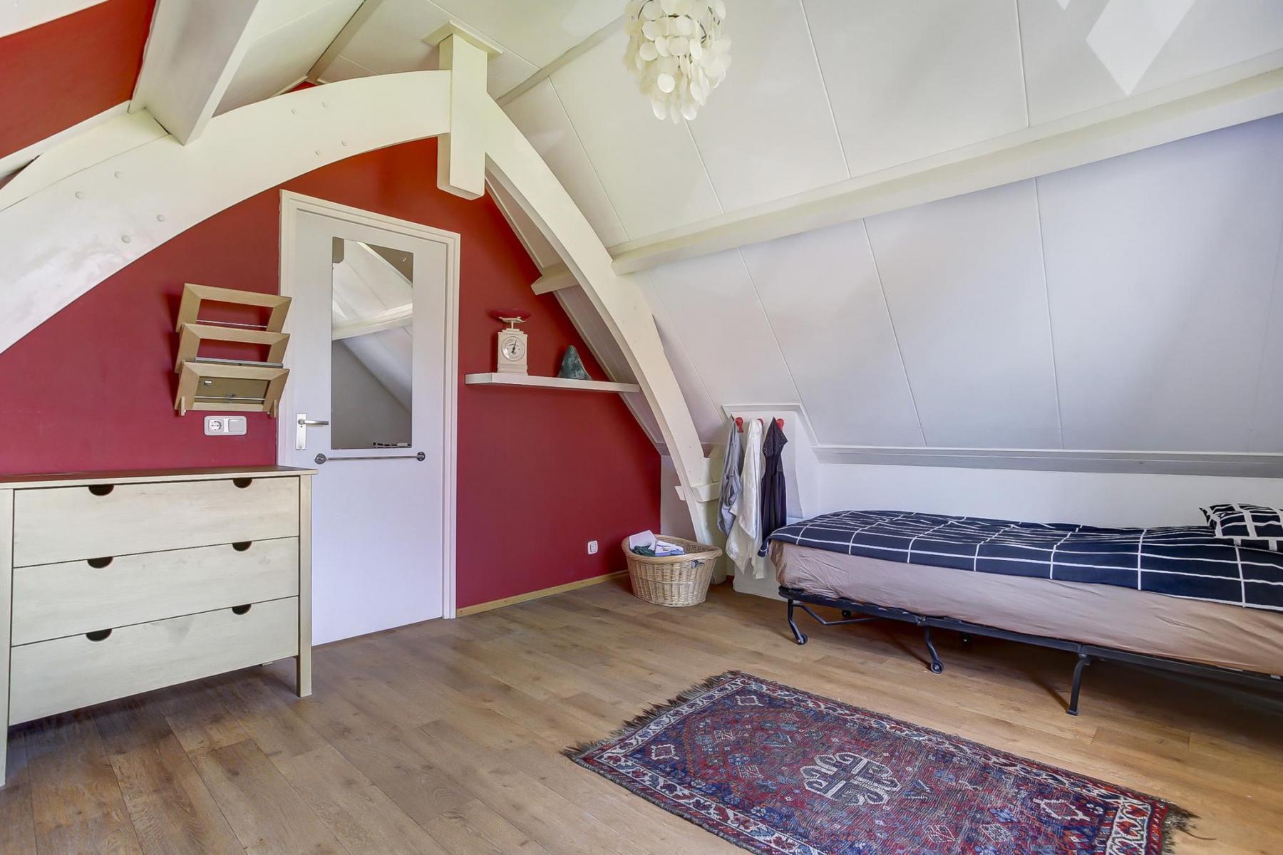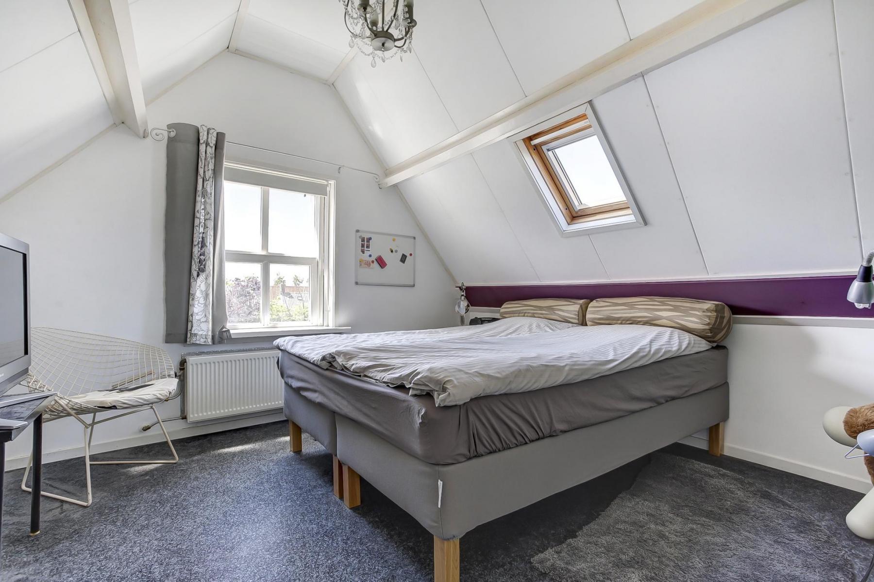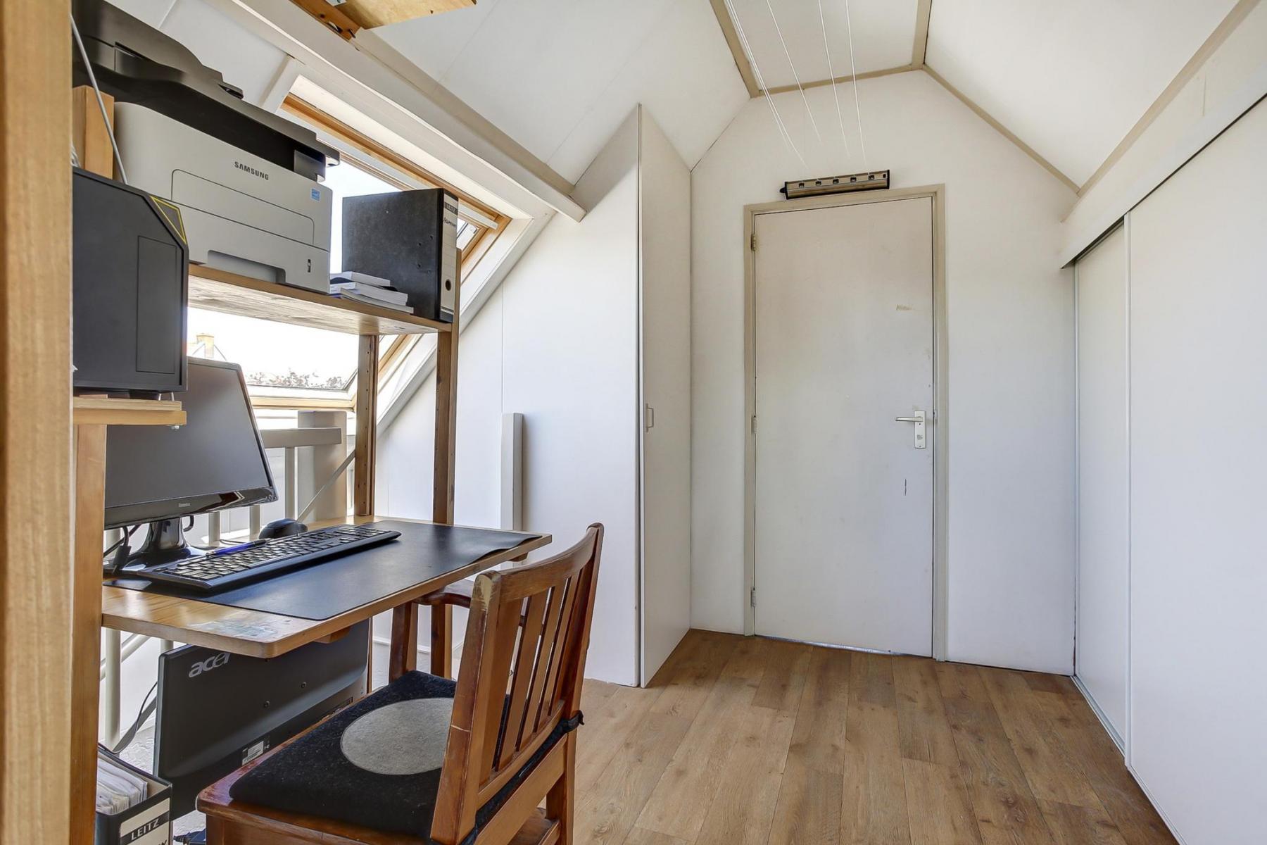 Op de tweede verdieping een overloop en nog eens twee slaapkamers. De huidige eigenaar heeft de ruimte op de overloop optimaal benut. De wasmachine en de CV-installatie zijn keurig weggewerkt achter schuifdeuren. Bovendien is de overloop deels ingericht als werkruimte en is er een inbouwkast aanwezig. Eén van de slaapkamers heeft een dakraam, zodat deze kamer heerlijk licht is. De andere slaapkamer op deze verdieping heeft veel bergruimte achter de knieschotten.