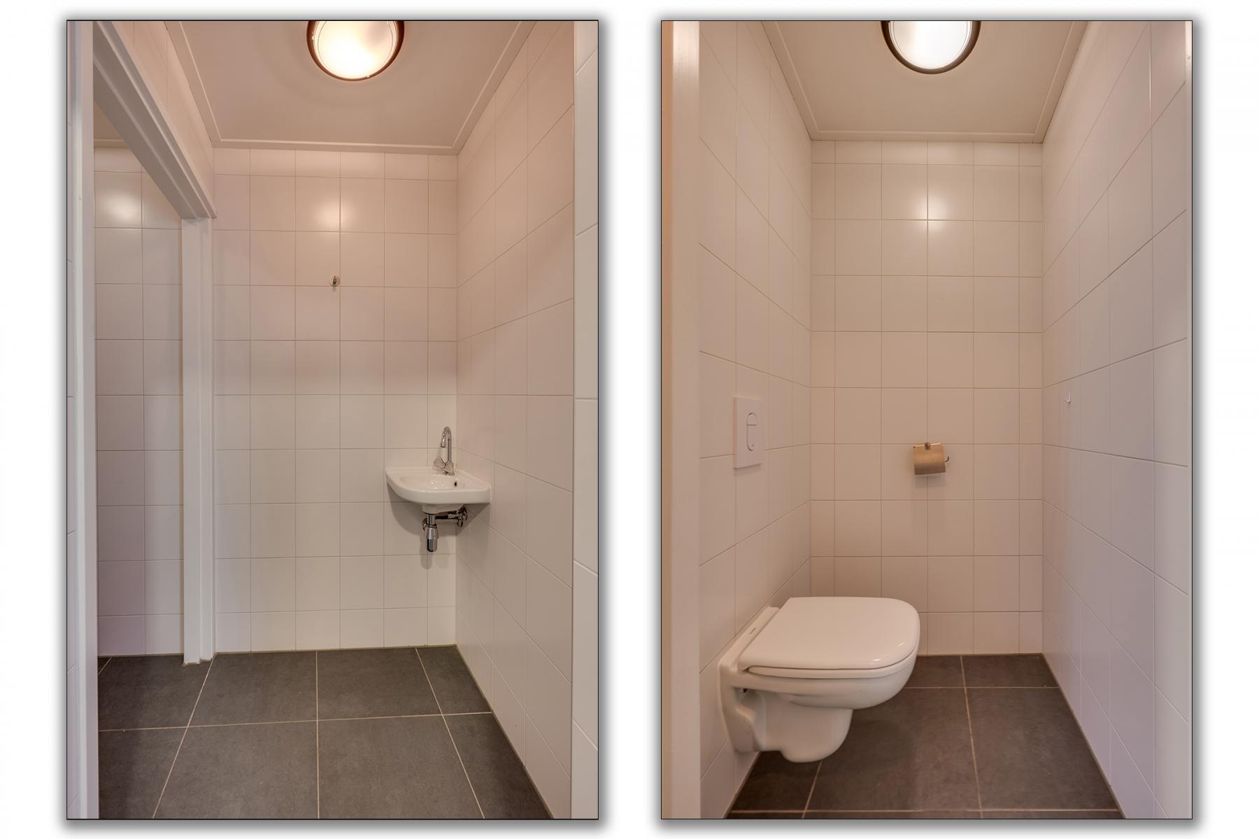 Via de buitentrap bereik je het ruime dakterras en aparte bovenwoning. De hal biedt toegang tot een aparte berging, het toilet, en de lichte woonkamer met open keuken. Grote ramen zorgen voor een fijne lichtinval, en ook hier vind je een inverter. De keuken is compleet uitgevoerd met o.a. een vaatwasser, keramische kookplaat, oven, koelkast, vriezer en volop kastruimte.