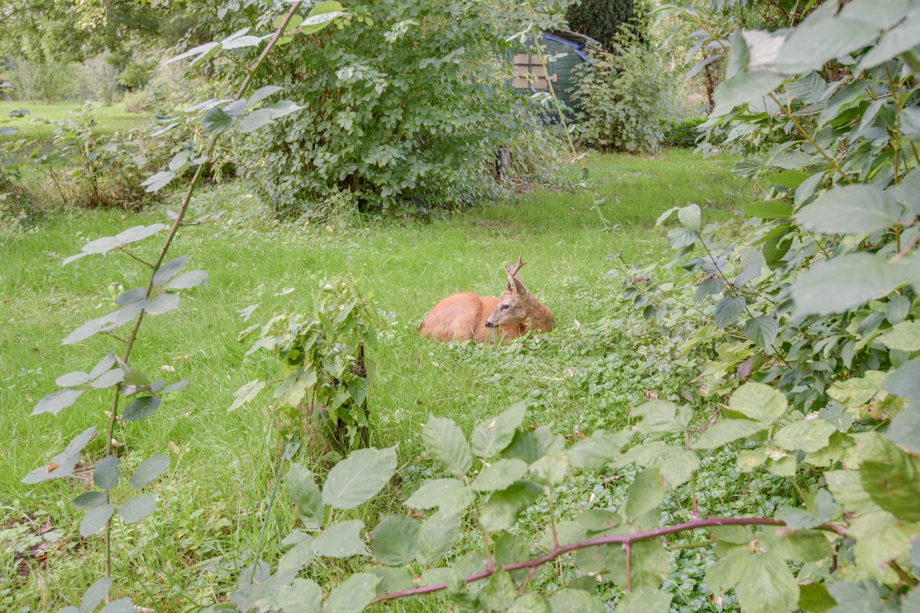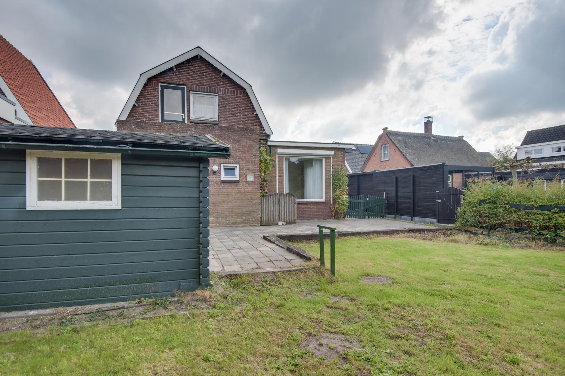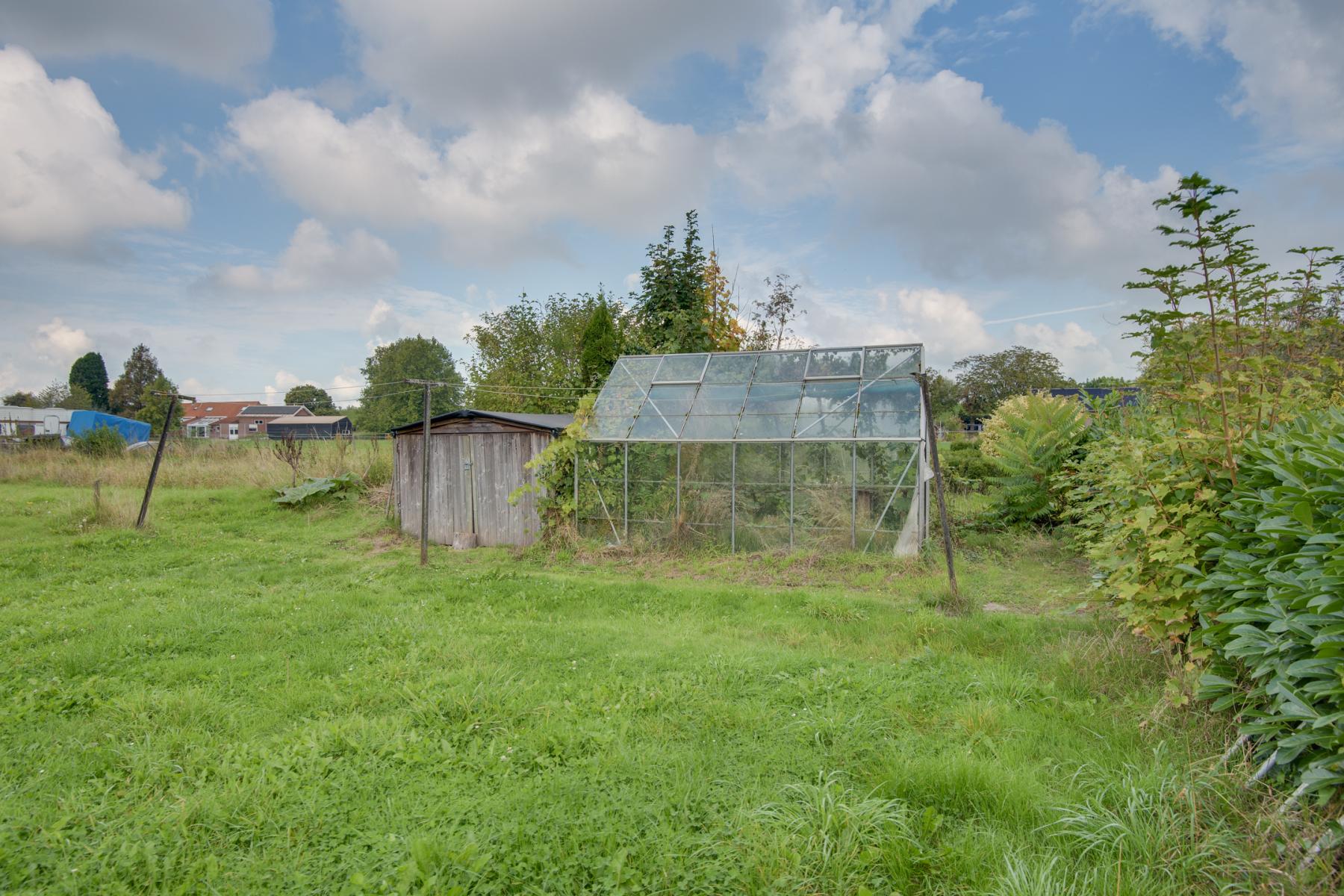De tuin is in potentie écht een pareltje, maar heeft onderhoud nodig. Gelegen op het westen, dus volop zon, en dankzij de ligging ook veel privacy. Direct achter het huis vind je een gezellig terras en een groot gazon. Er is een houten schuur voor opslag en via een sfeervol bruggetje wandel je verder de tuin in, waar je een kasje, ruimte voor een moestuin, grasland en een paar aantal mooie bomen en fruitbomen vindt. Hier kun je heerlijk tuinieren, spelen met de kinderen of simpelweg genieten van de natuur. Achterop het perceel staat nog een vaste gemetselde BBQ.